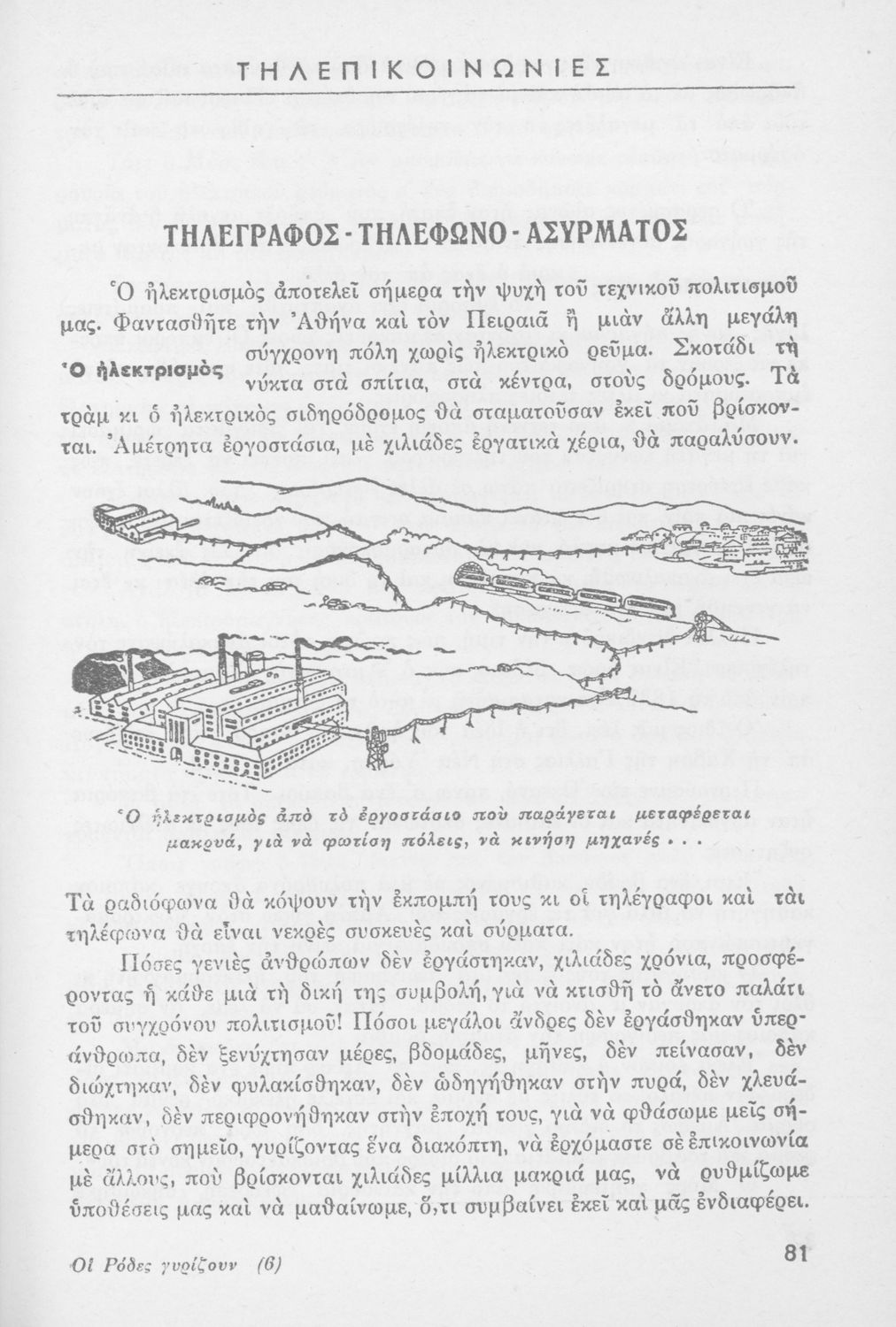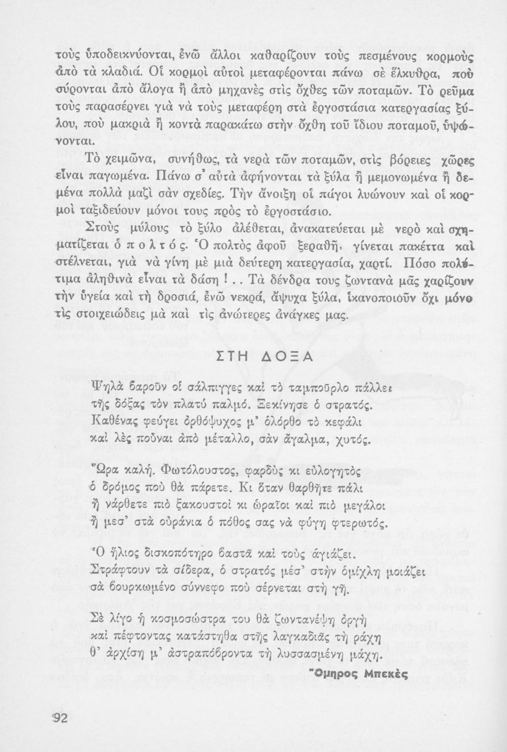 Σχολικό εγχειρίδιο Νέων Ελληνικών για τις επαγγελματικές σχολές που περιλαμβάνει ποιήματα και πεζά με θεματολογία από την ιστορική, κοινωνική και επαγγελματική ζωή και κείμενα με πατριωτικό ύφος.