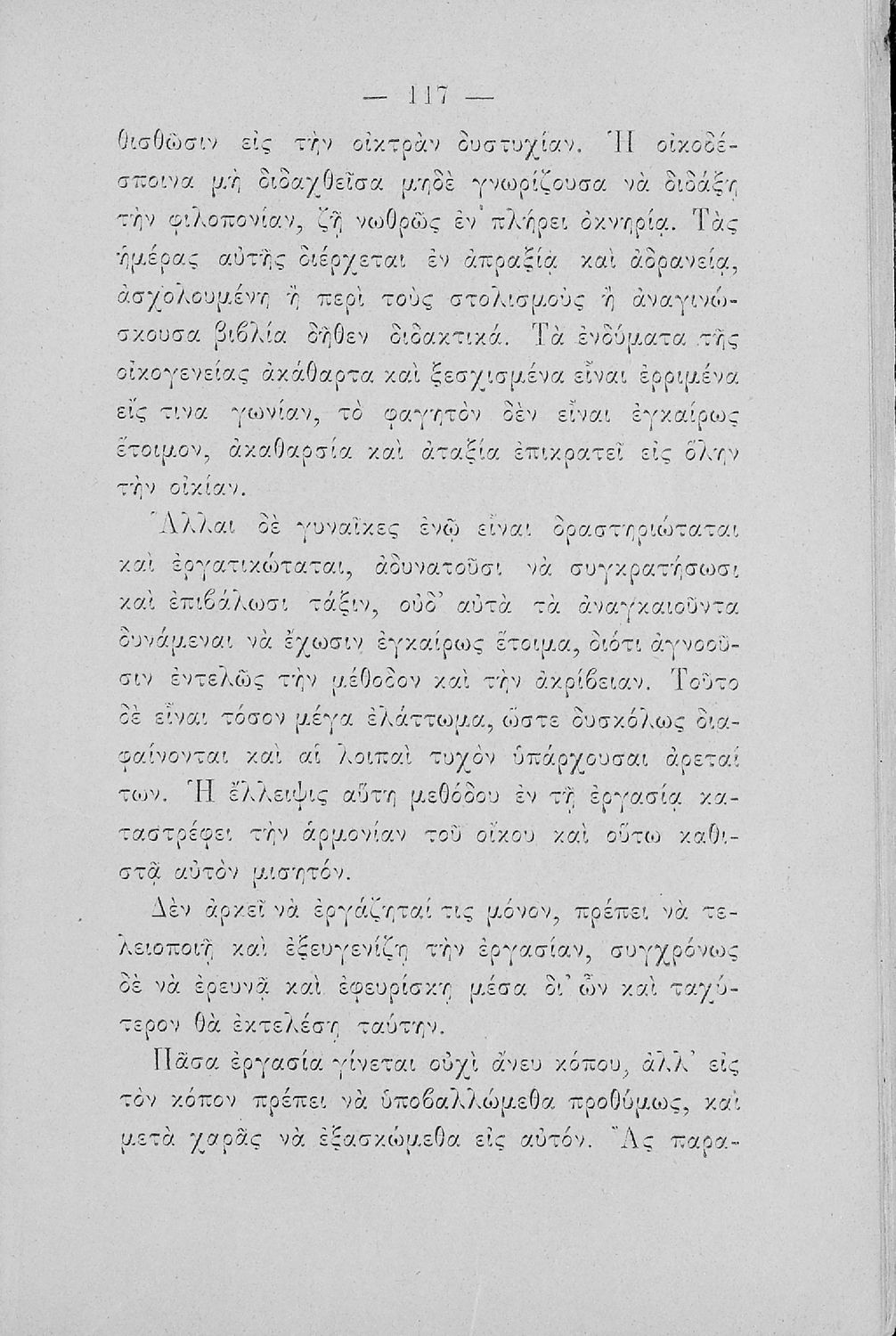 Σχολικό εγχειρίδιο για τις τάξεις του Παρθεναγωγείου για το μάθημα της Οικιακής Οικονομίας. Το εγχειρίδιο περιλαμβάνει τις βασικές γνώσεις οργάνωσης και διοίκησης της κατοικίας, του κανονισμού χρόνου εργασίας ...