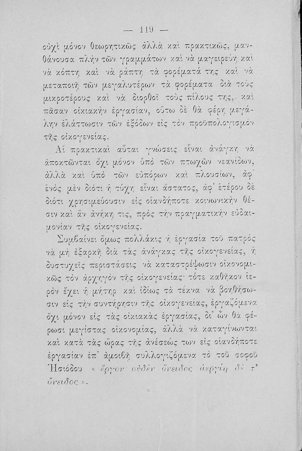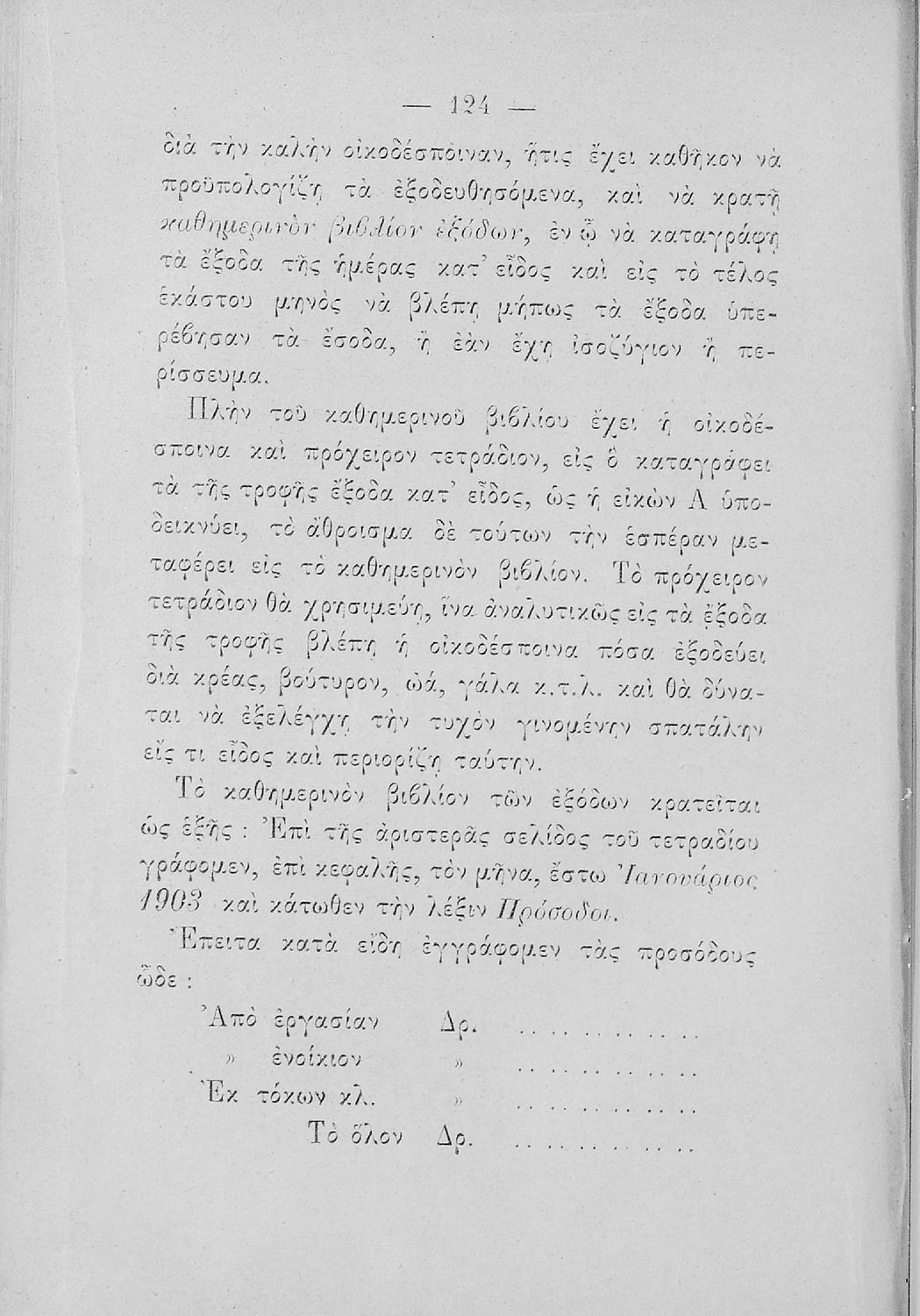 Σχολικό εγχειρίδιο για τις τάξεις του Παρθεναγωγείου για το μάθημα της Οικιακής Οικονομίας.