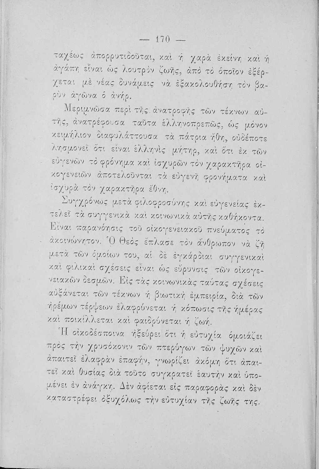 Σχολικό εγχειρίδιο για τις τάξεις του Παρθεναγωγείου για το μάθημα της Οικιακής Οικονομίας. Το εγχειρίδιο περιλαμβάνει τις βασικές γνώσεις οργάνωσης και διοίκησης της κατοικίας, του κανονισμού χρόνου εργασίας ...