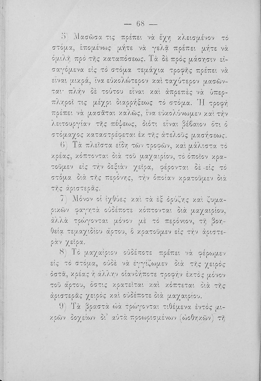 Σχολικό εγχειρίδιο Οικιακής Οικονομίας που εστιάζει στην υγιεινή της κατοικίας, τη διατροφή και την καλή συμπεριφορά.