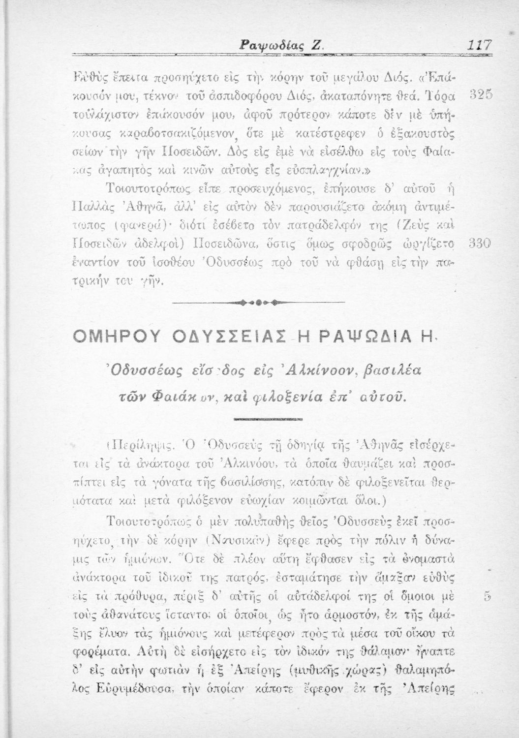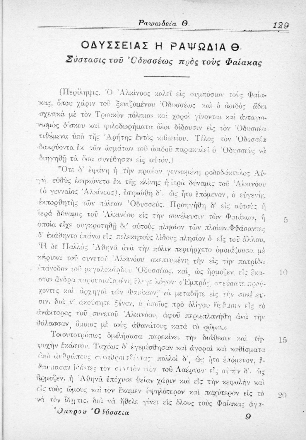 Παιδαγωγικό βοήθημα Αρχαίων Ελληνικών που περιλαμβάνει μετάφραση της Ομήρου Οδύσσειας στη νέα ελληνική, εισαγωγή στην επική ποίηση και στην Οδύσσεια, περιλήψεις και σημειώσεις.