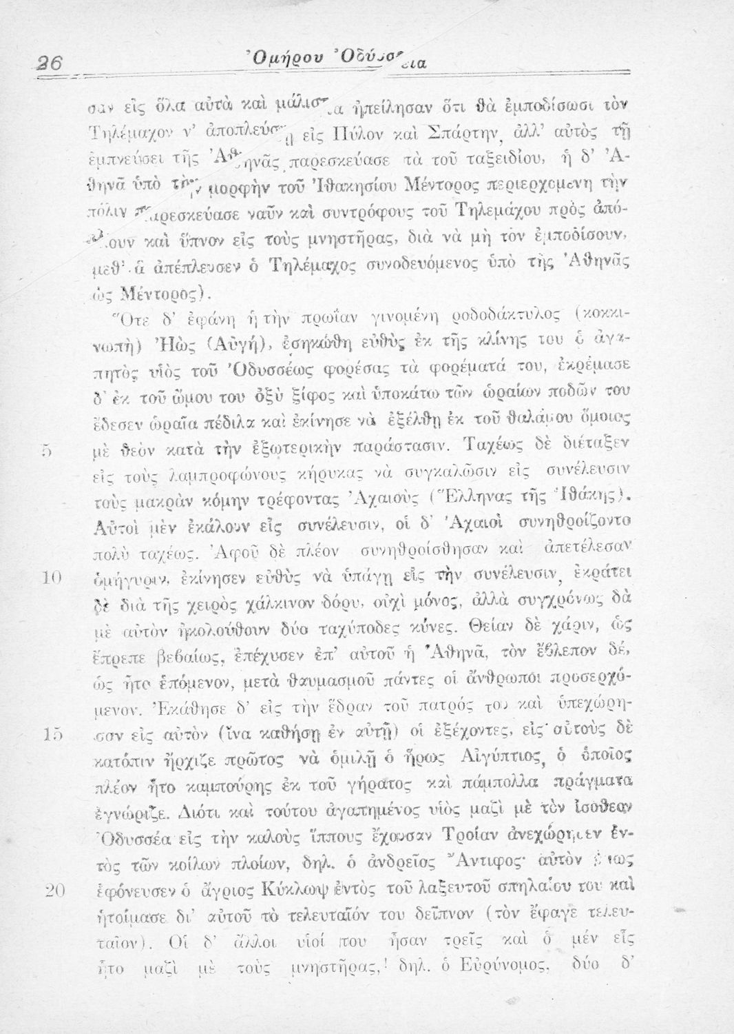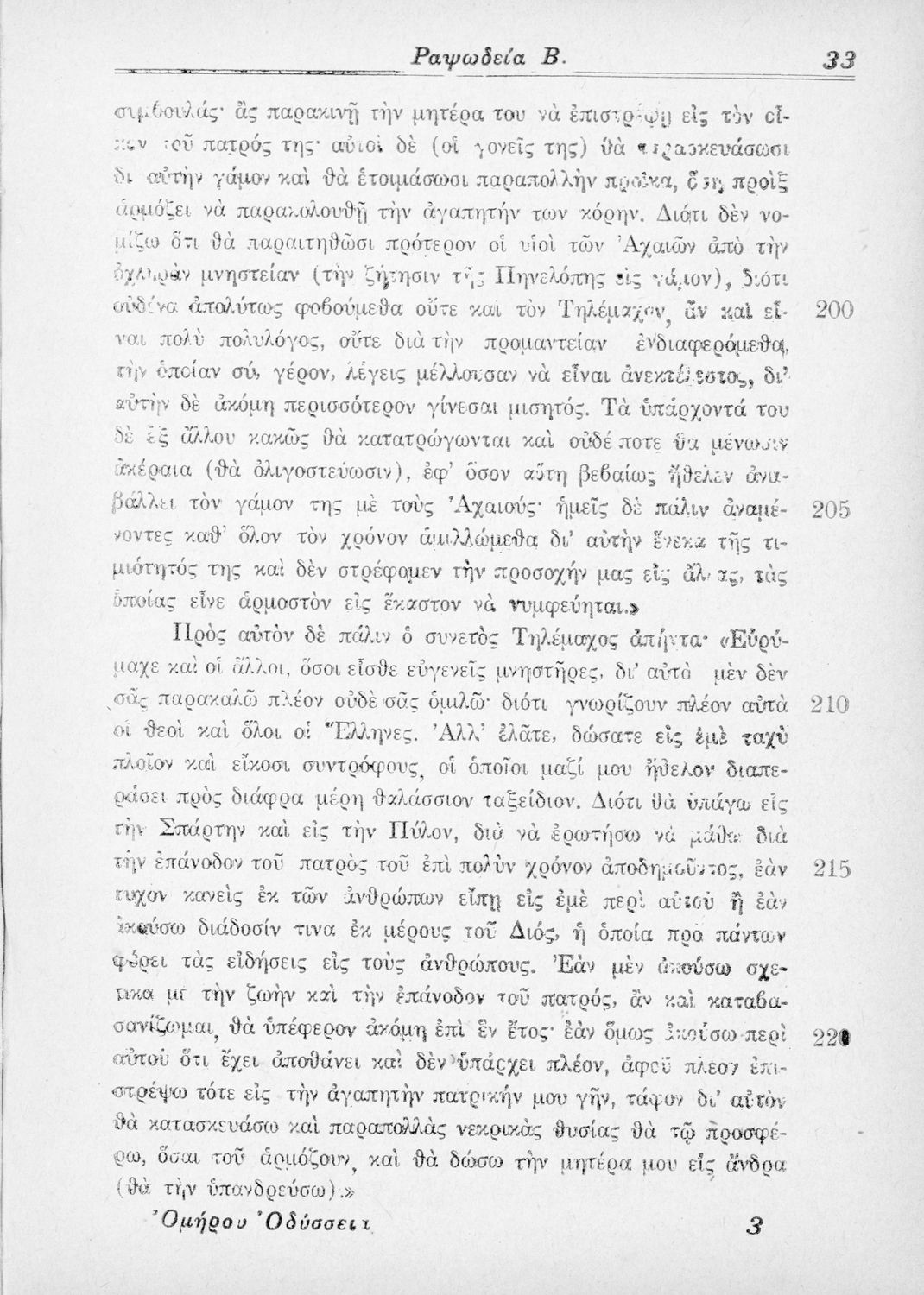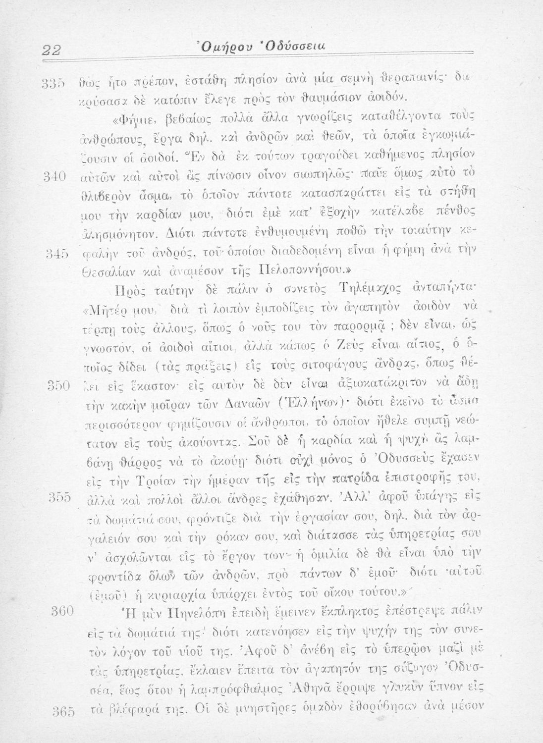 Παιδαγωγικό βοήθημα Αρχαίων Ελληνικών που περιλαμβάνει μετάφραση των ραψωδιών Ν-Ω της Οδύσσειας.