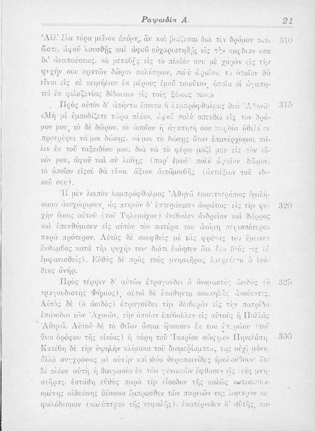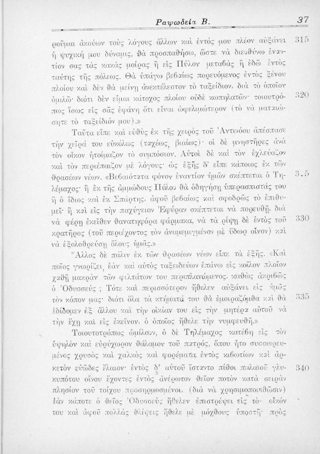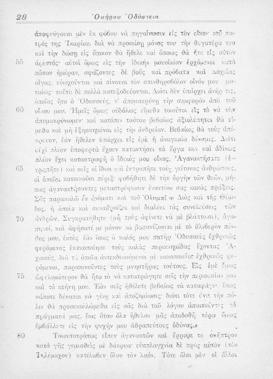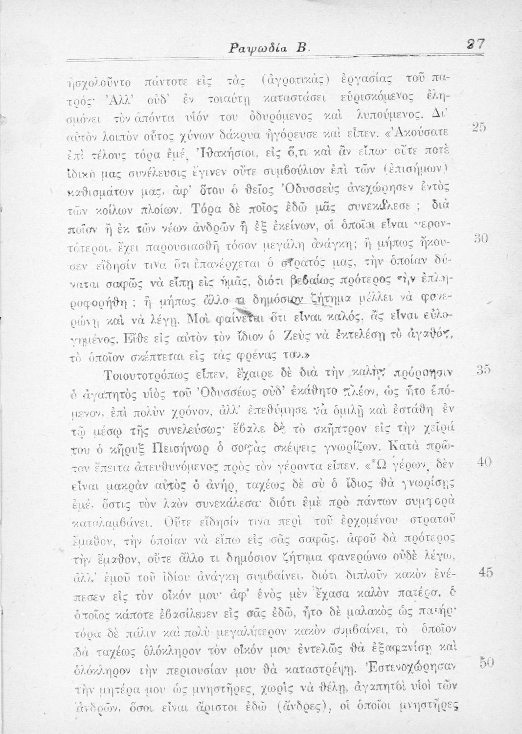 Παιδαγωγικό βοήθημα Αρχαίων Ελληνικών που περιλαμβάνει μετάφραση των ραψωδιών Ν-Ω της Οδύσσειας.