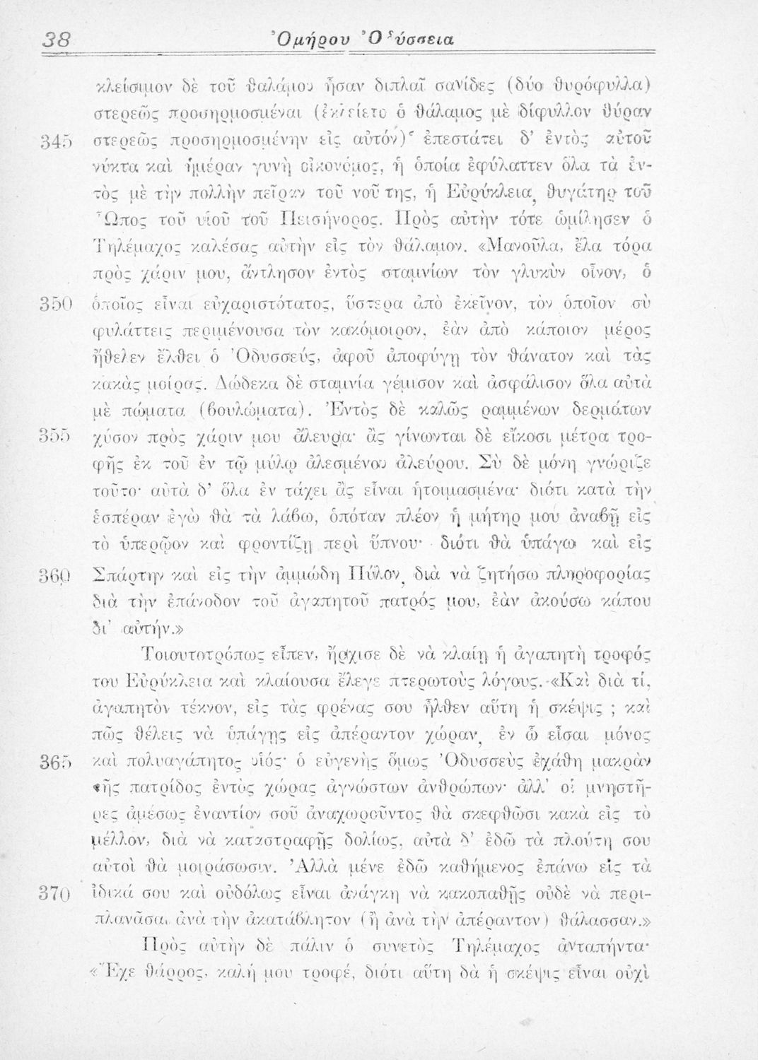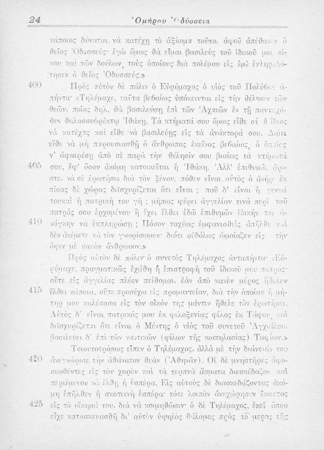 Παιδαγωγικό βοήθημα Αρχαίων Ελληνικών που περιλαμβάνει μετάφραση της Ομήρου Οδύσσειας στη νέα ελληνική, εισαγωγή στην επική ποίηση και στην Οδύσσεια, περιλήψεις και σημειώσεις.
