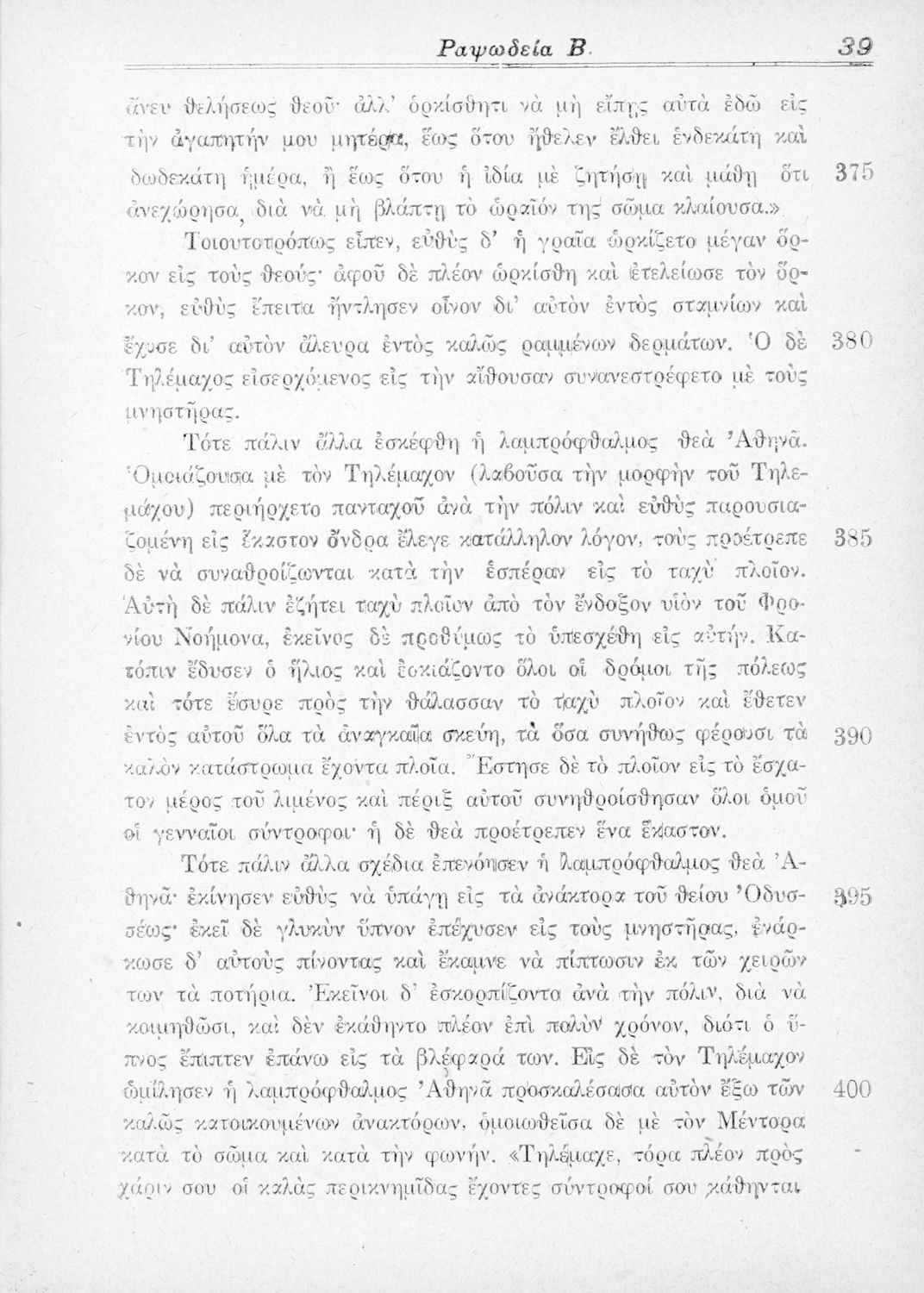 Έκδοση που περιλαμβάνει τις ραψωδίες Ν-Ω της Οδύσσειας.