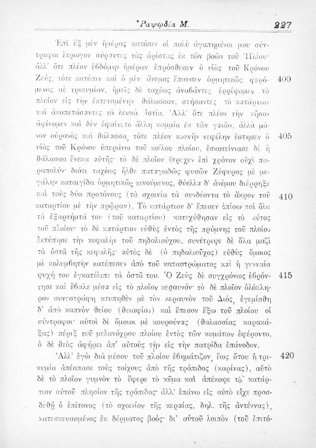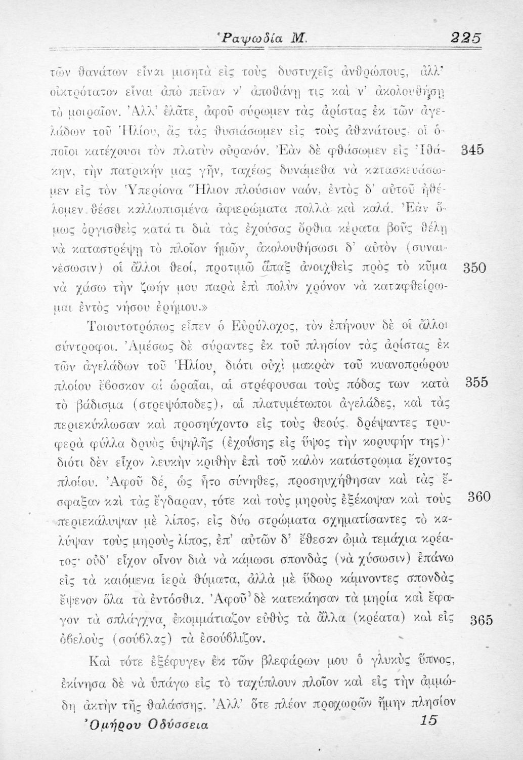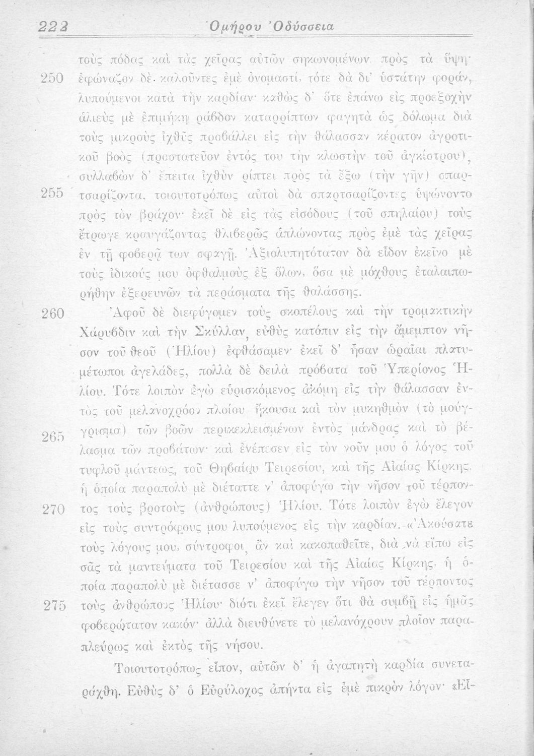 Παιδαγωγικό βοήθημα Αρχαίων Ελληνικών που περιλαμβάνει μετάφραση της Ομήρου Οδύσσειας στη νέα ελληνική, εισαγωγή στην επική ποίηση και στην Οδύσσεια, περιλήψεις και σημειώσεις.