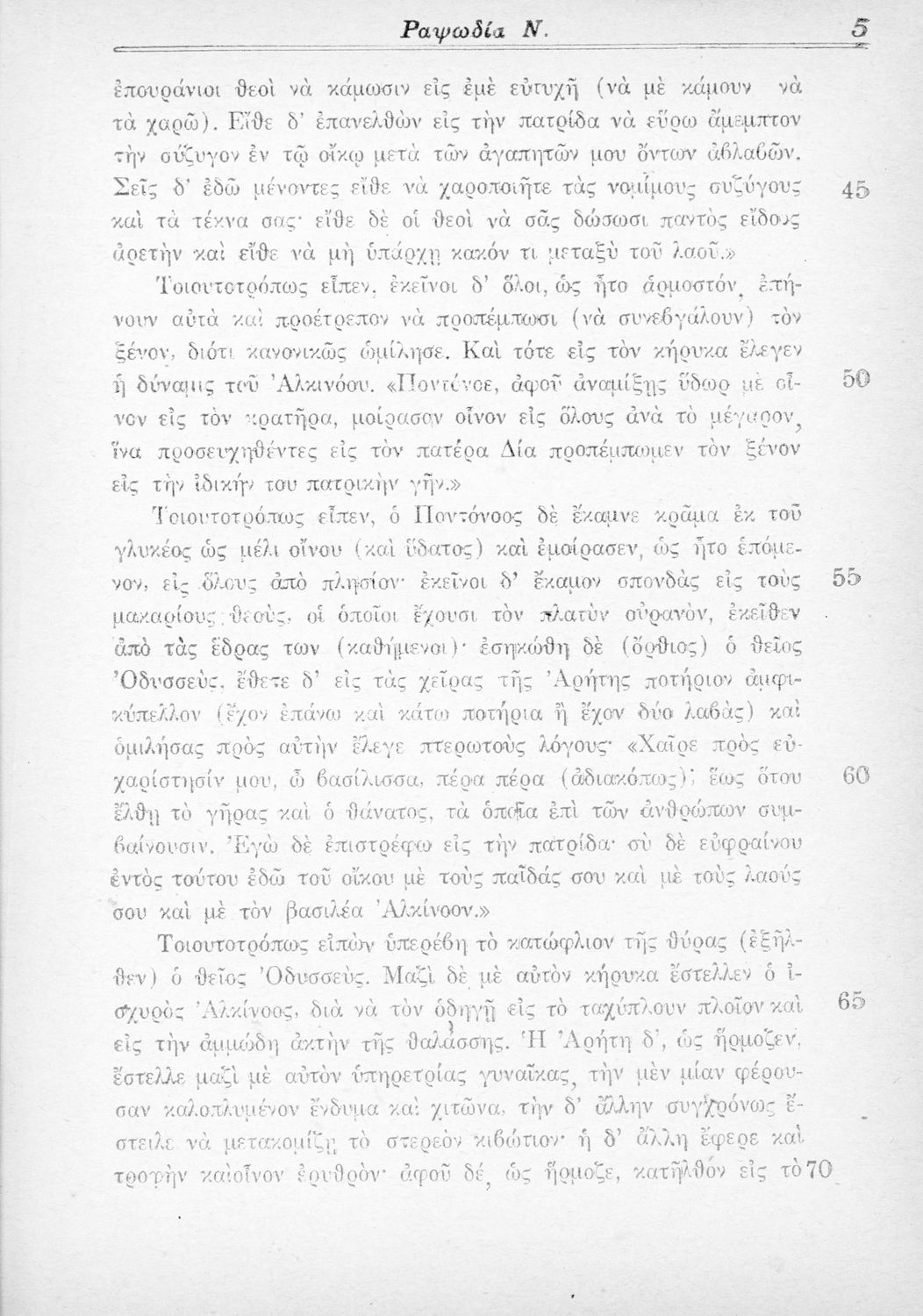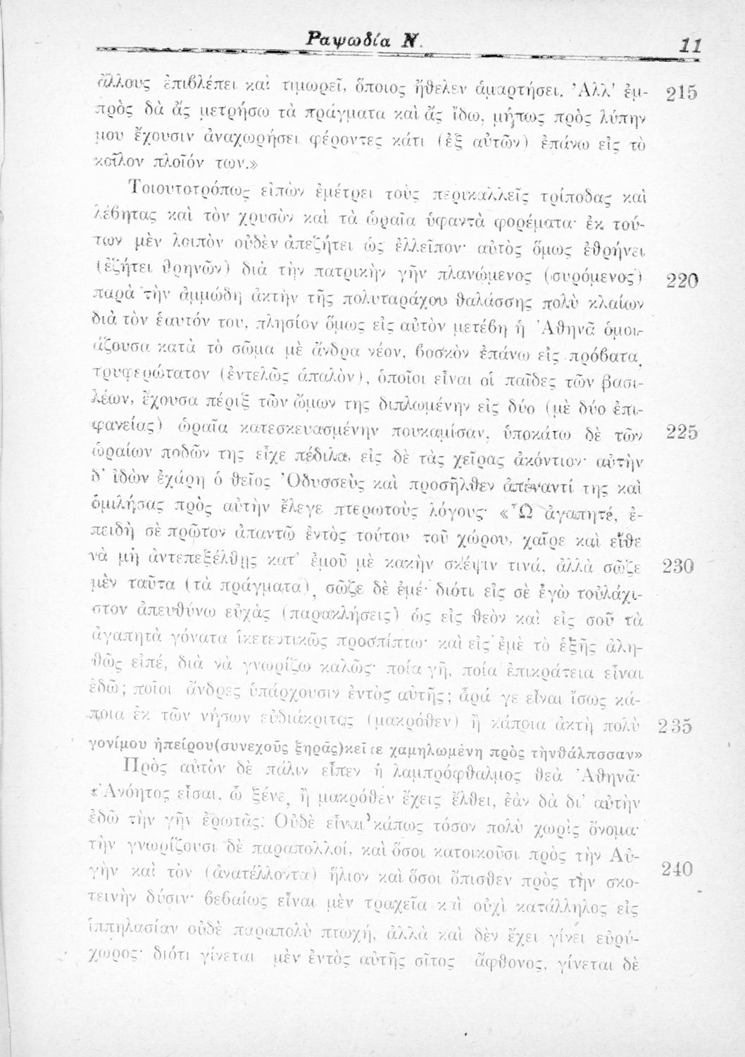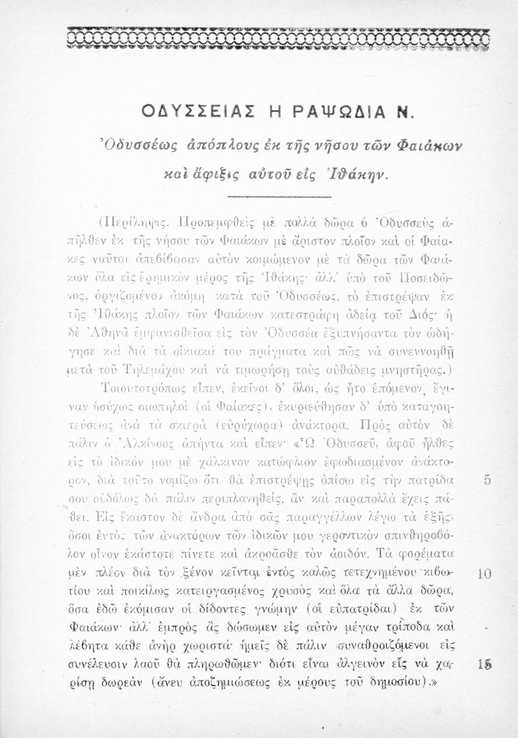 Παιδαγωγικό βοήθημα Αρχαίων Ελληνικών που περιλαμβάνει μετάφραση των ραψωδιών Ν-Ω της Οδύσσειας.