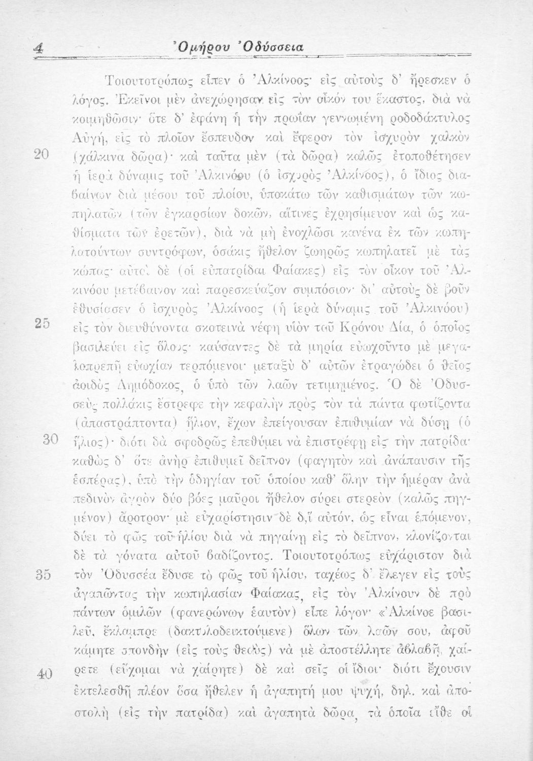 Σχολικό εγχειρίδιο της Δ΄ Γυμνασίου για το μάθημα των Αρχαίων Ελληνικών. Περιέχει ραψωδίες της Οδύσσειας καθώς και πραγματολογικά σχόλια.