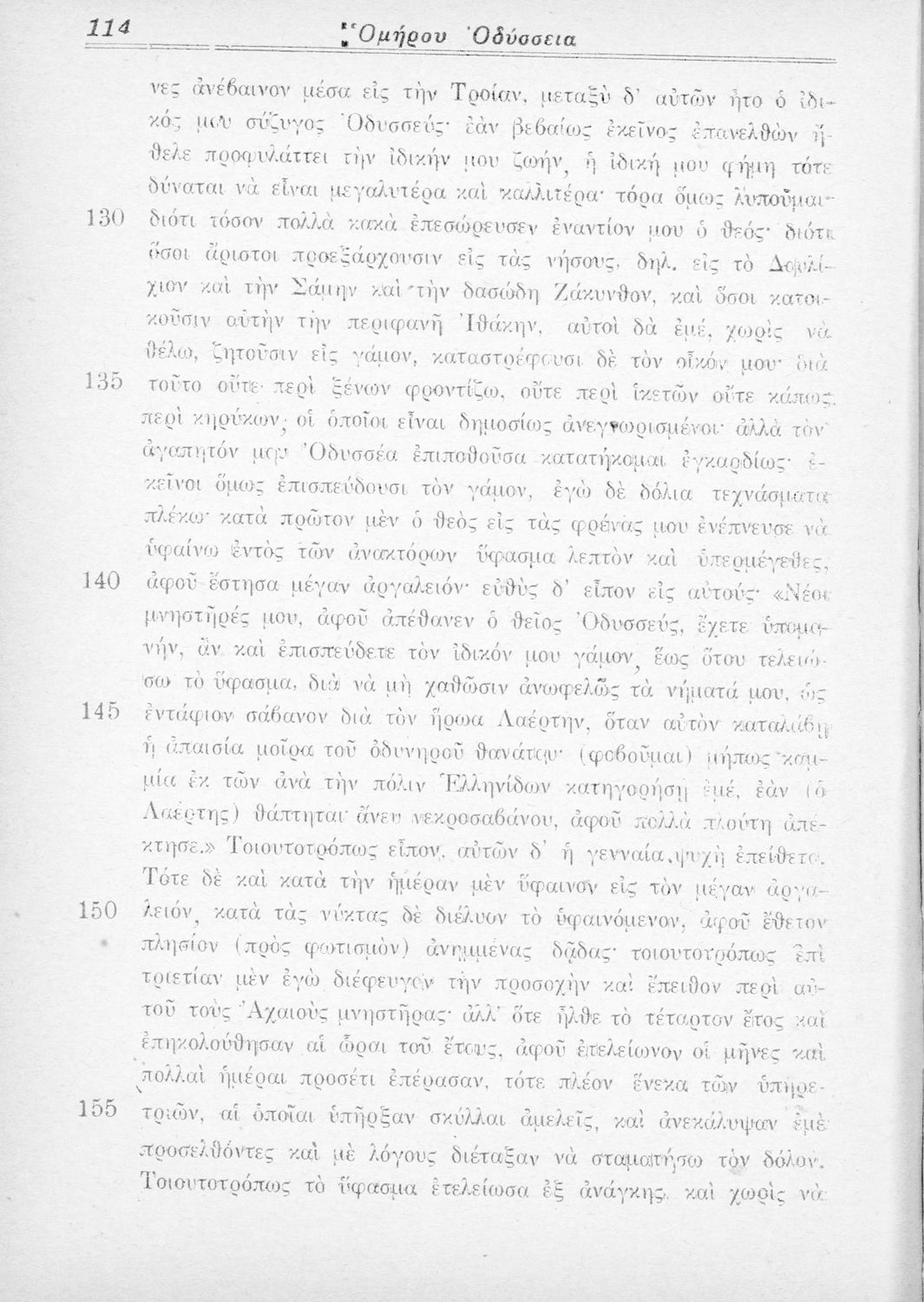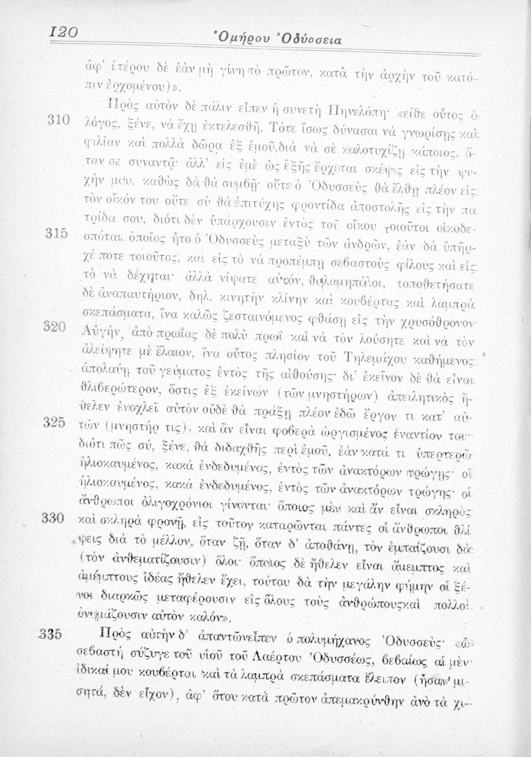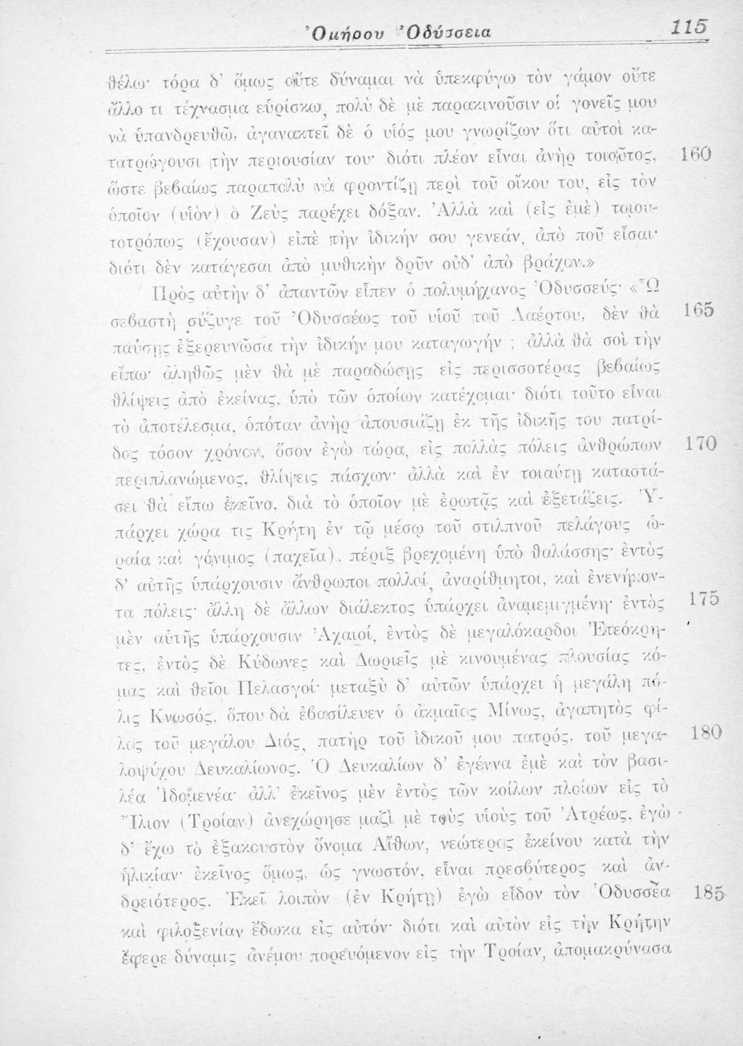 Παιδαγωγικό βοήθημα Αρχαίων Ελληνικών που περιλαμβάνει μετάφραση των ραψωδιών Ν-Ω της Οδύσσειας.