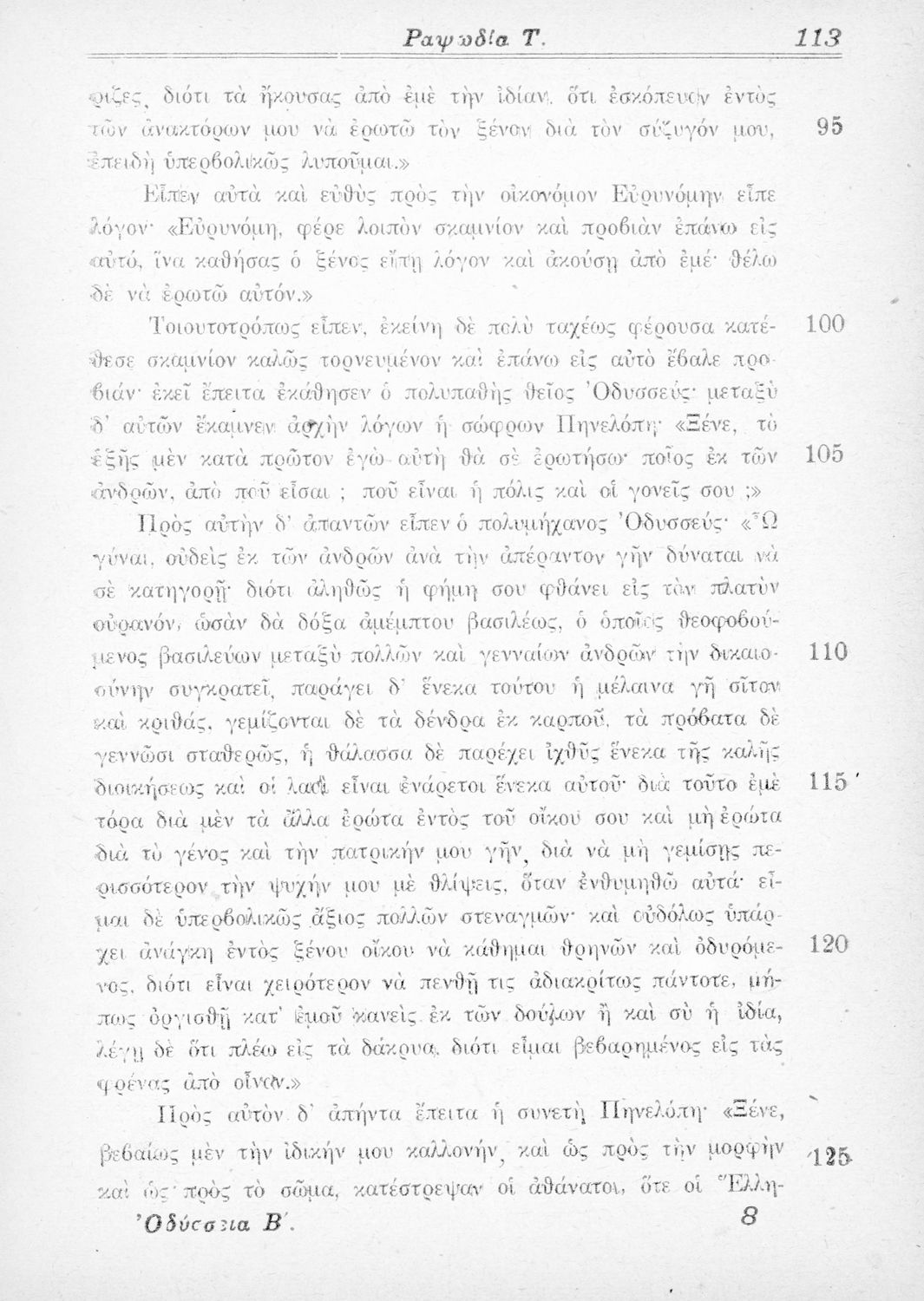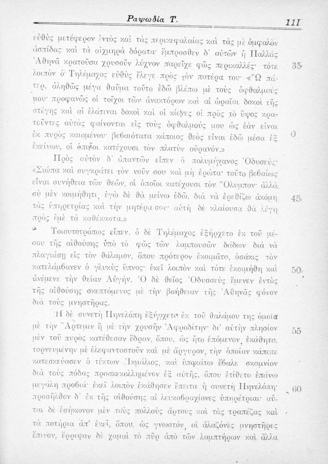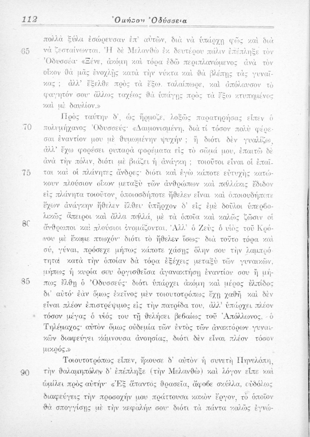 Παιδαγωγικό βοήθημα Αρχαίων Ελληνικών που περιλαμβάνει μετάφραση των ραψωδιών Ν-Ω της Οδύσσειας.