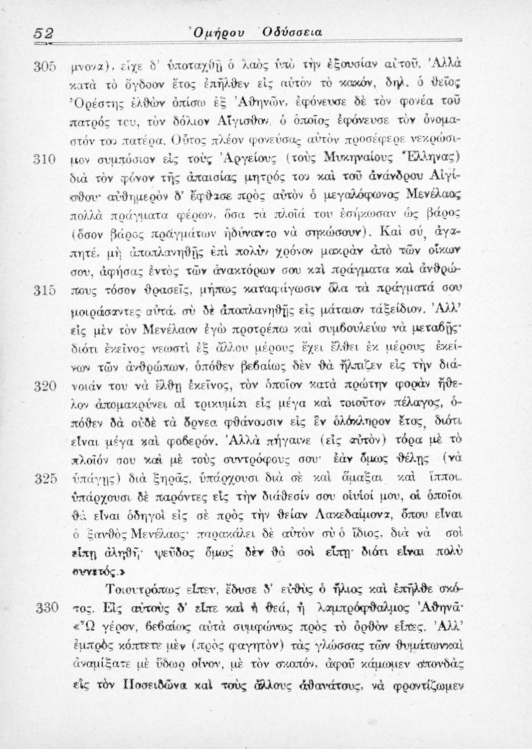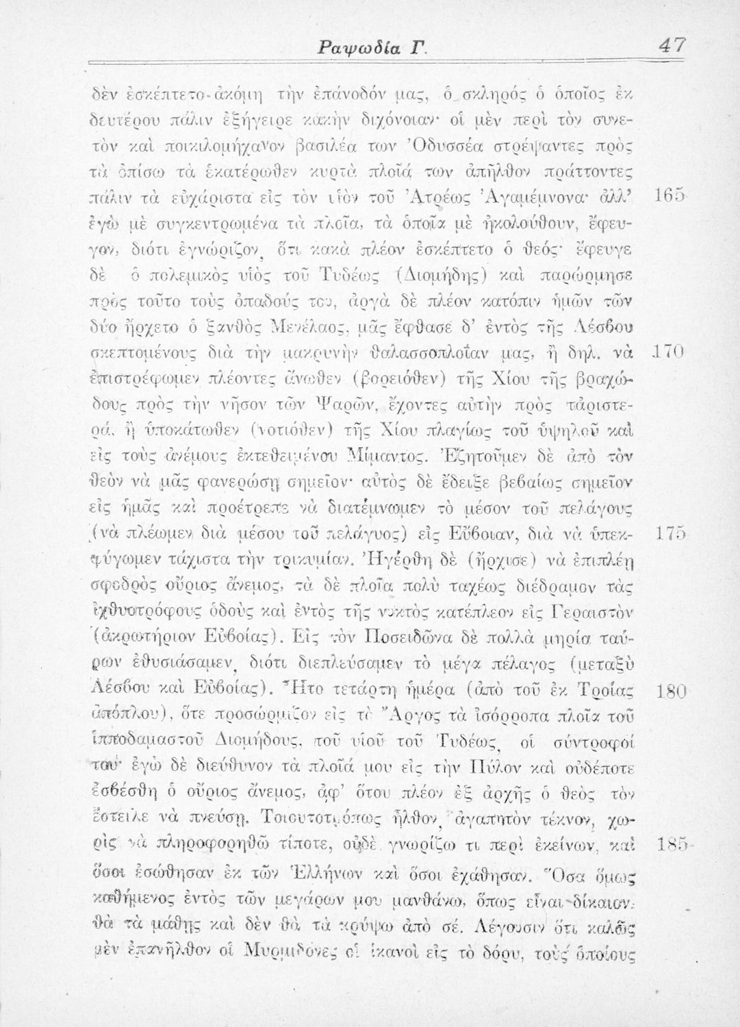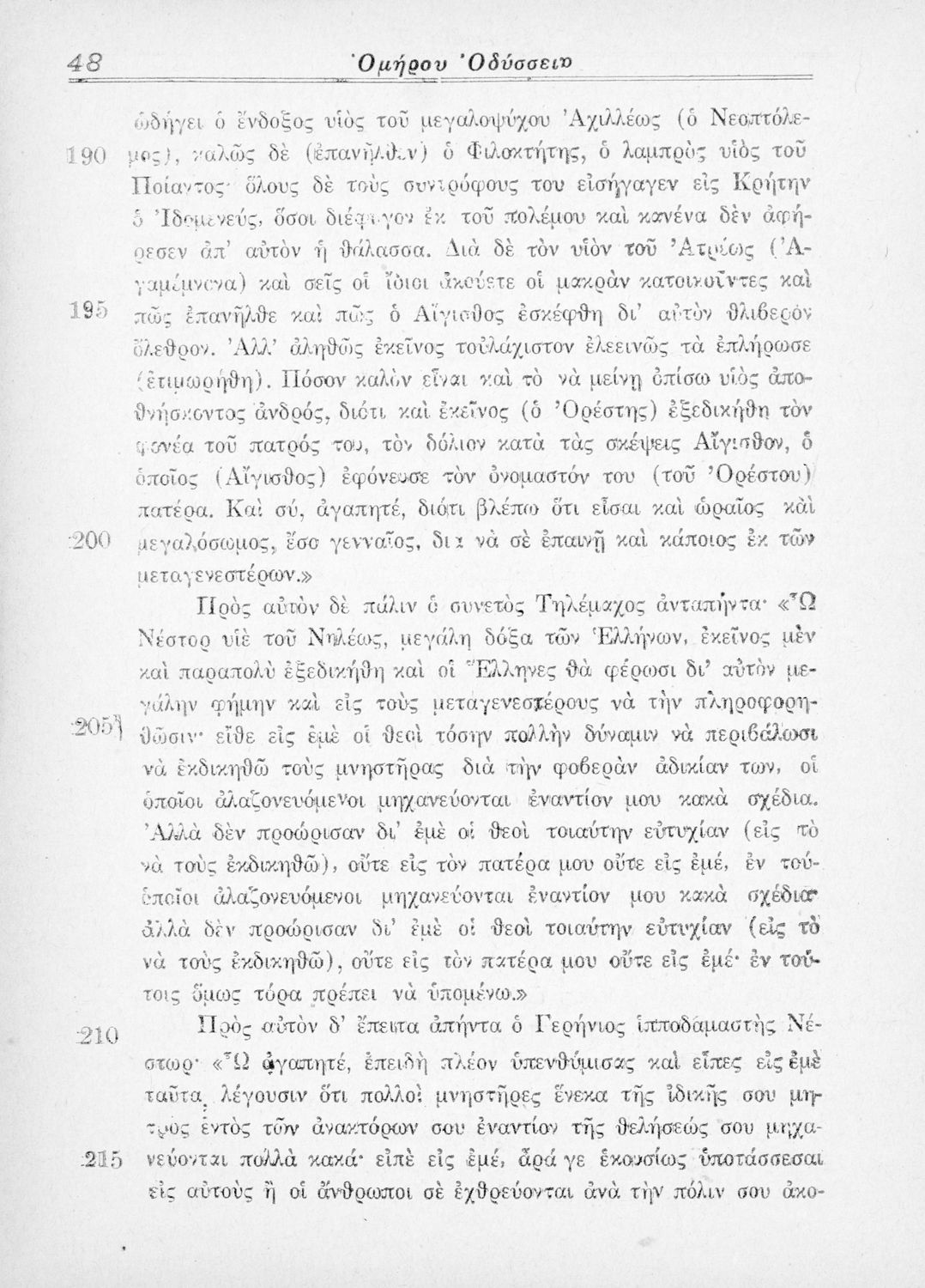 Παιδαγωγικό βοήθημα Αρχαίων Ελληνικών που περιλαμβάνει μετάφραση των ραψωδιών Ν-Ω της Οδύσσειας.