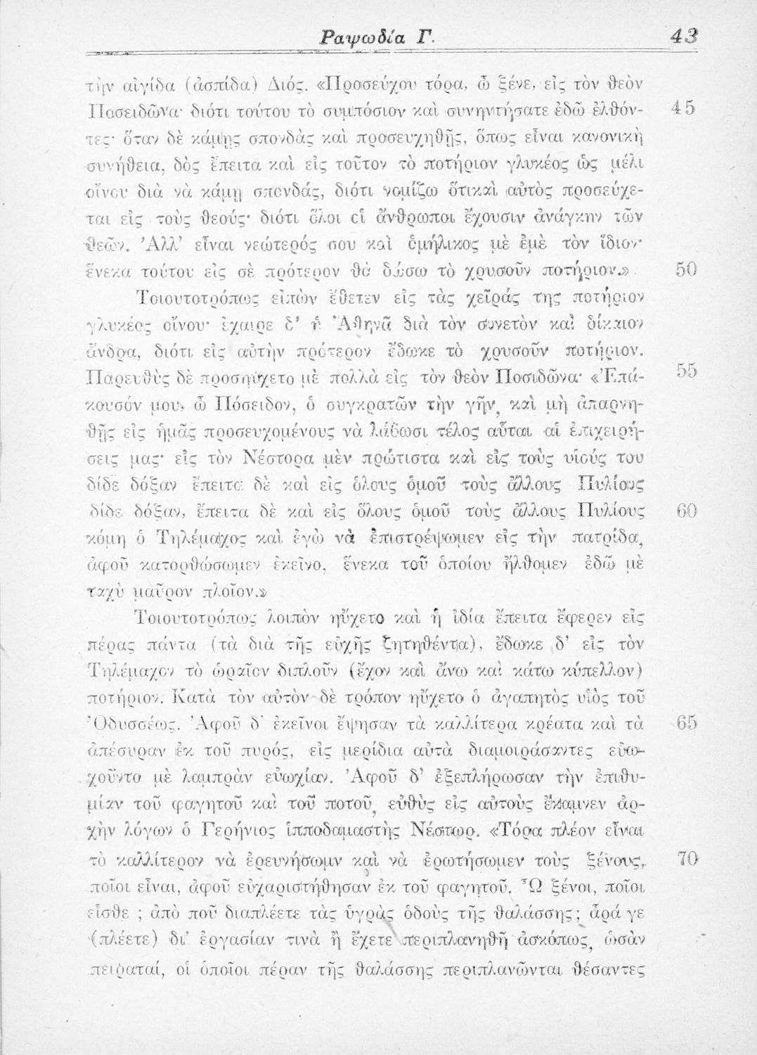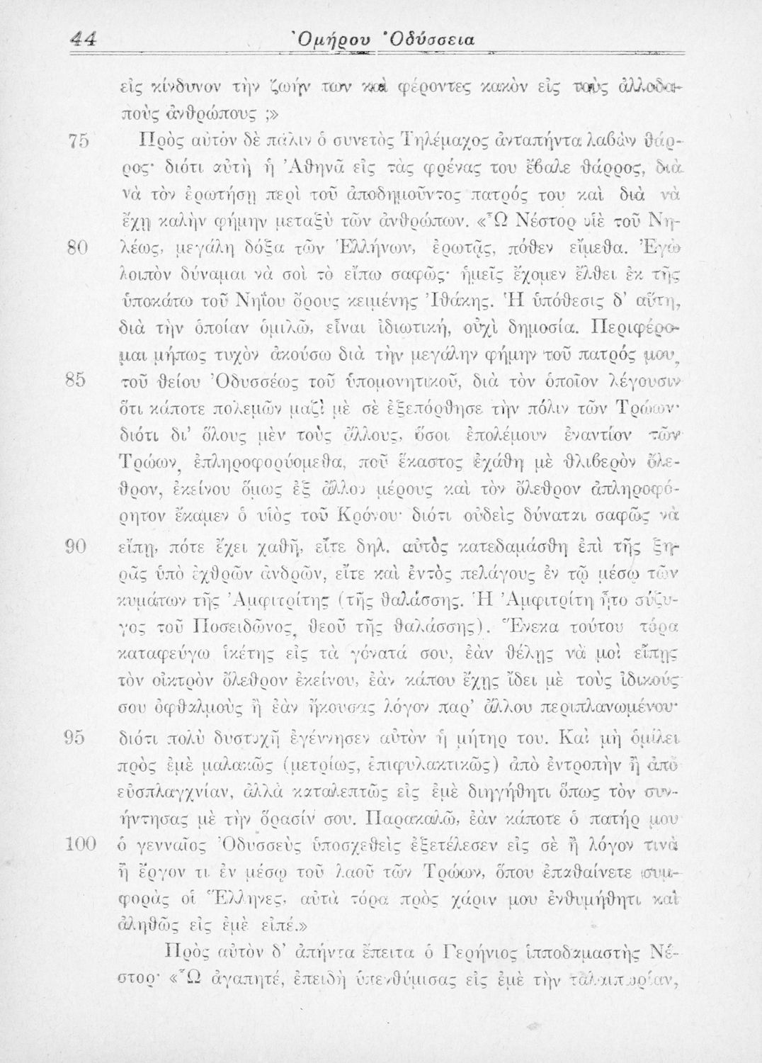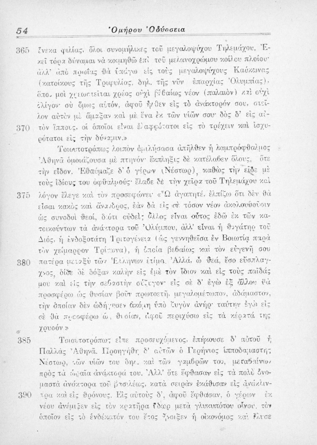 Παιδαγωγικό βοήθημα Αρχαίων Ελληνικών που περιλαμβάνει μετάφραση των ραψωδιών Ν-Ω της Οδύσσειας.