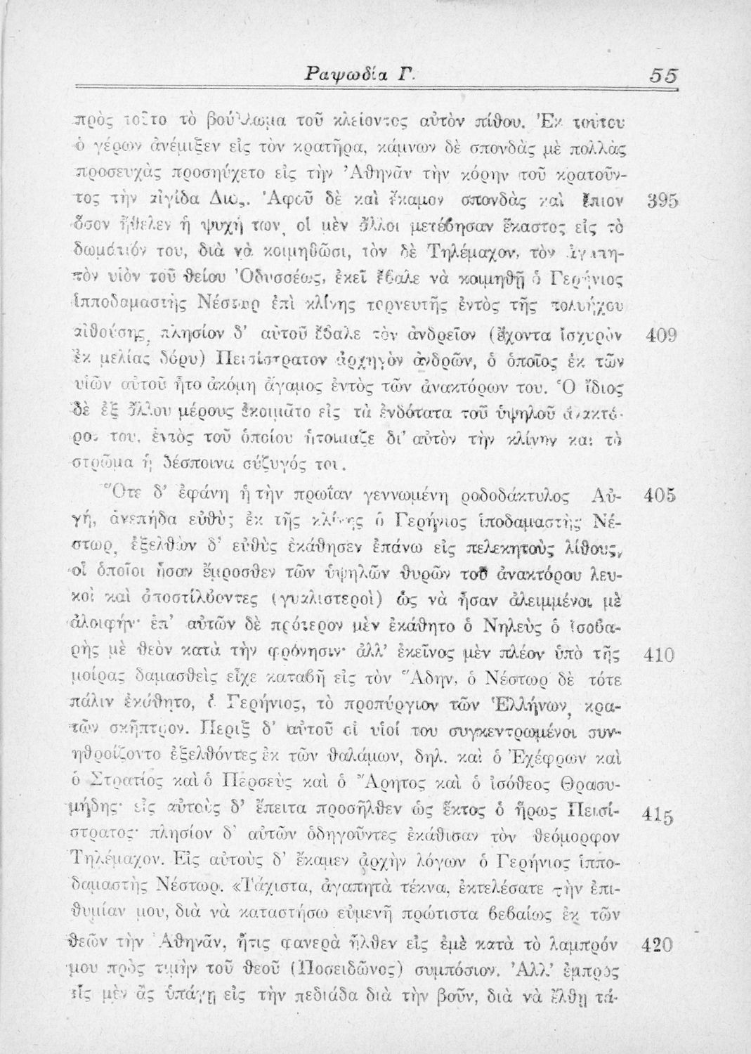 Παιδαγωγικό βοήθημα Αρχαίων Ελληνικών. Περιέχει την Ιλιάδα του Ομήρου με ερμηνεία του Γυμνασιάρχη Α. Ξ. Καραπαναγιώτη. Περιέχει την ραψωδία Γ'.