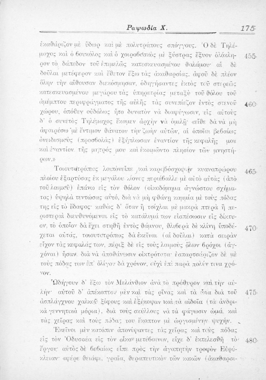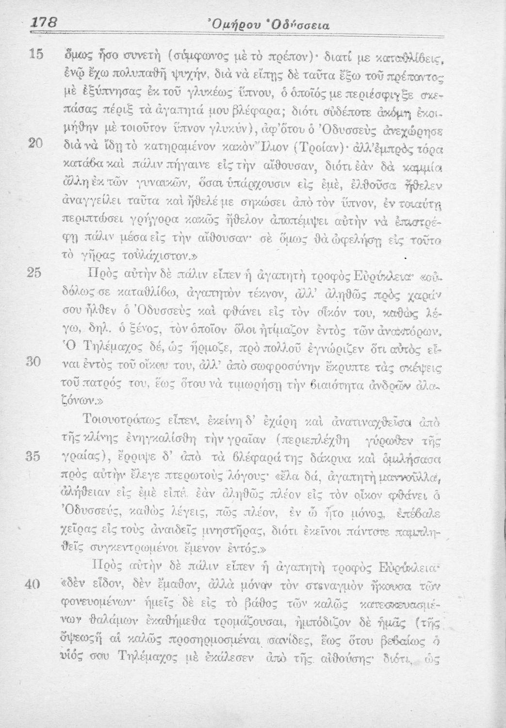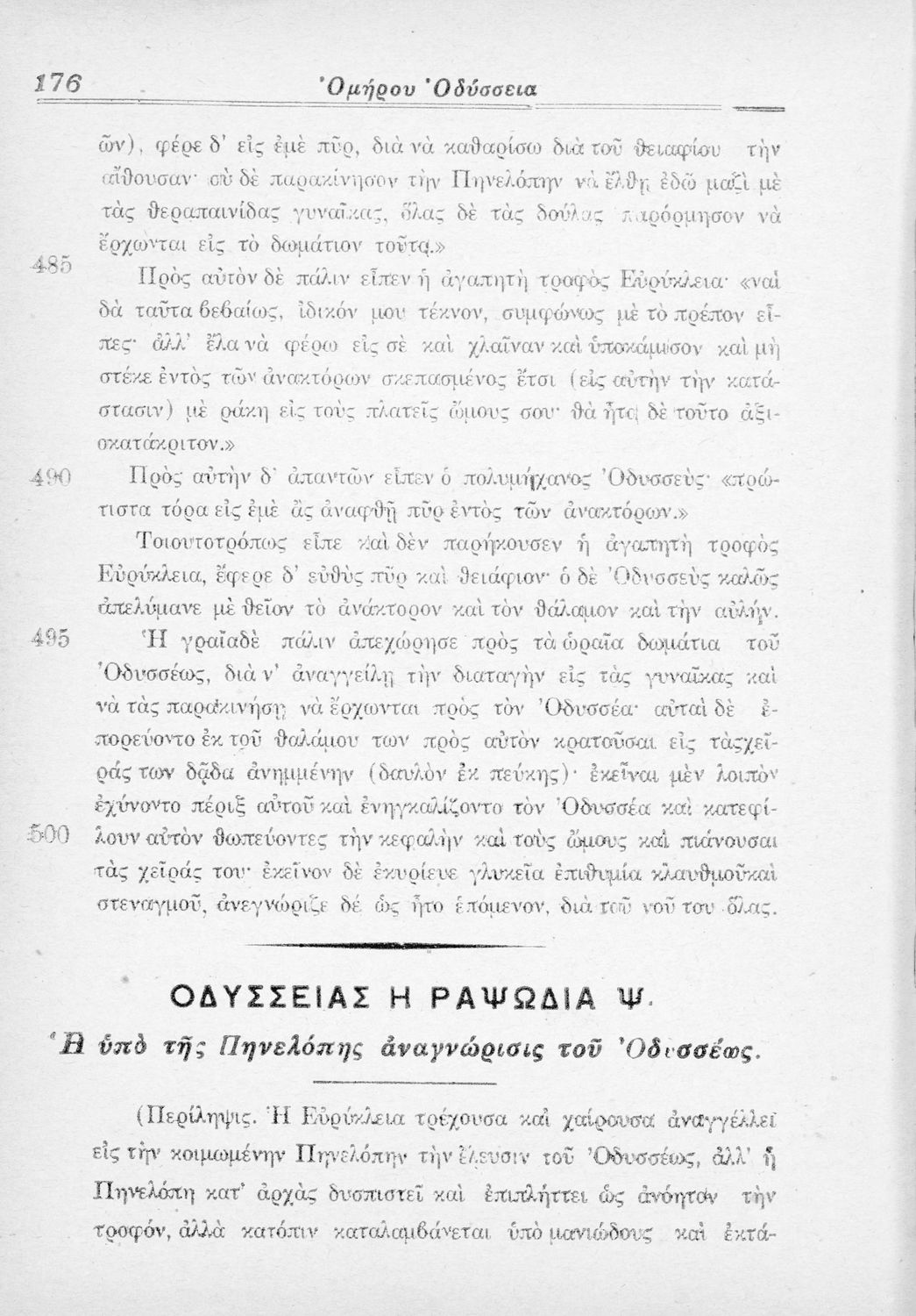 Παιδαγωγικό βοήθημα Αρχαίων Ελληνικών που περιλαμβάνει μετάφραση των ραψωδιών Ν-Ω της Οδύσσειας.