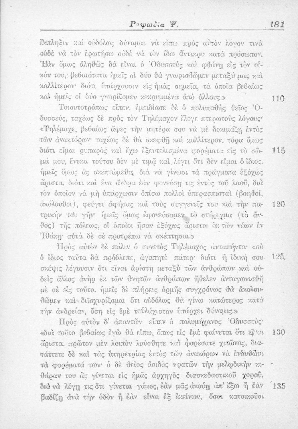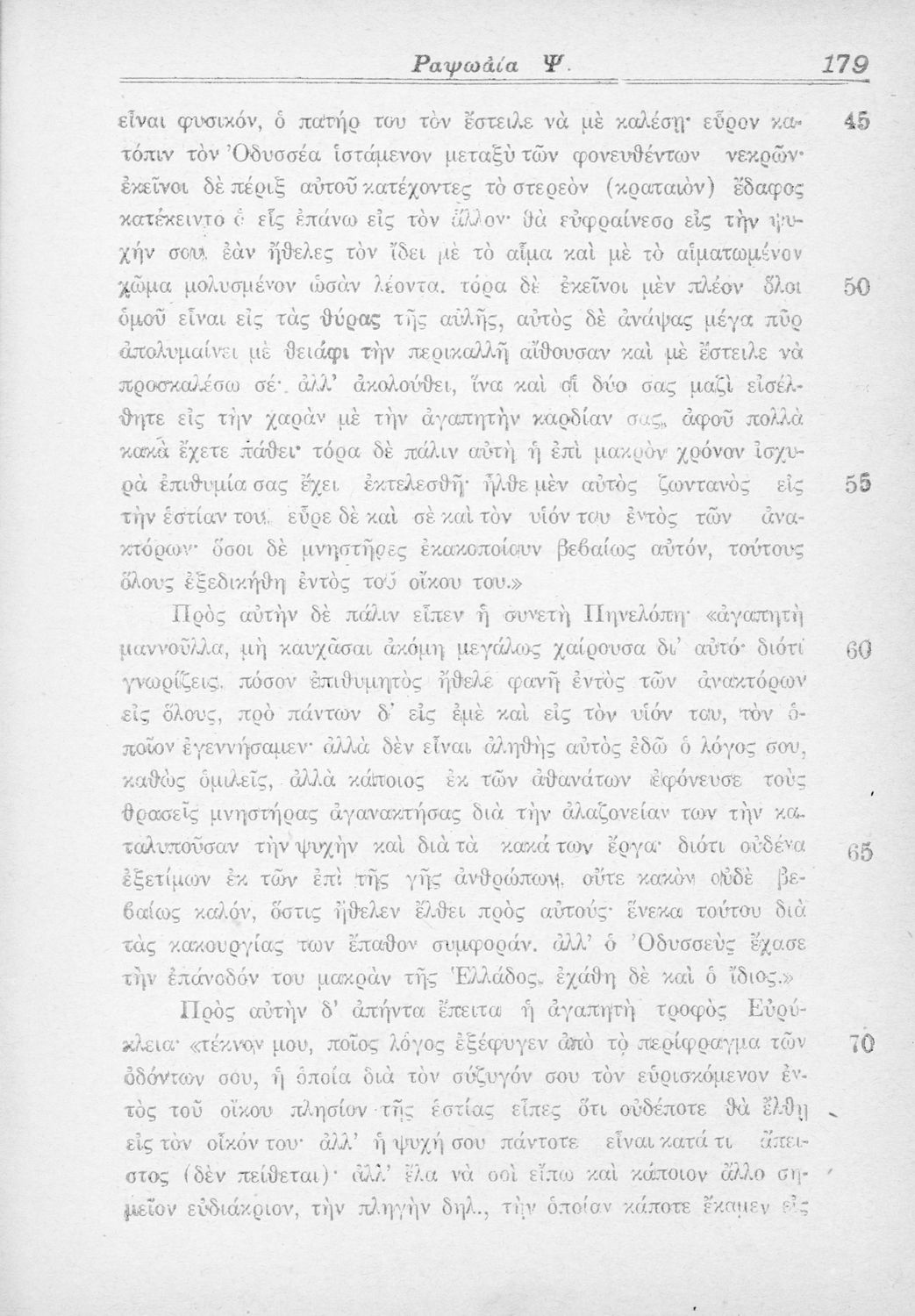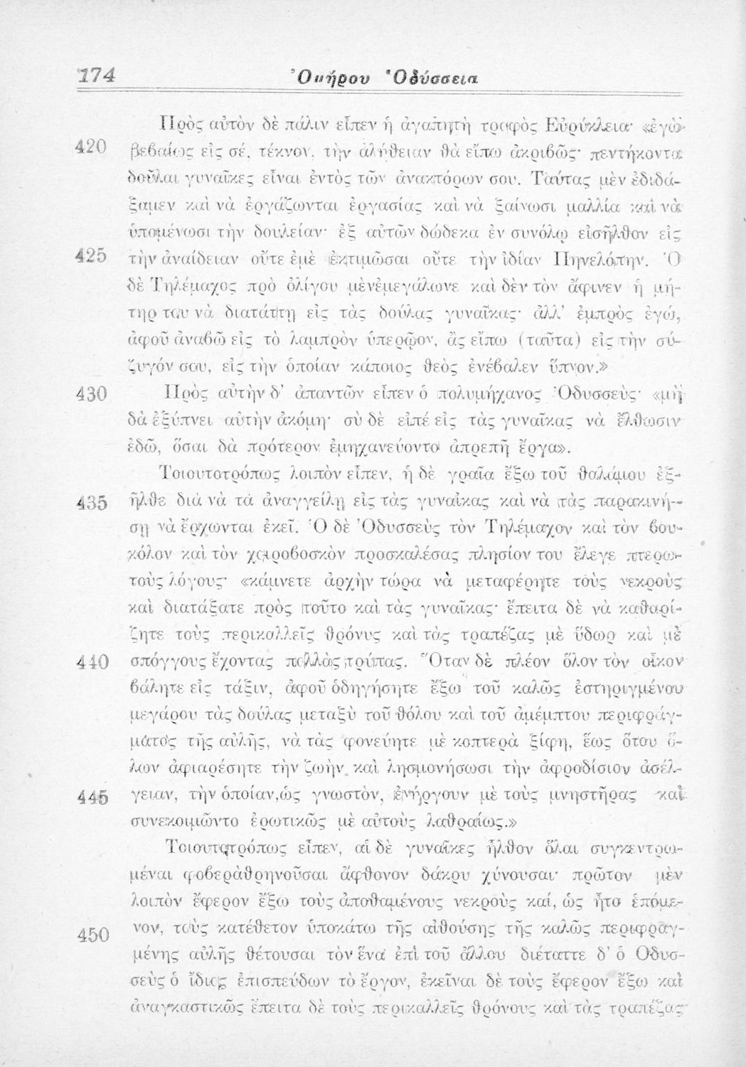 Παιδαγωγικό βοήθημα Αρχαίων Ελληνικών που περιλαμβάνει μετάφραση των ραψωδιών Ν-Ω της Οδύσσειας.