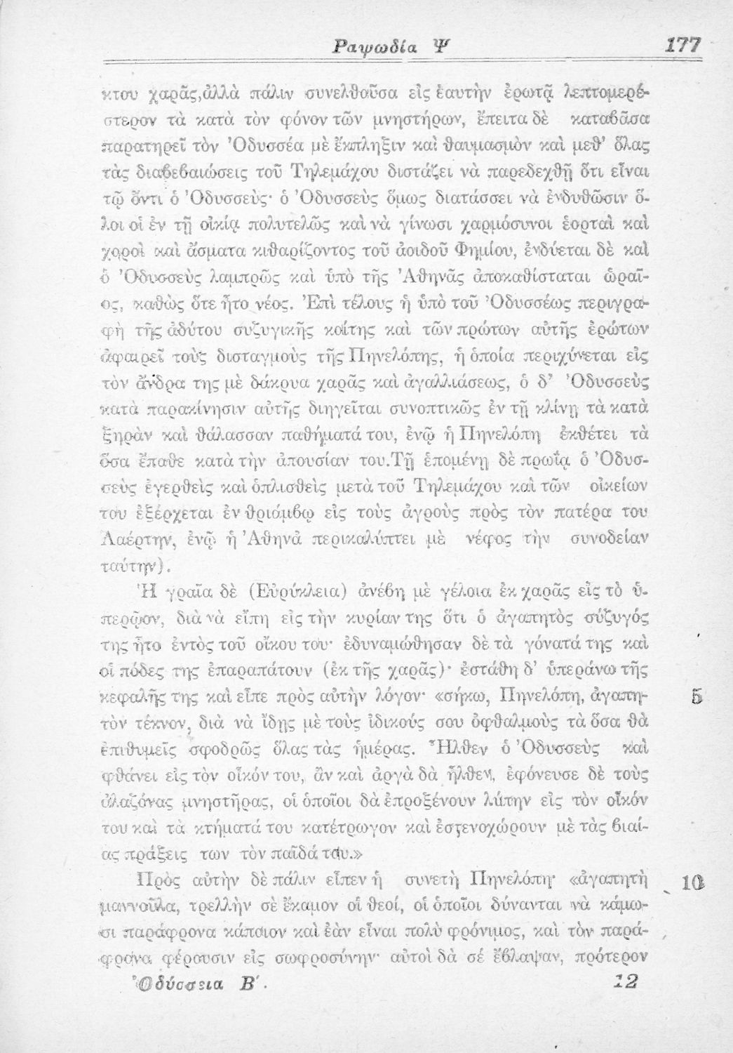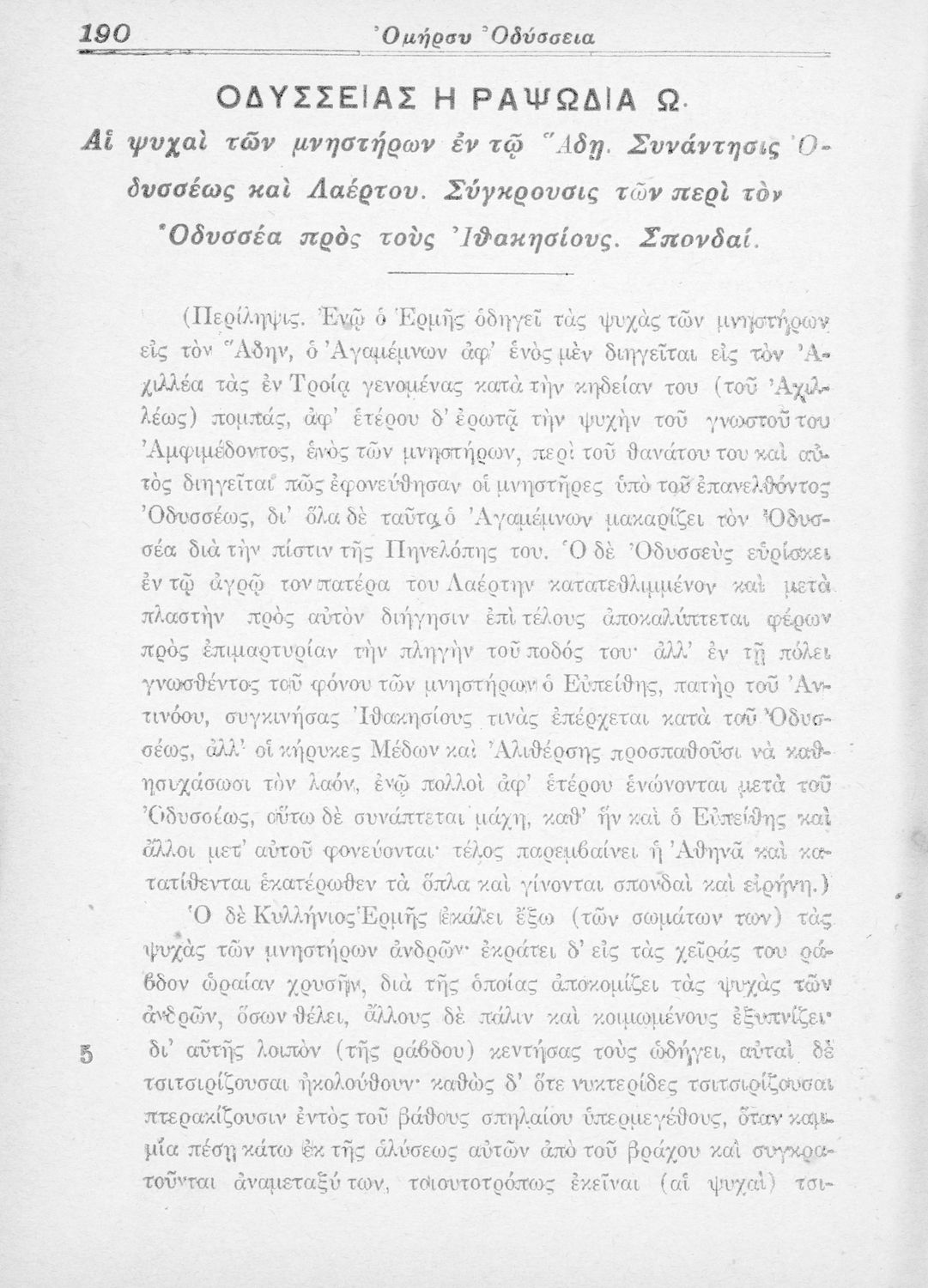 Παιδαγωγικό βοήθημα Αρχαίων Ελληνικών που περιλαμβάνει μετάφραση της Ομήρου Οδύσσειας στη νέα ελληνική, εισαγωγή στην επική ποίηση και στην Οδύσσεια, περιλήψεις και σημειώσεις.