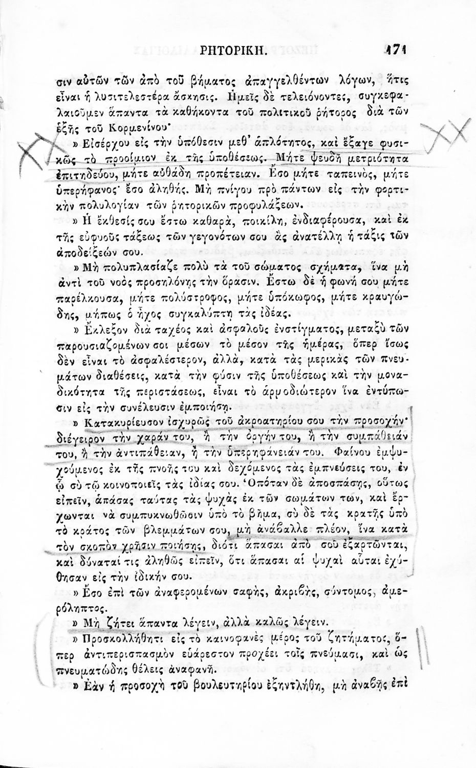 Σχολικό εγχειρίδιο Αρχαίων Ελληνικών Γυμνασίου που εστιάζει στη ρητορική και εκδόθηκε με την συνδρομή ομογενών. Ο συγγραφέας ήταν Γυμνασιάρχης στο Ναύπλιο.