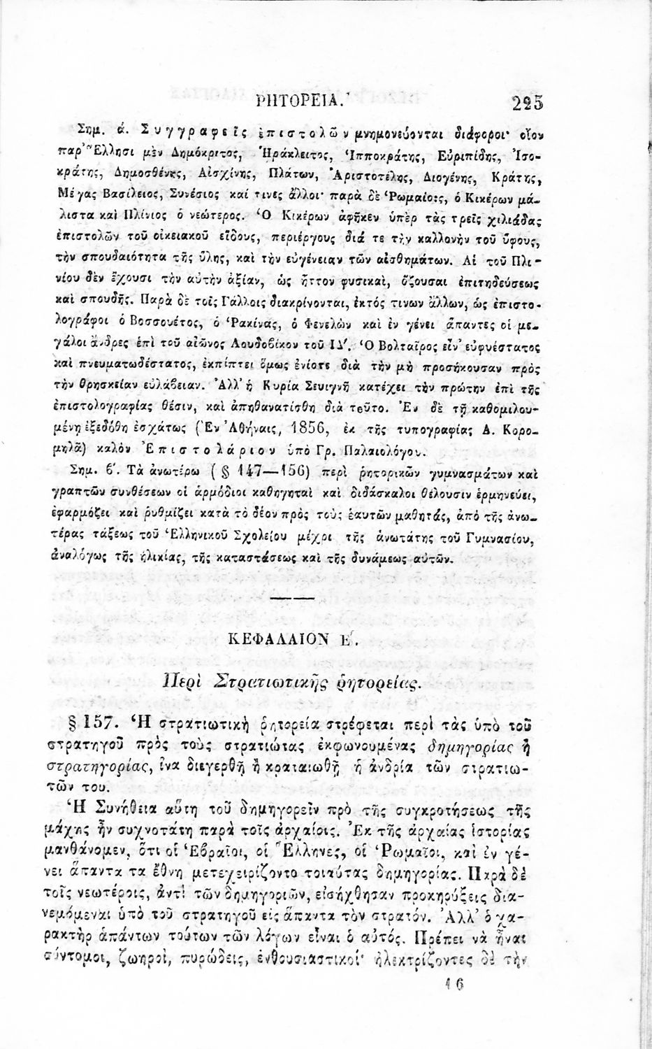 Σχολικό εγχειρίδιο Αρχαίων Ελληνικών Γυμνασίου που εστιάζει στη ρητορική και εκδόθηκε με την συνδρομή ομογενών. Ο συγγραφέας ήταν Γυμνασιάρχης στο Ναύπλιο.