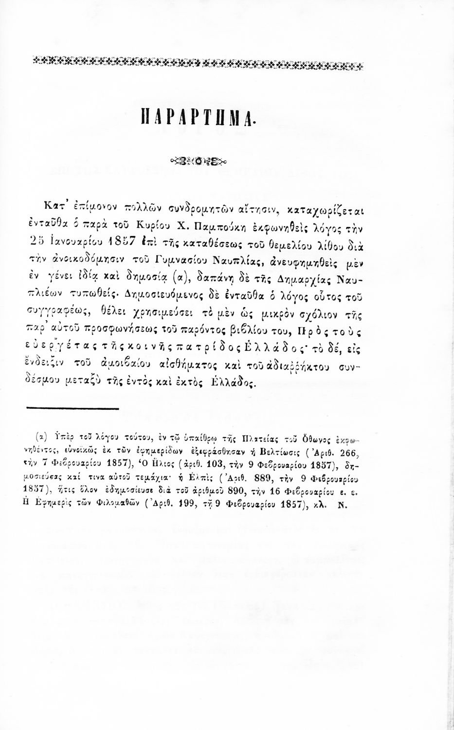 Σχολικό εγχειρίδιο Αρχαίων Ελληνικών για τα Ελληνικά Σχολεία, Παρθεναγωγεία και Γυμνάσια που περιέχει τους κανόνες γραμματικής και είναι χωρισμένο σε φθογγολογικό, τυπολογικό και ετυμολογικό μέρος.