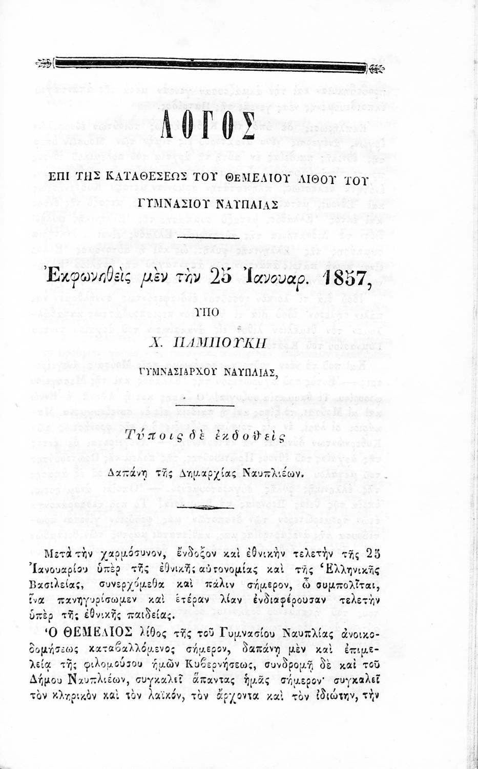 Σχολικό εγχειρίδιο Αρχαίων Ελληνικών Γυμνασίου που εστιάζει στη ρητορική και εκδόθηκε με την συνδρομή ομογενών. Ο συγγραφέας ήταν Γυμνασιάρχης στο Ναύπλιο.
