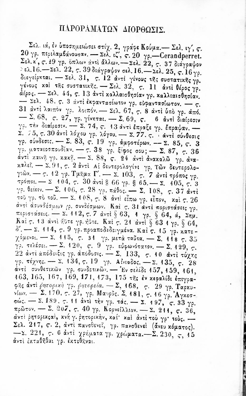 Μαθητικό βοήθημα Αρχαίων Ελληνικών για τα Ελληνικά Σχολεία, Παρθεναγωγεία και Γυμνάσια που περιλαμβάνει γραμματική της αρχαίας ελληνικής και κατάλογο ανωμάλων ρημάτων.