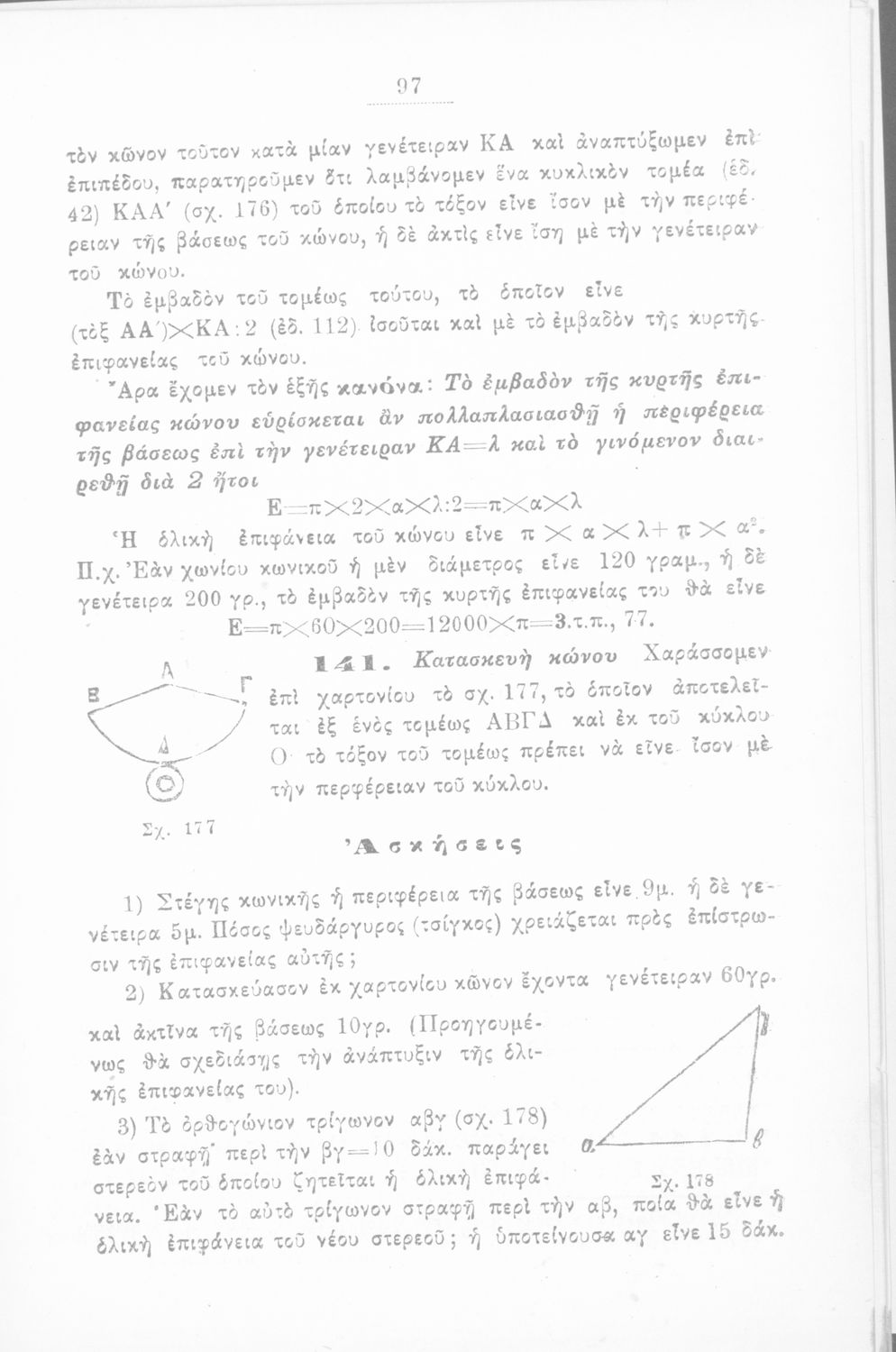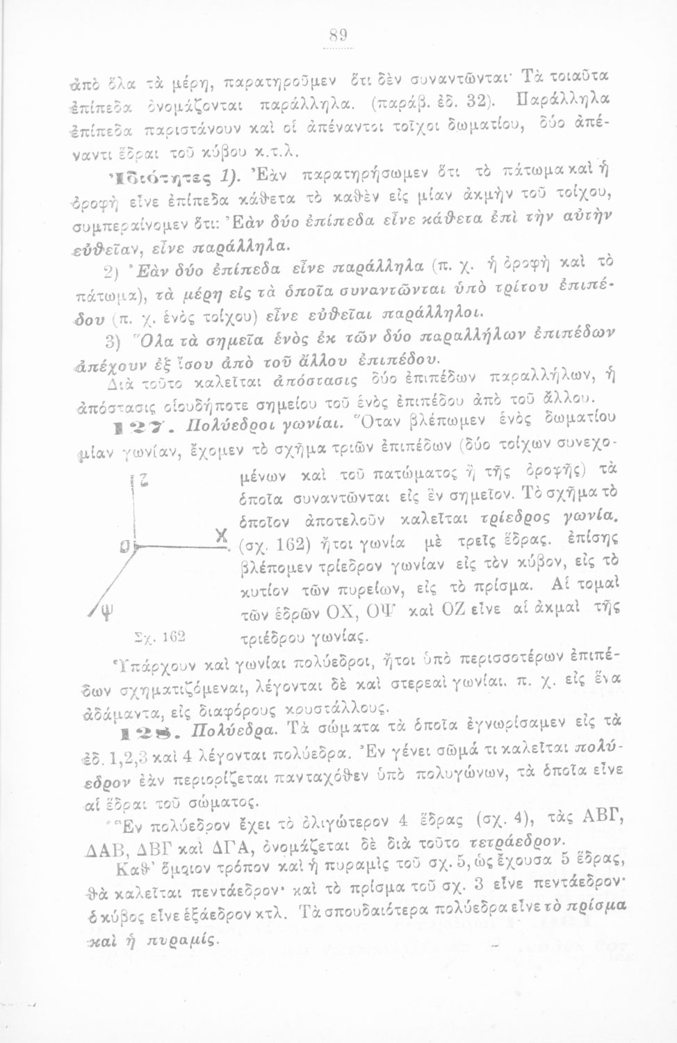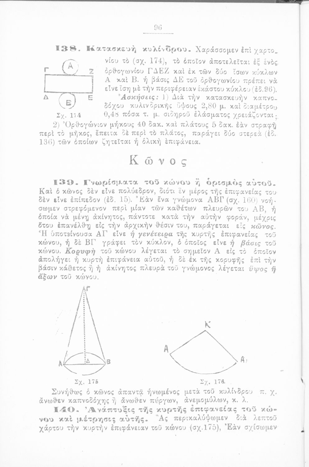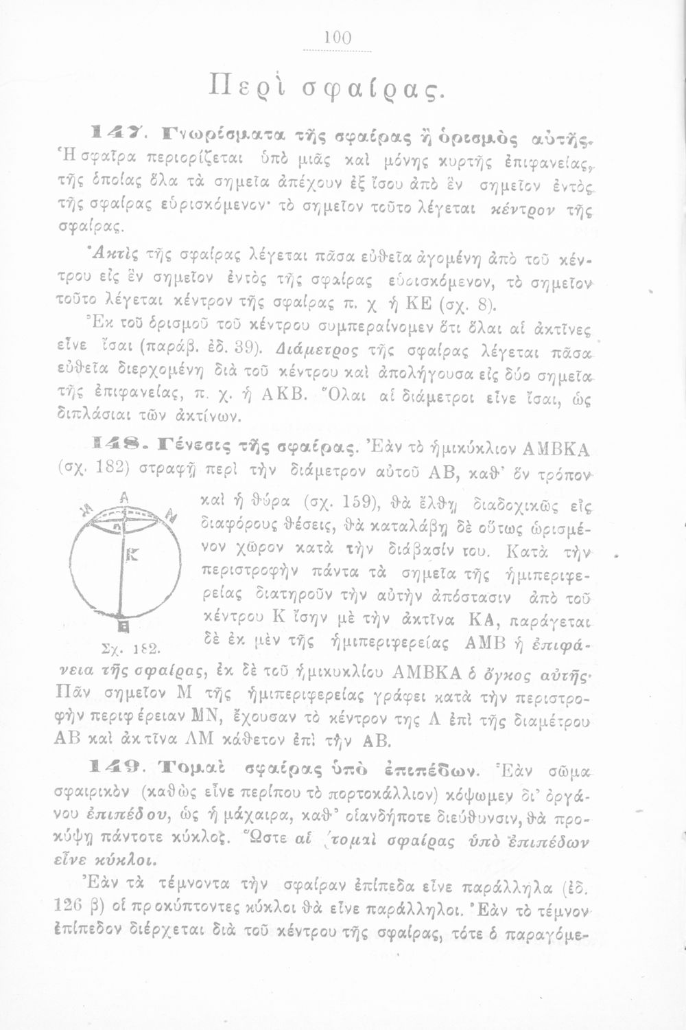 Σχολικό εγχειρίδιο Γεωμετρίας για την Α΄, Β΄ και Γ΄ τάξη των Ελληνικών και Αστικών Σχολείων και Παρθεναγωγείων που είναι χωρισμένο σε Επιπεδομετρία και Στερεομετρία και περιλαμβάνει θεωρία και ασκήσεις.