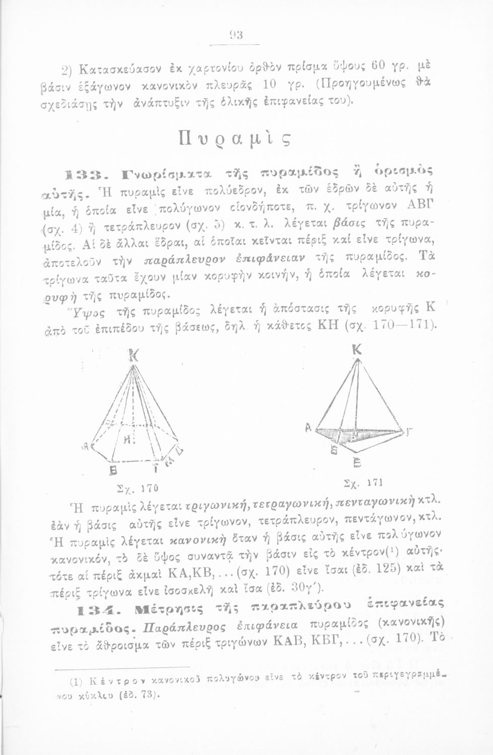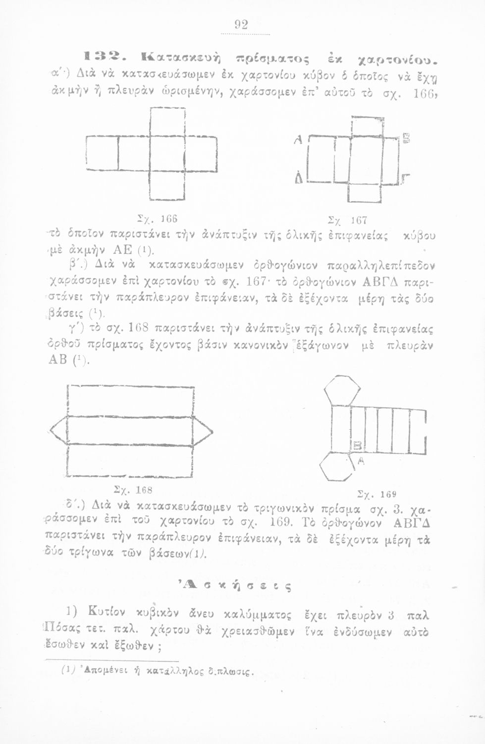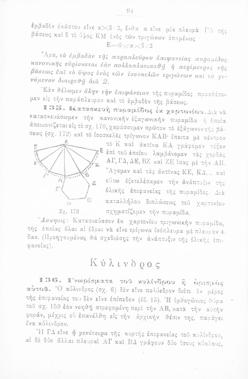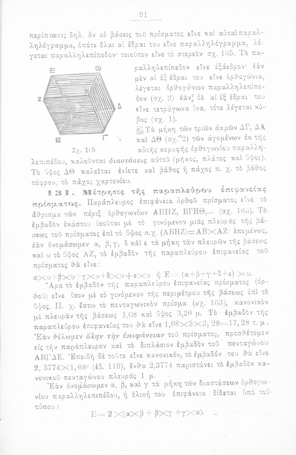 Σχολικό εγχειρίδιο Γεωμετρίας για την Α΄, Β΄ και Γ΄ τάξη των Ελληνικών και Αστικών Σχολείων και Παρθεναγωγείων που είναι χωρισμένο σε Επιπεδομετρία και Στερεομετρία και περιλαμβάνει θεωρία και ασκήσεις.