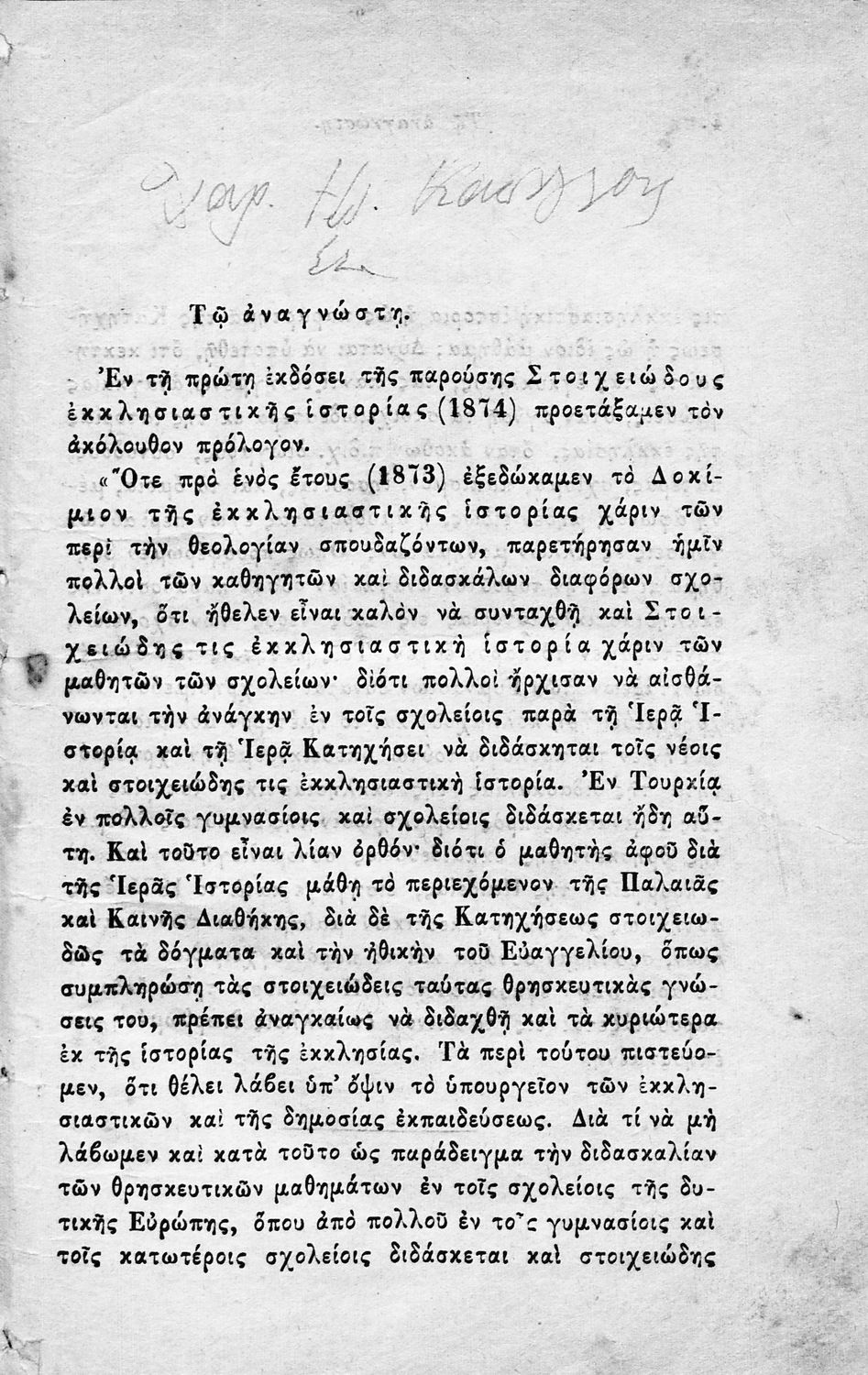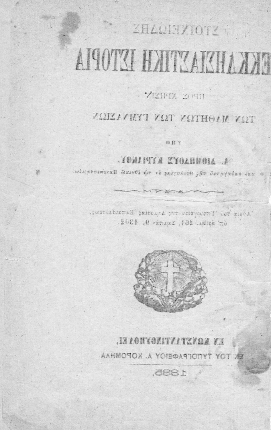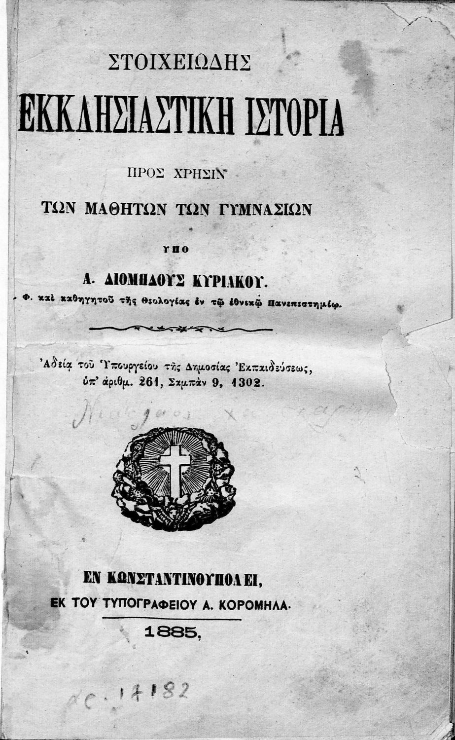Τίτλος: Στοιχειώδης εκκλησιαστική ιστορία προς χρήσιν των Γυμνασίων