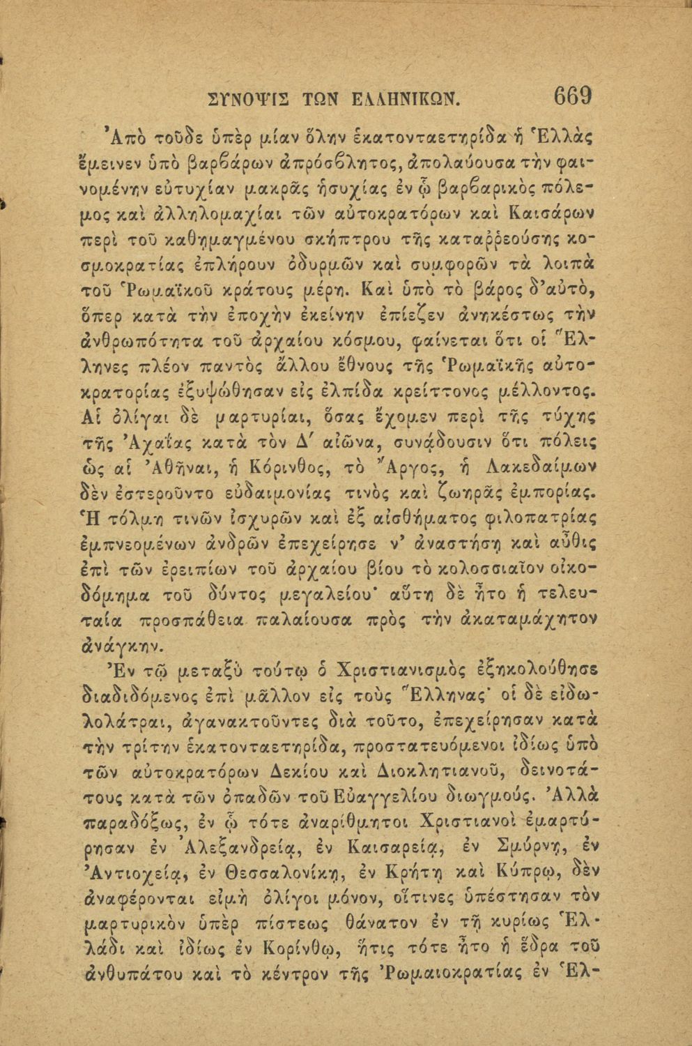 Τα ελληνικά: ήτοι, βίος της Ελλάδος κατά πάσας τας σχέσεις και εκδηλώσεις αυτού εξεταζόμενος: εκτενέστερον μεν από των αρχαιοτάτων χρόνων μέχρι της Ρωμαιοκρατίας, συνοπτικώς δε από της εποχής ταύτης μέχρι των νεωτάτων χρόνων