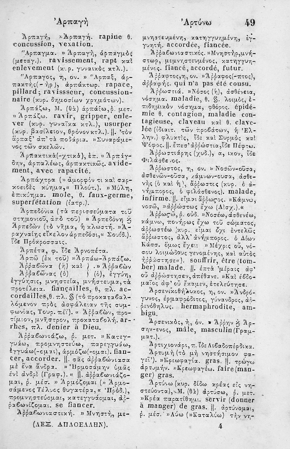 Μαθητικό βοήθημα Αρχαίων Ελληνικών για τα Ελληνικά Σχολεία, Παρθεναγωγεία και Γυμνάσια που περιλαμβάνει γραμματική της αρχαίας ελληνικής και κατάλογο ανωμάλων ρημάτων.
