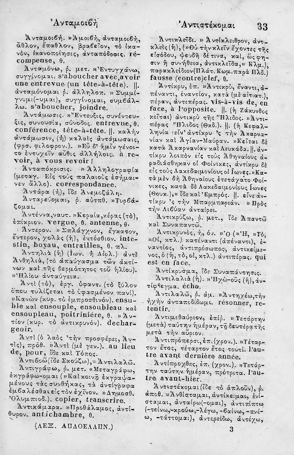 Τίτλος: Λεξικόν της καθ’ημάς ελληνικής διαλέκτου μεθηρμηνευμένης εις το αρχαίον ελληνικόν και το γαλλικόν