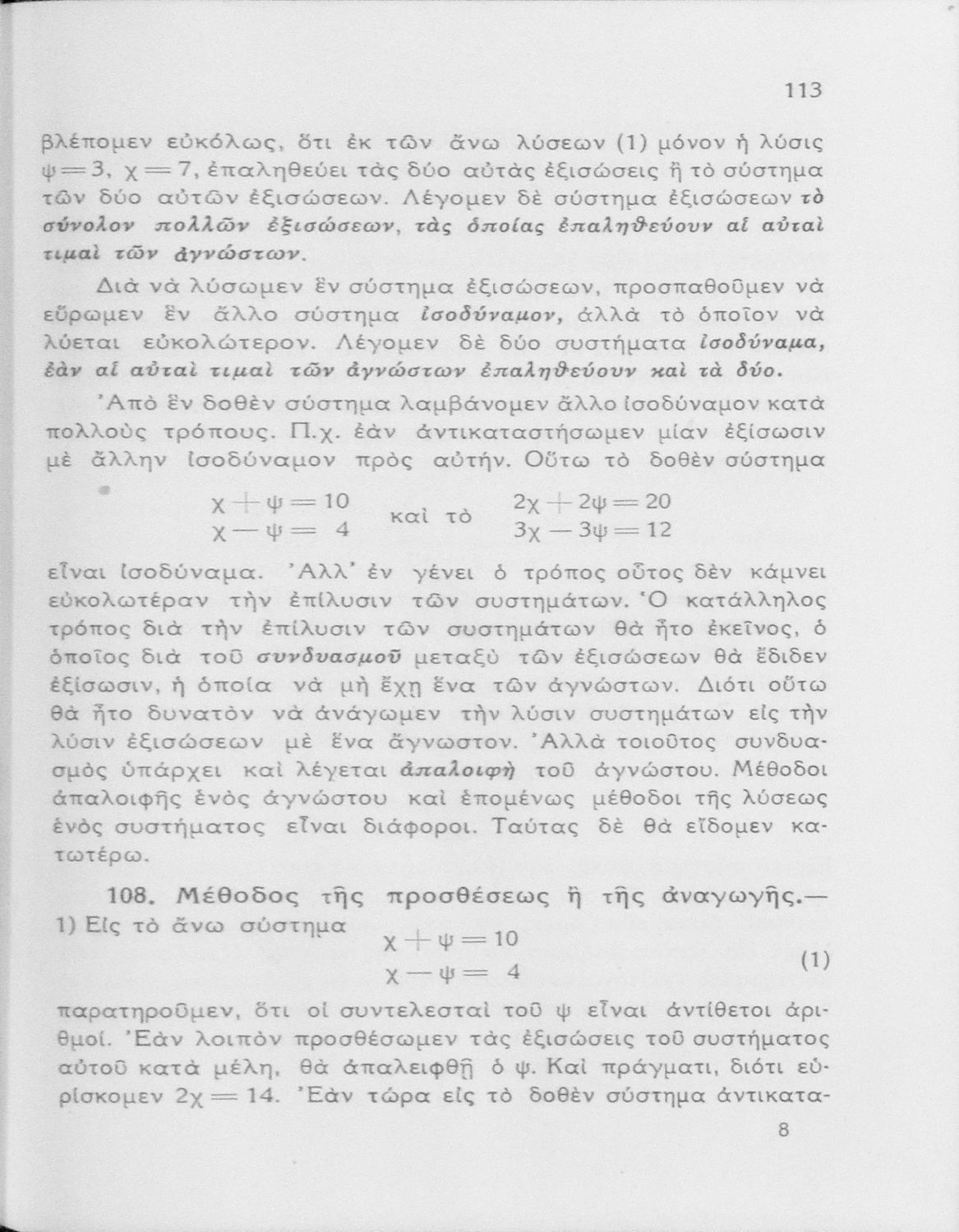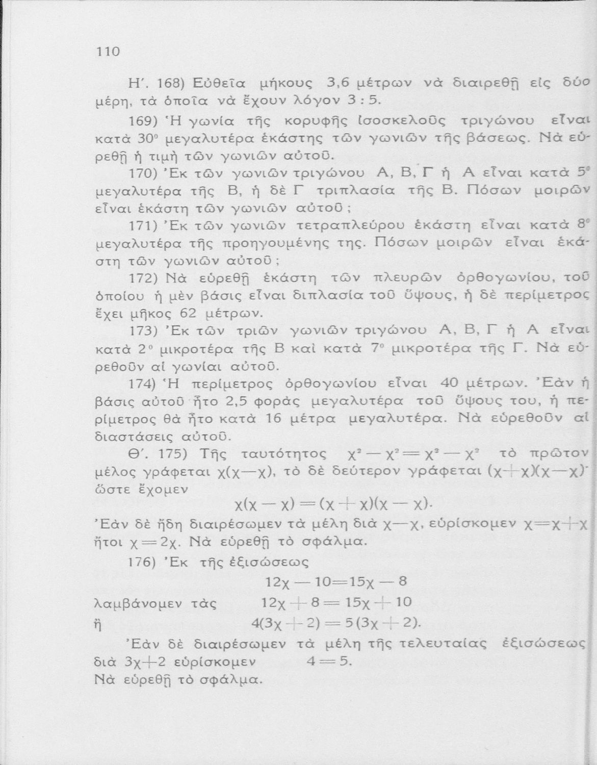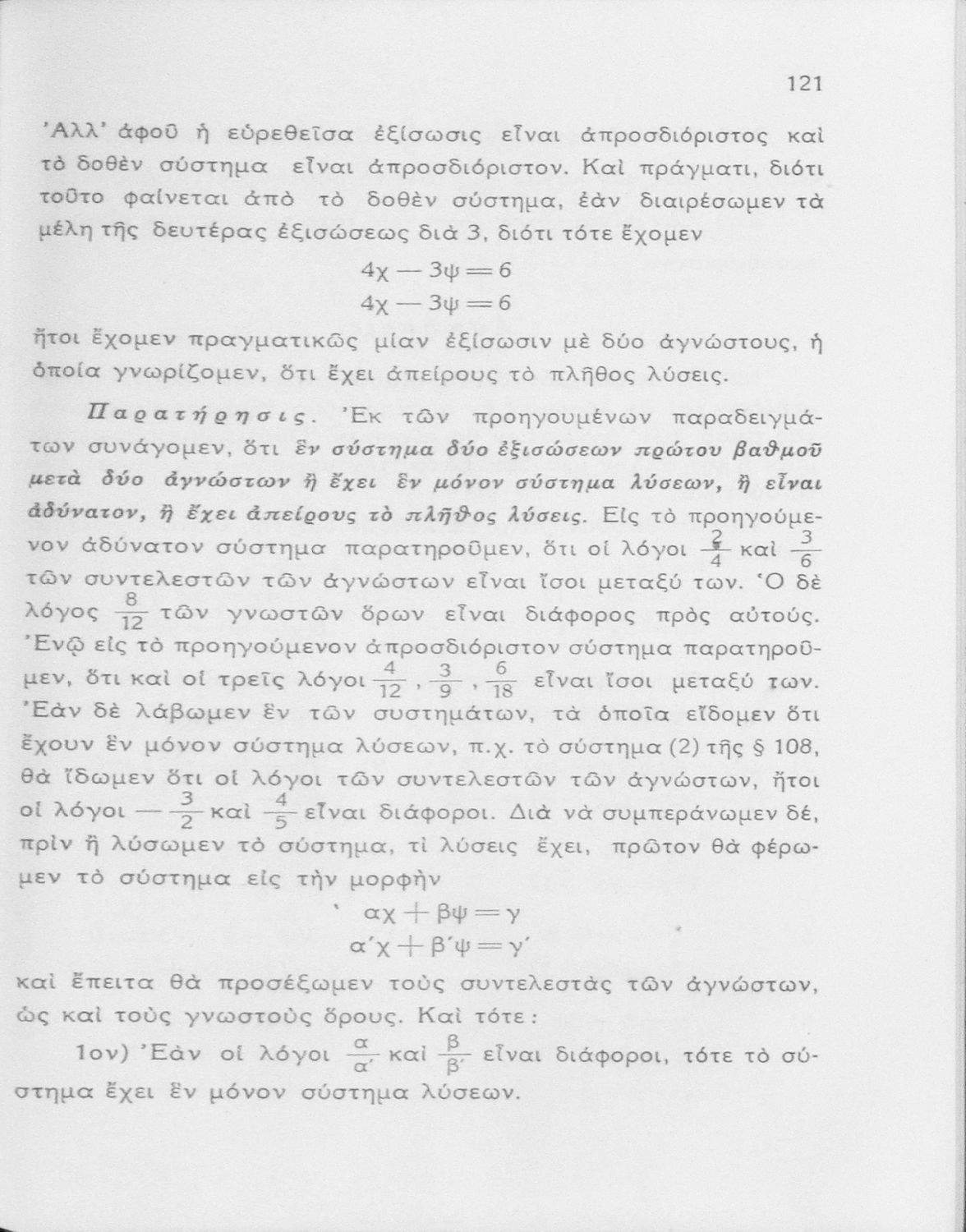 Βαθμίδα εκπαίδευσης: Δευτεροβάθμια Τάξη: Δ' Γυμνασίου / Ε΄ Εξαταξίου Γυμνασίου Μάθημα: Μαθηματικά Γλώσσα: Απλή καθαρεύουσα Παρουσίαση περιεχομένου: Σχολικό εγχειρίδιο Άλγεβρας για τις Δ΄ και Ε΄ Εξαταξίου Γυμνασίου χωρισμένο σε θεωρία και ασκήσεις που εστιάζει στις αλγεβρικές πράξεις και παραστάσεις, στις εξισώσεις και στις ρίζες. |