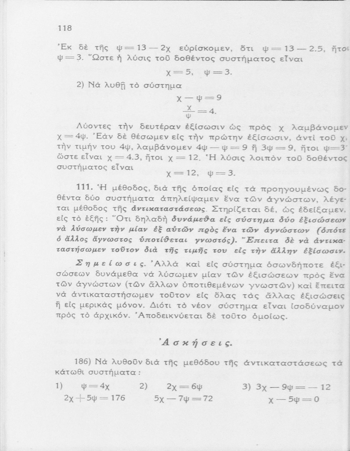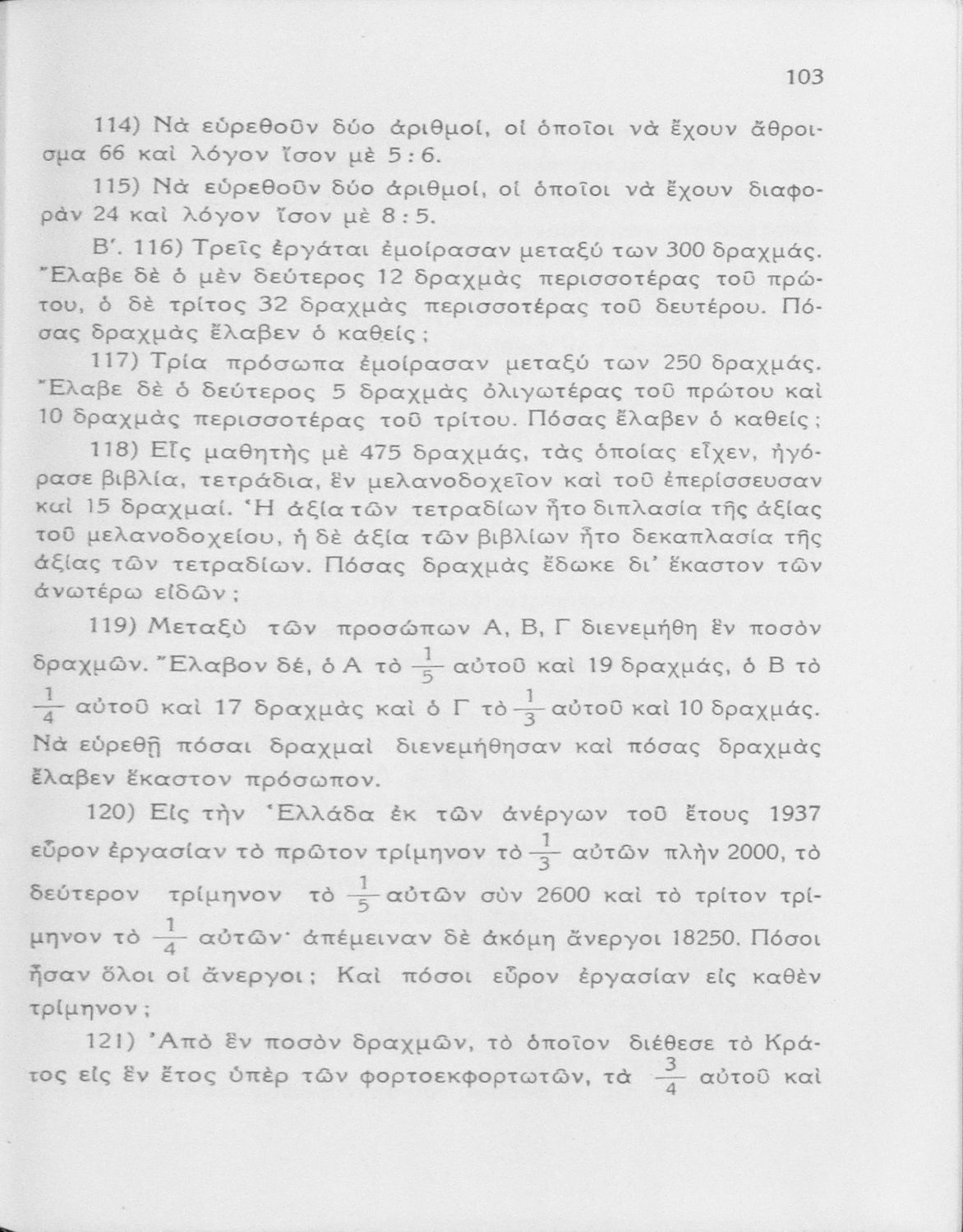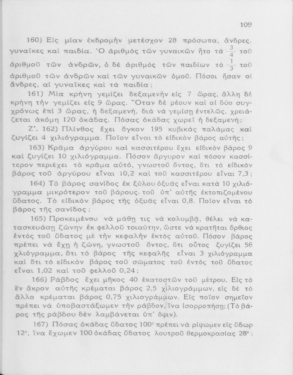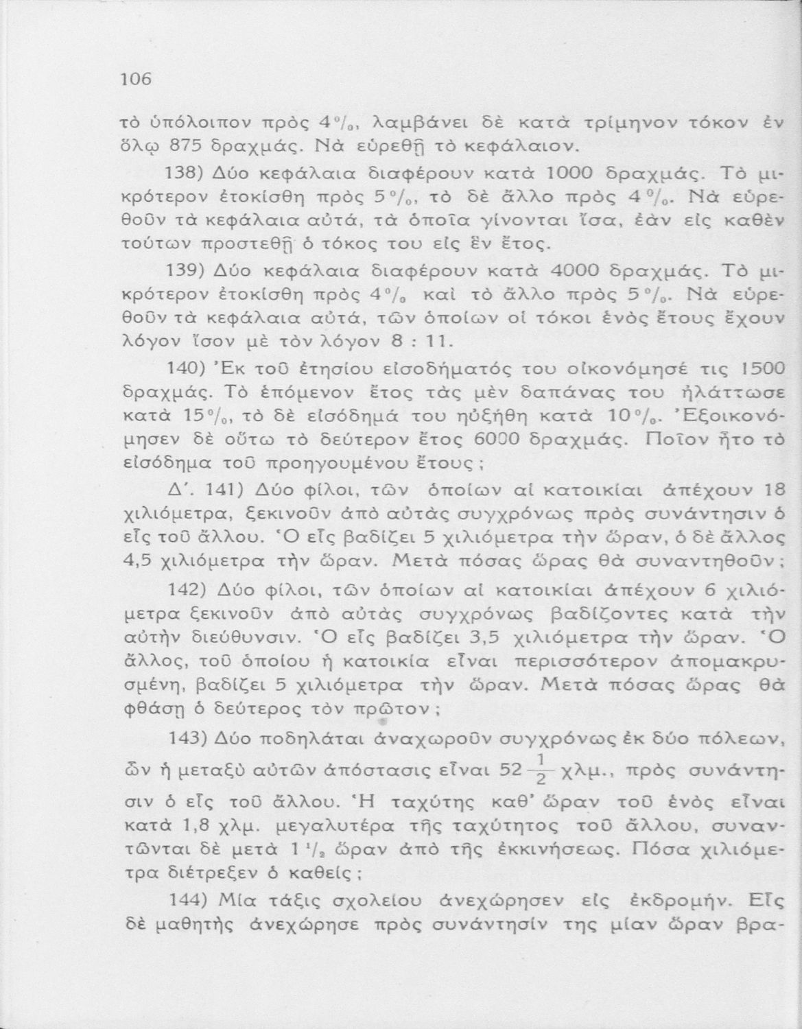 Βαθμίδα εκπαίδευσης: Δευτεροβάθμια Τάξη: Δ' Γυμνασίου / Ε΄ Εξαταξίου Γυμνασίου Μάθημα: Μαθηματικά Γλώσσα: Απλή καθαρεύουσα Παρουσίαση περιεχομένου: Σχολικό εγχειρίδιο Άλγεβρας για τις Δ΄ και Ε΄ Εξαταξίου Γυμνασίου χωρισμένο σε θεωρία και ασκήσεις που εστιάζει στις αλγεβρικές πράξεις και παραστάσεις, στις εξισώσεις και στις ρίζες. |
