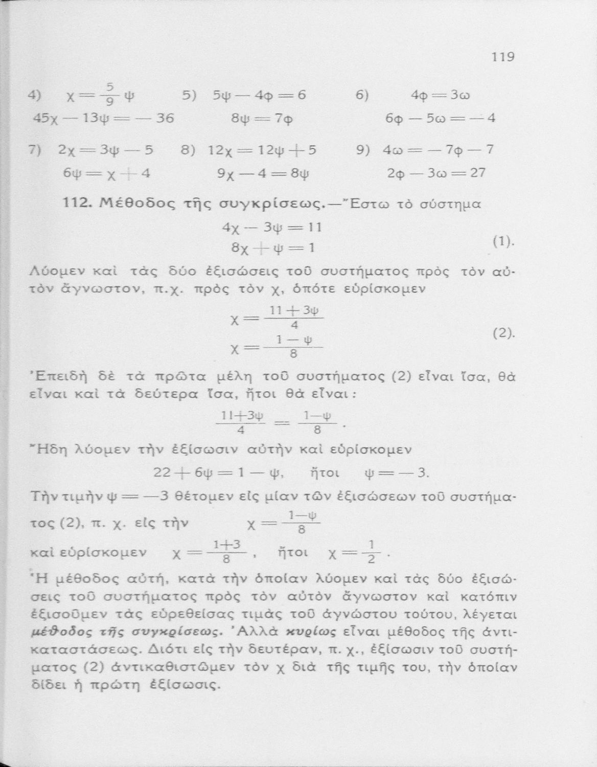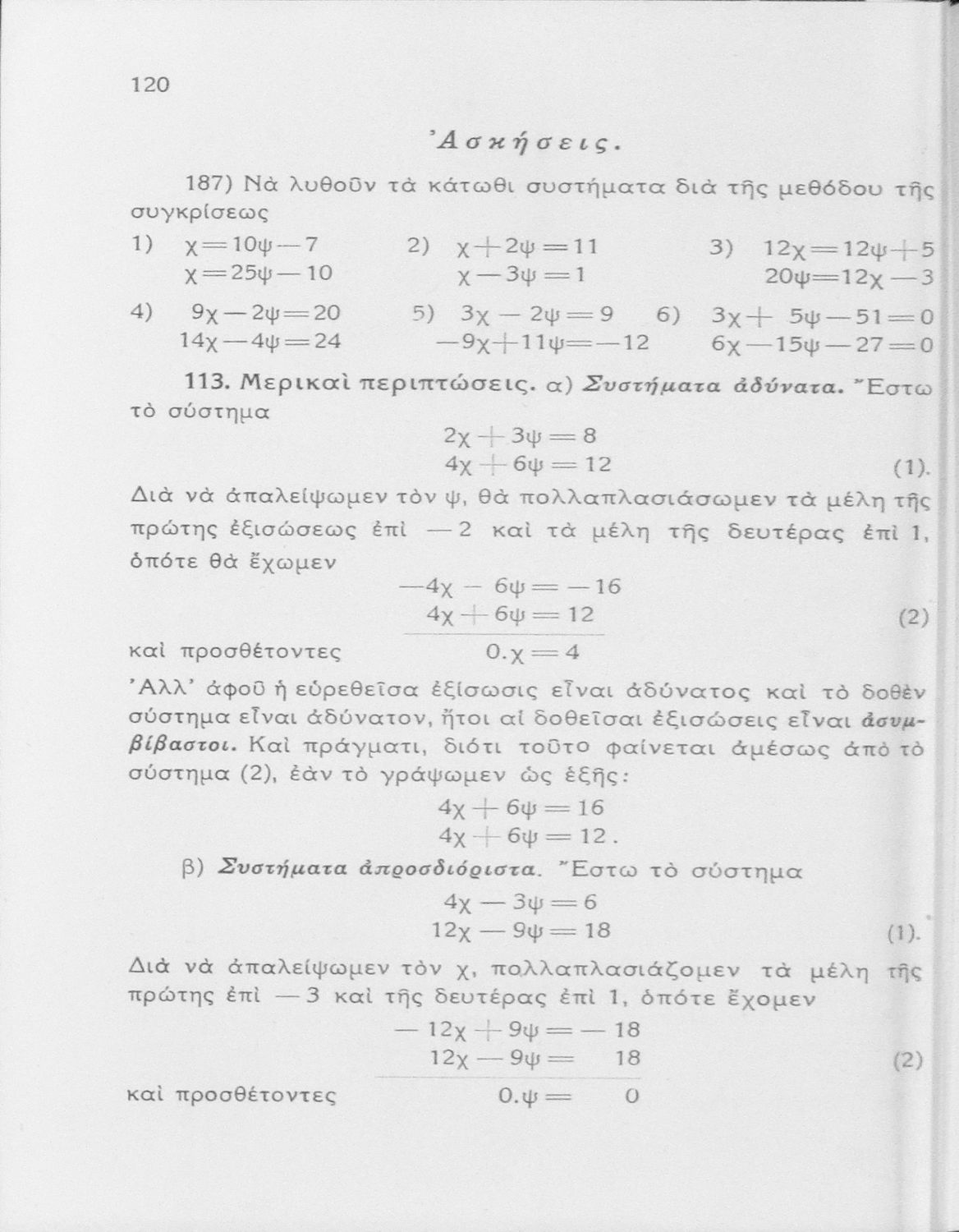 Κωδικός αναγνώρισης: 01-17189 Τίτλος: Άλγεβρα προς χρήσιν των μαθητών της Δ΄ και Ε΄ τάξεως των Εξαταξίων Γυμνασίων νέου τύπου Συγγραφέας: Χρίστος Α. Μπαρμπαστάθης Μέγεθος και υπόστρωμα: Σχολικό εγχειρίδιο, 20εκ., σκληρό εξώφυλλο, 279 σελίδες. |