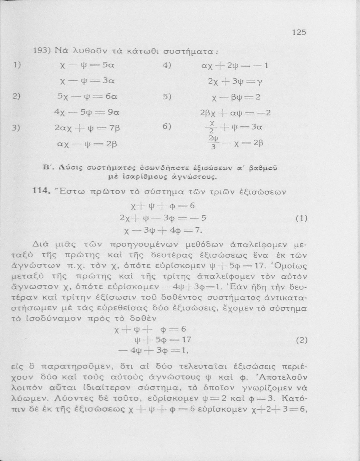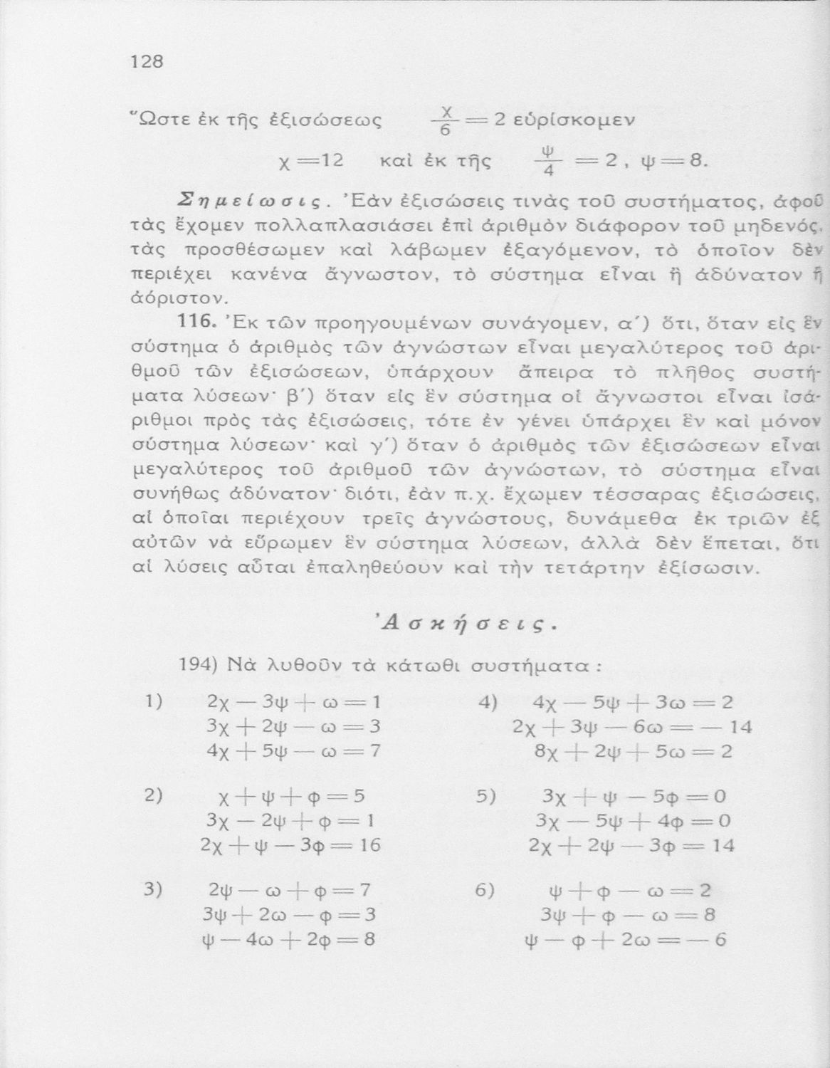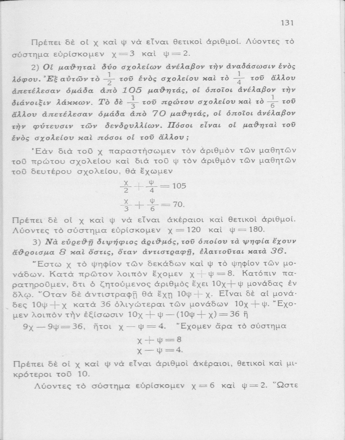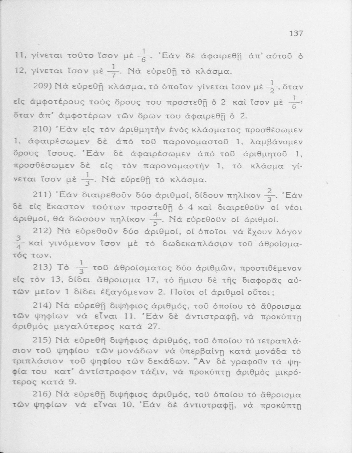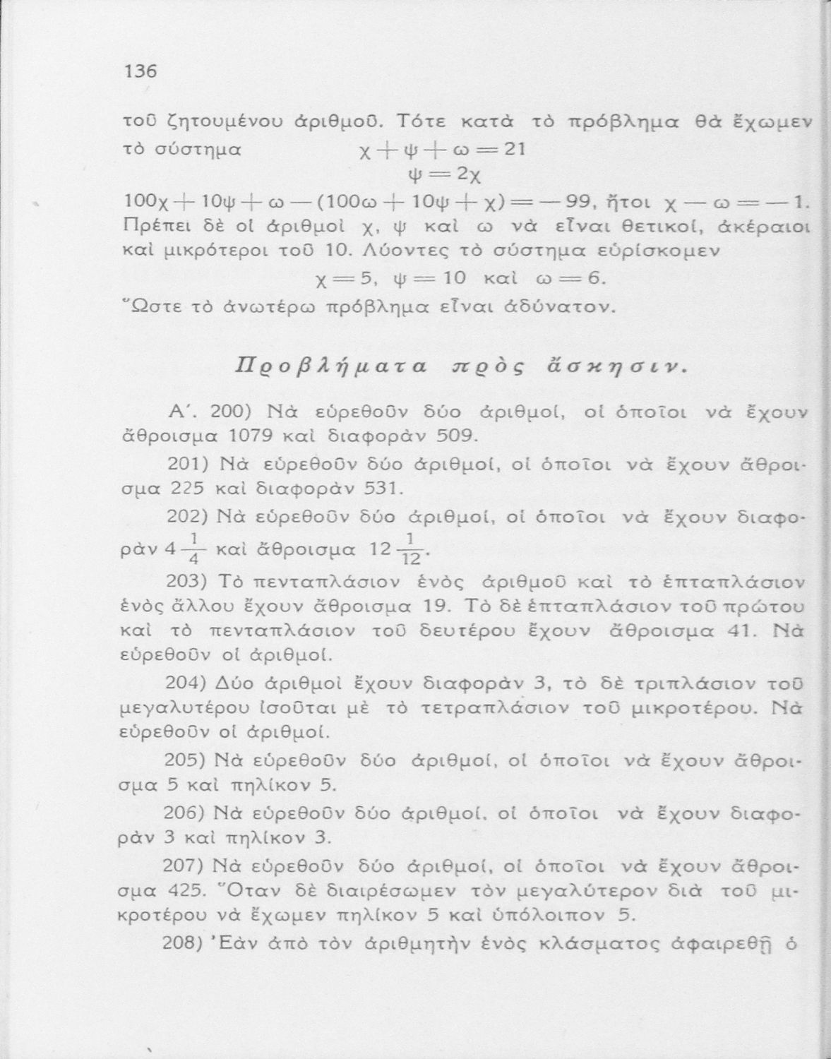 Βαθμίδα εκπαίδευσης: Δευτεροβάθμια Τάξη: Δ' Γυμνασίου / Ε΄ Εξαταξίου Γυμνασίου Μάθημα: Μαθηματικά Γλώσσα: Απλή καθαρεύουσα Παρουσίαση περιεχομένου: Σχολικό εγχειρίδιο Άλγεβρας για τις Δ΄ και Ε΄ Εξαταξίου Γυμνασίου χωρισμένο σε θεωρία και ασκήσεις που εστιάζει στις αλγεβρικές πράξεις και παραστάσεις, στις εξισώσεις και στις ρίζες. |