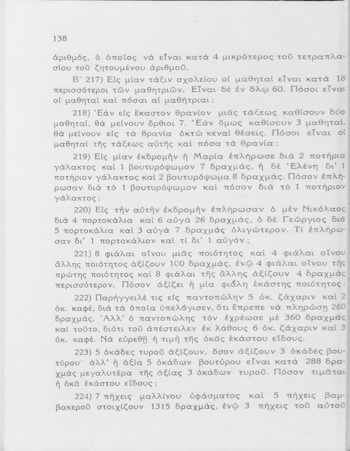 Κωδικός αναγνώρισης: 01-17189 Τίτλος: Άλγεβρα προς χρήσιν των μαθητών της Δ΄ και Ε΄ τάξεως των Εξαταξίων Γυμνασίων νέου τύπου Συγγραφέας: Χρίστος Α. Μπαρμπαστάθης Μέγεθος και υπόστρωμα: Σχολικό εγχειρίδιο, 20εκ., σκληρό εξώφυλλο, 279 σελίδες. |