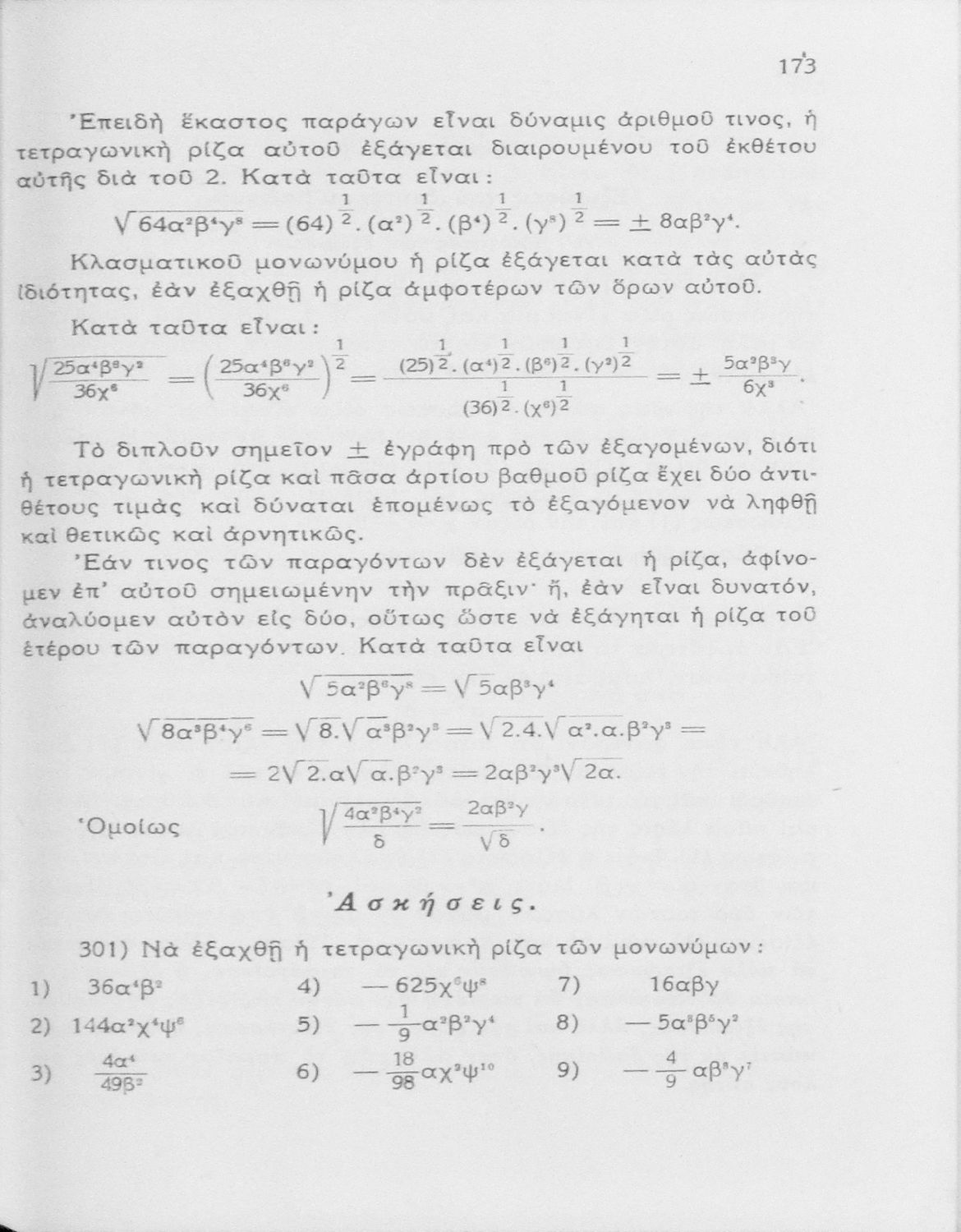 Άλγεβρα προς χρήσιν των μαθητών της Δ΄ και Ε΄ τάξεως των Εξαταξίων Γυμνασίων νέου τύπου
