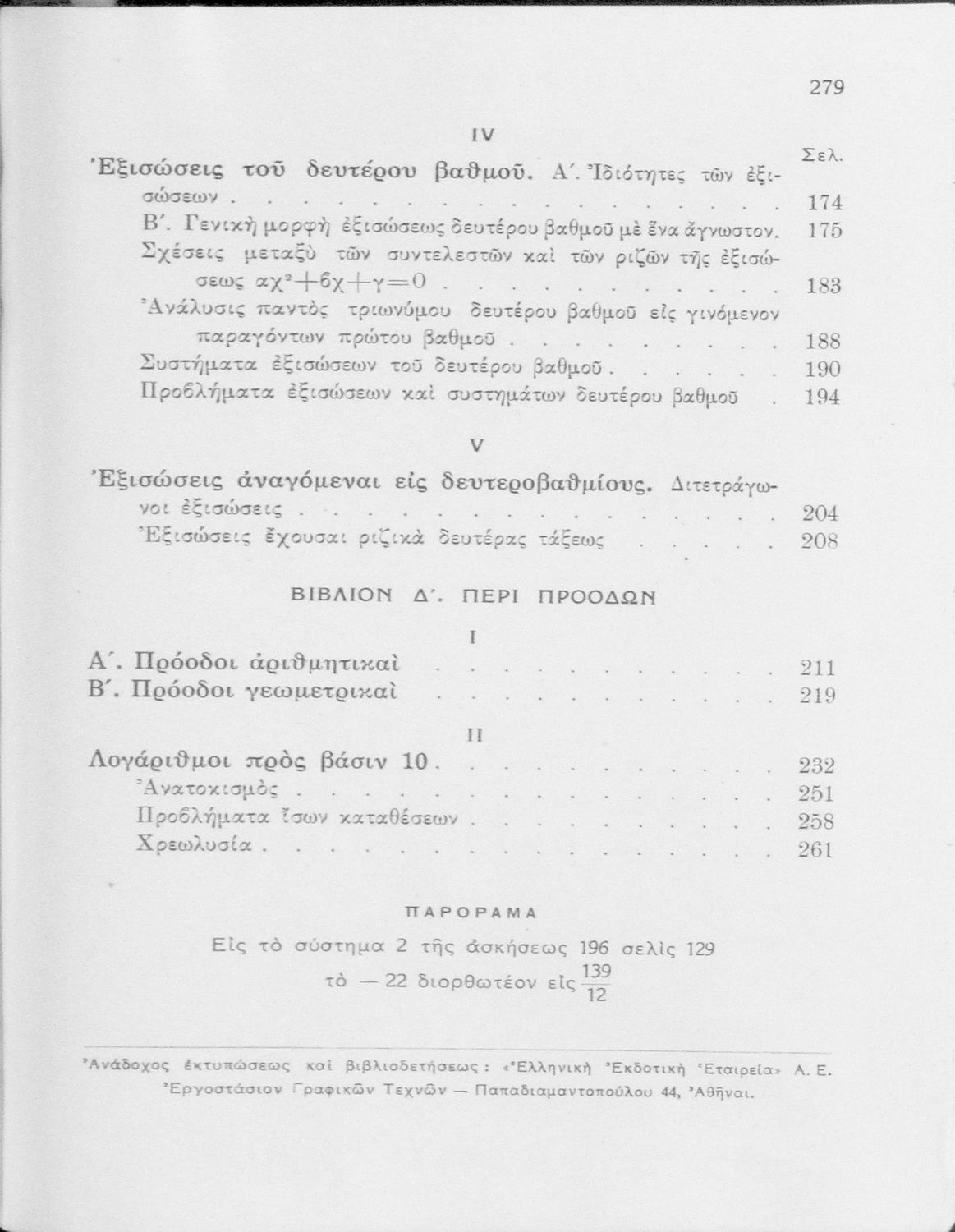 Τίτλος: Άλγεβρα προς χρήσιν των μαθητών της Δ΄ και Ε΄ τάξεως των Εξαταξίων Γυμνασίων νέου τύπου