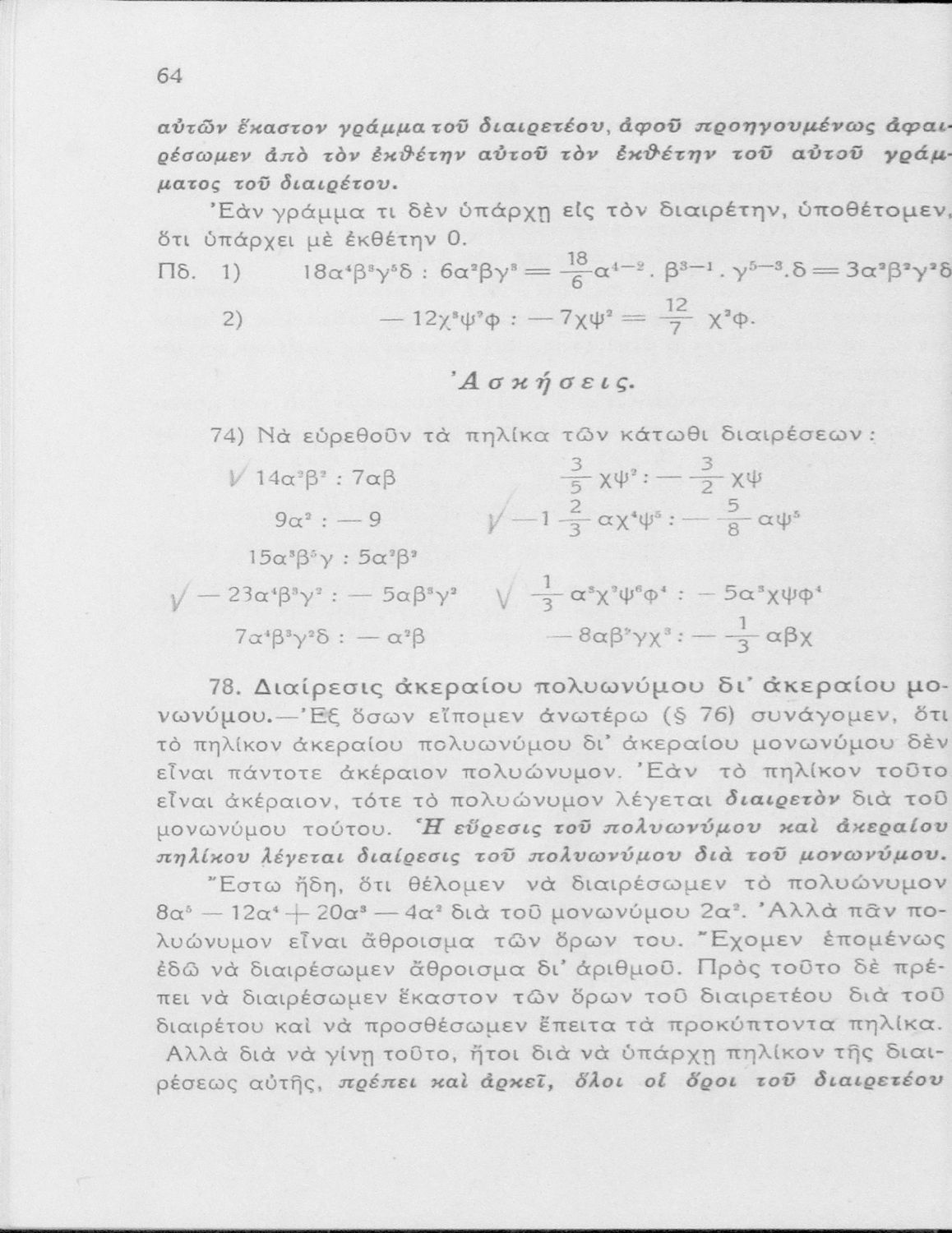 Τίτλος: Άλγεβρα προς χρήσιν των μαθητών της Δ΄ και Ε΄ τάξεως των Εξαταξίων Γυμνασίων νέου τύπου