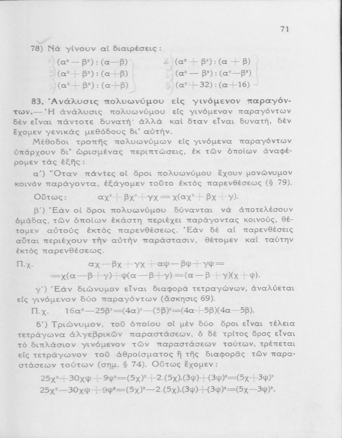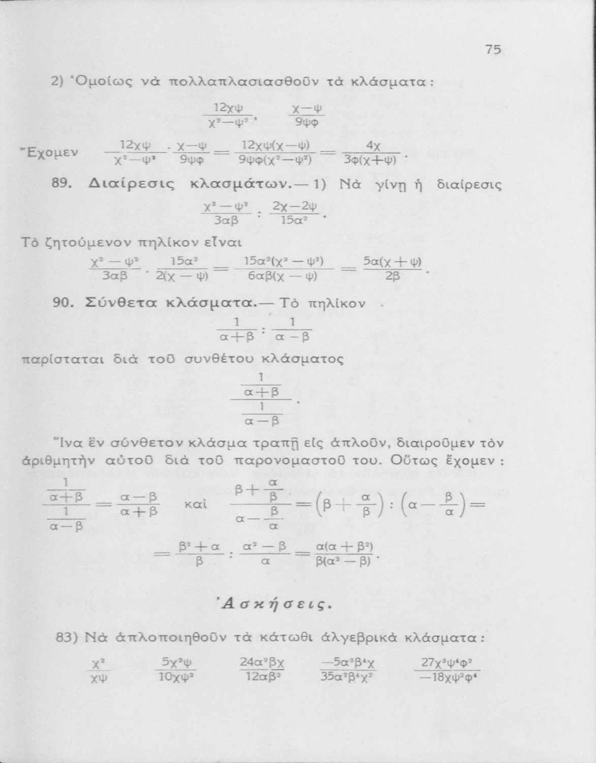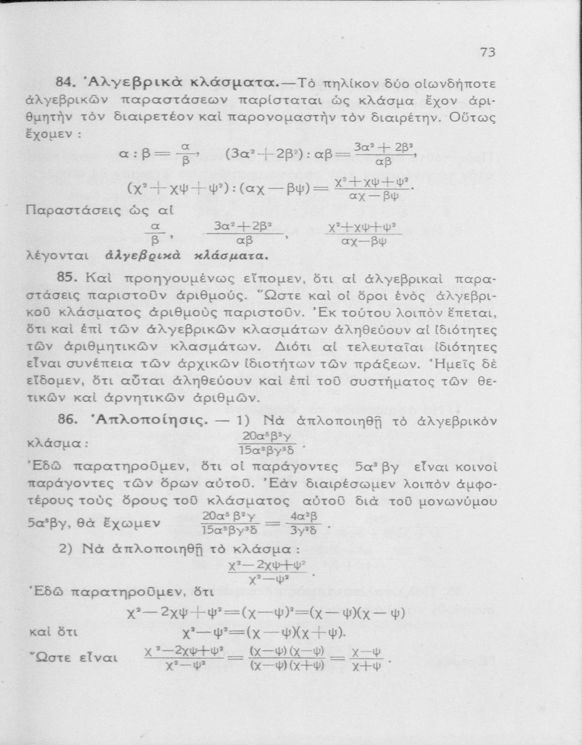 Άλγεβρα προς χρήσιν των μαθητών της Δ΄ και Ε΄ τάξεως των Εξαταξίων Γυμνασίων νέου τύπου