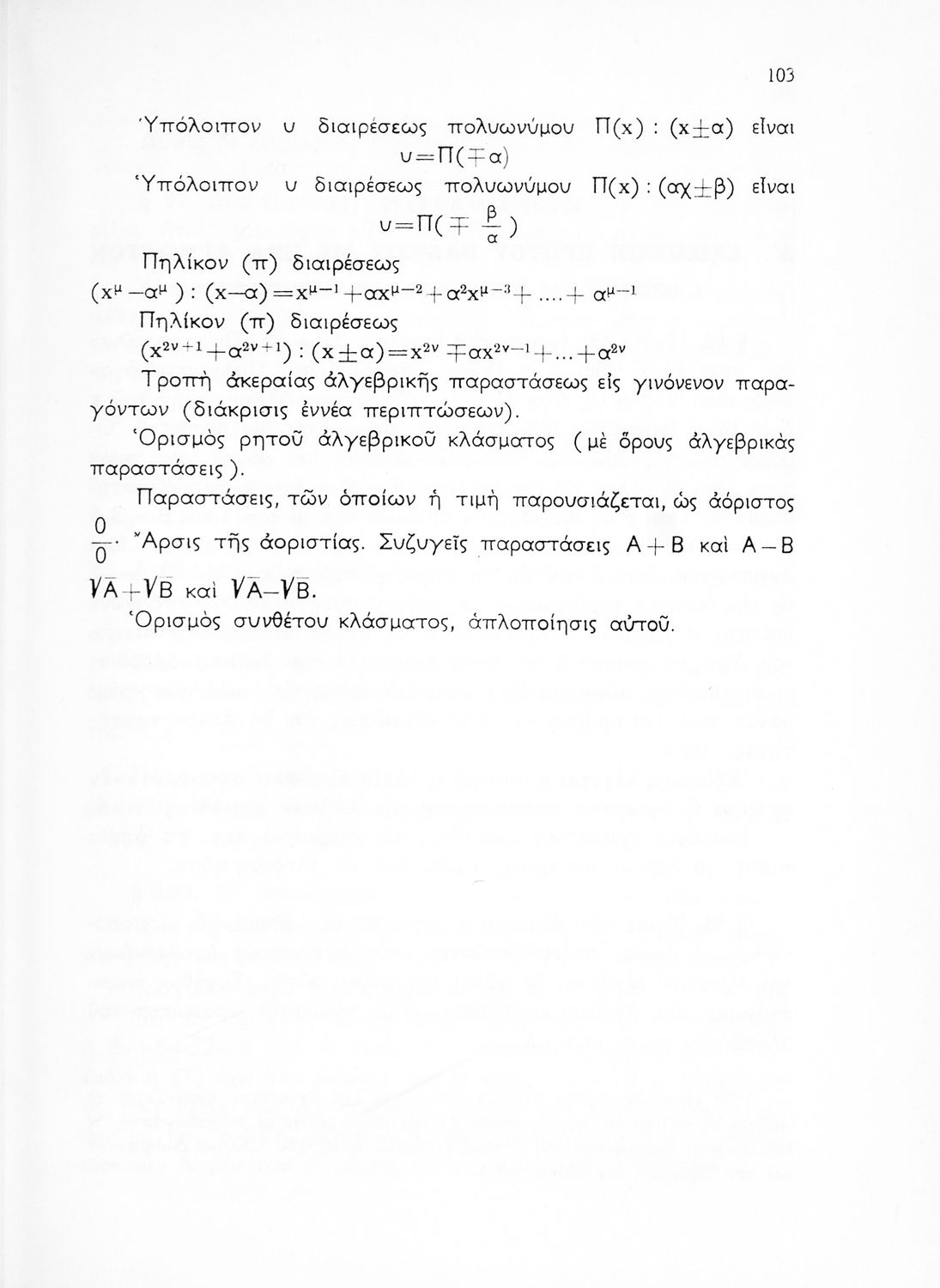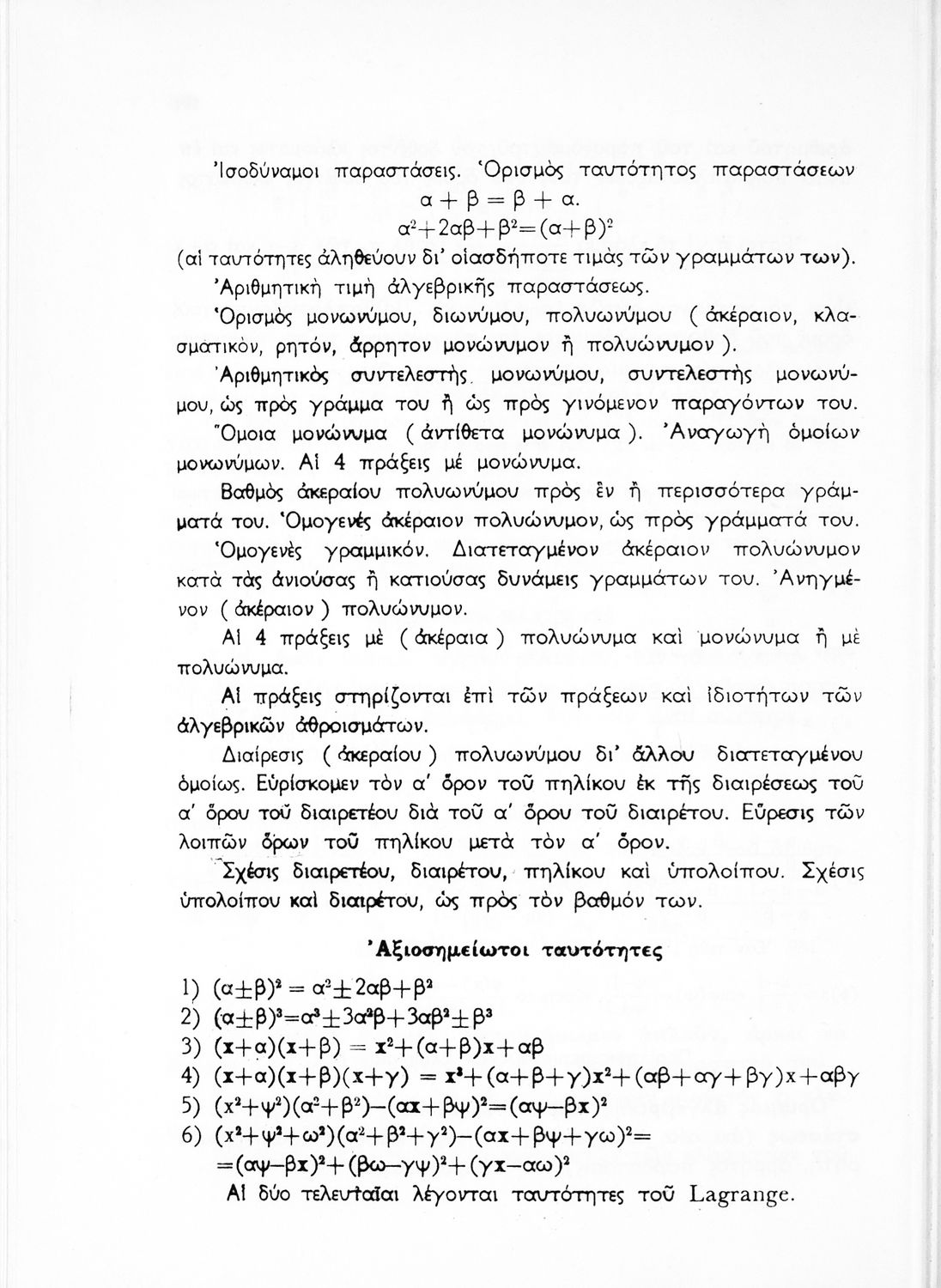 Άλγεβρα δια τας ανωτέρας τάξεις των Γυμνασίων