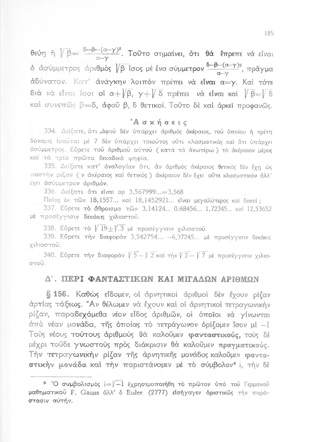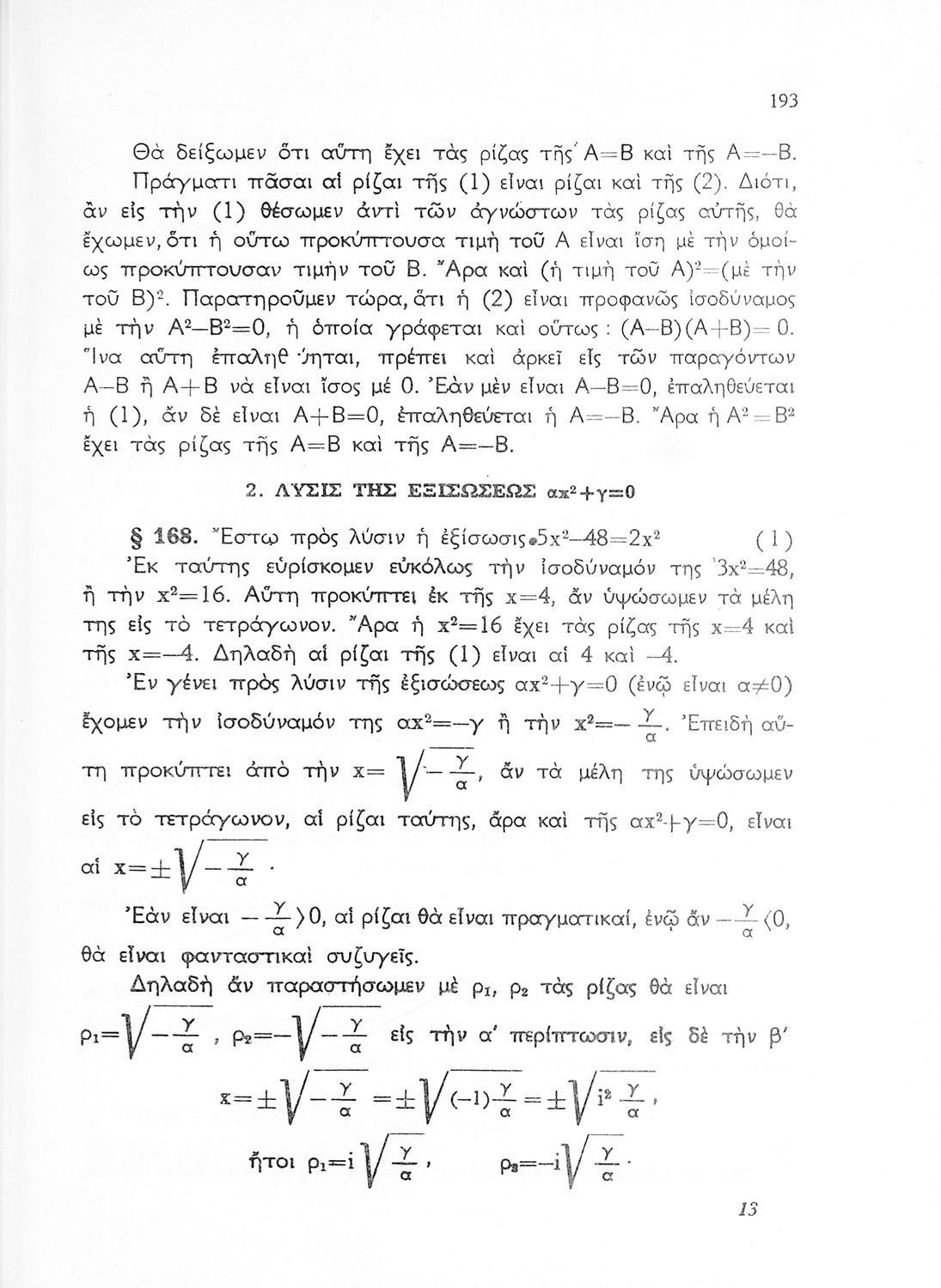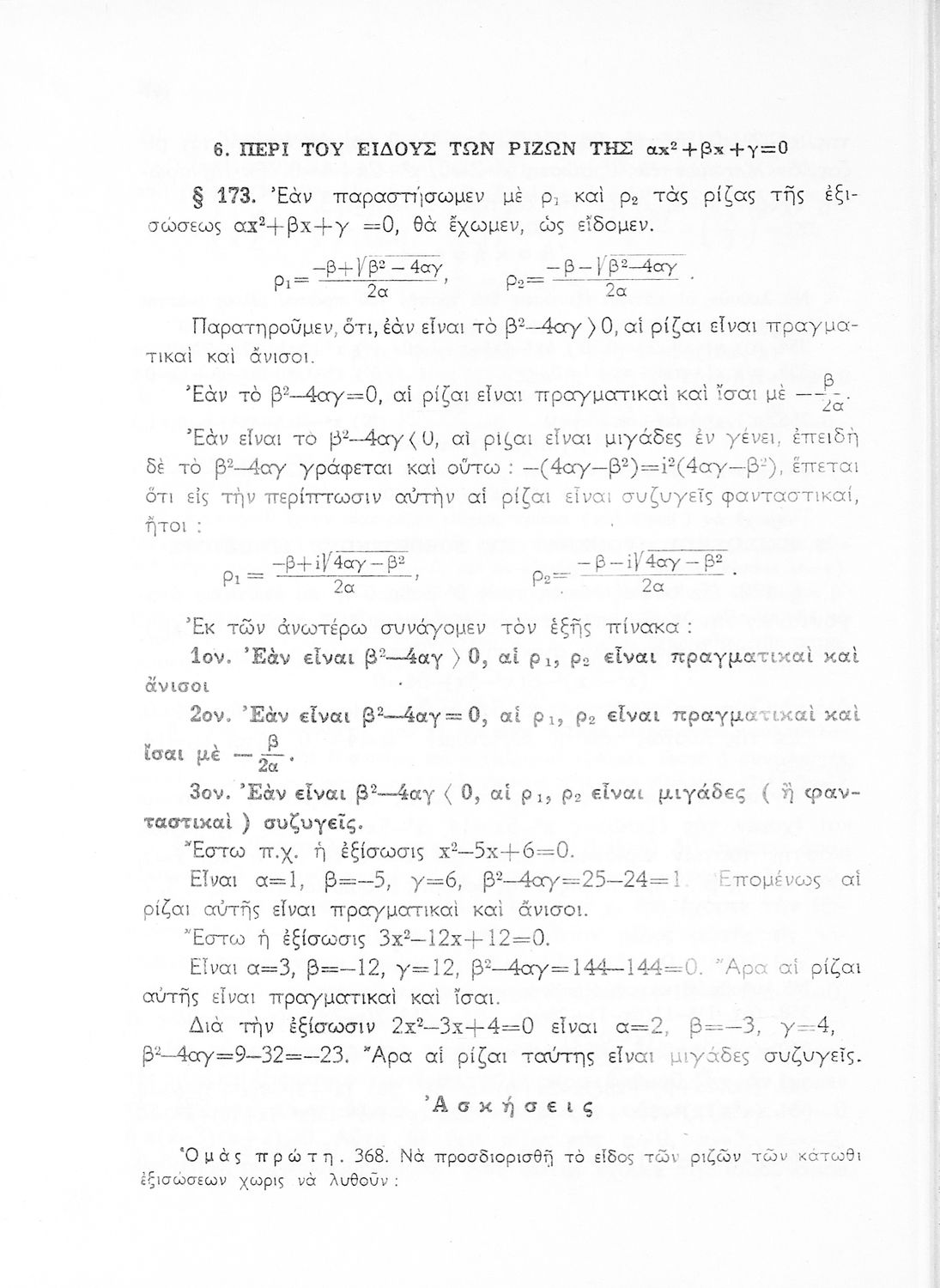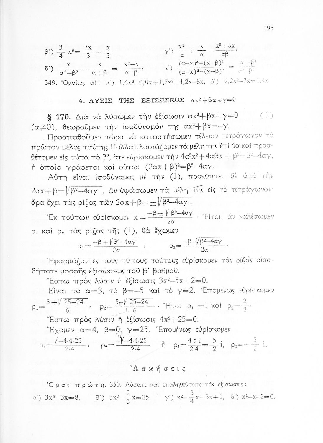 Άλγεβρα δια τας ανωτέρας τάξεις των Γυμνασίων