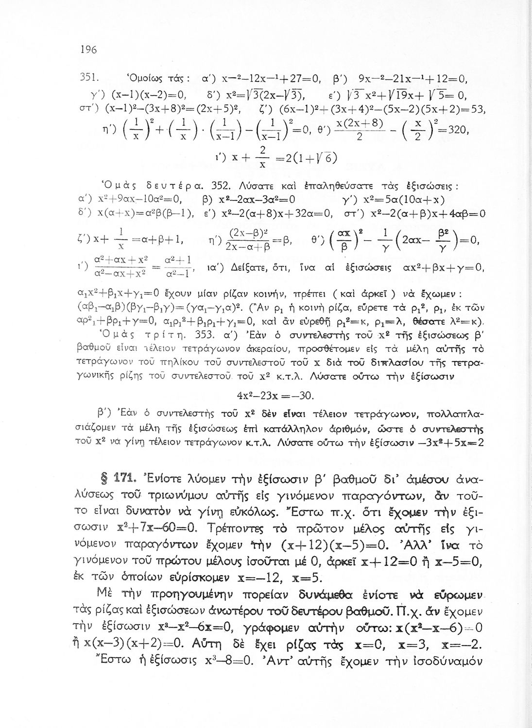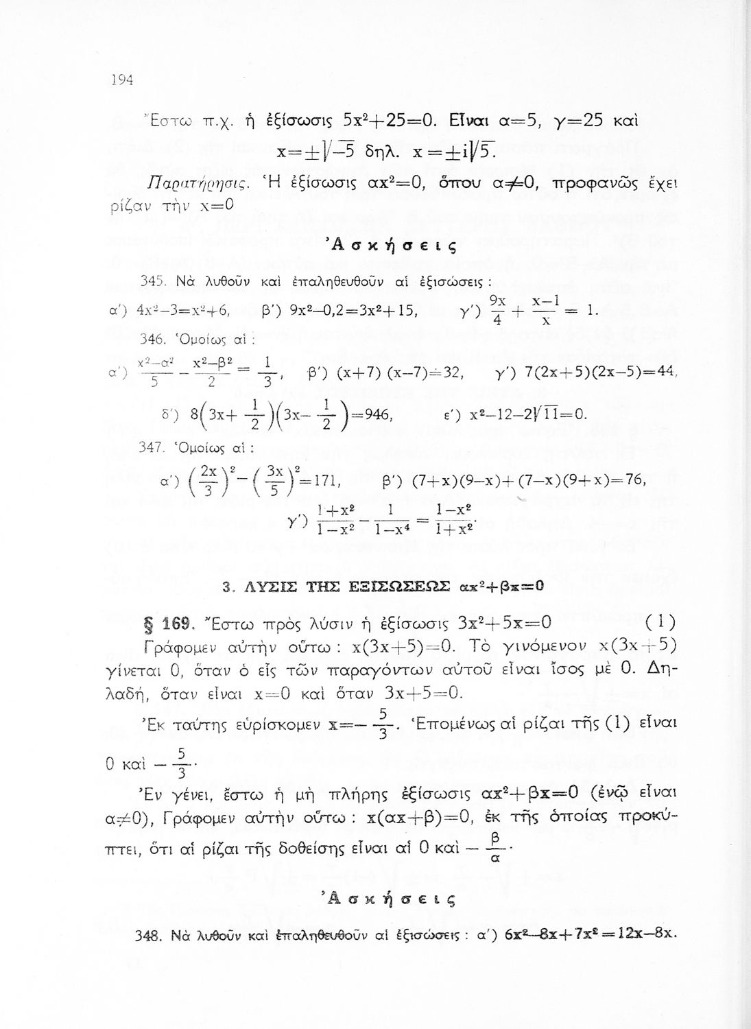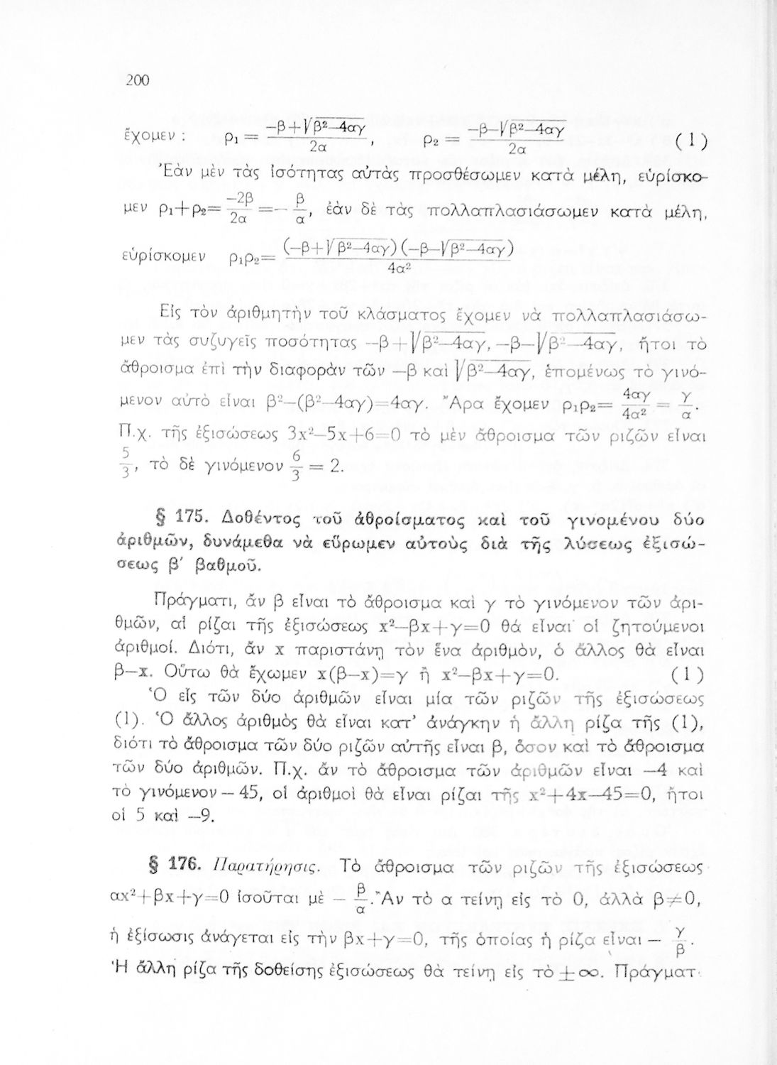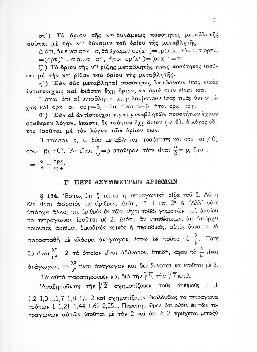 Άλγεβρα δια τας ανωτέρας τάξεις των Γυμνασίων