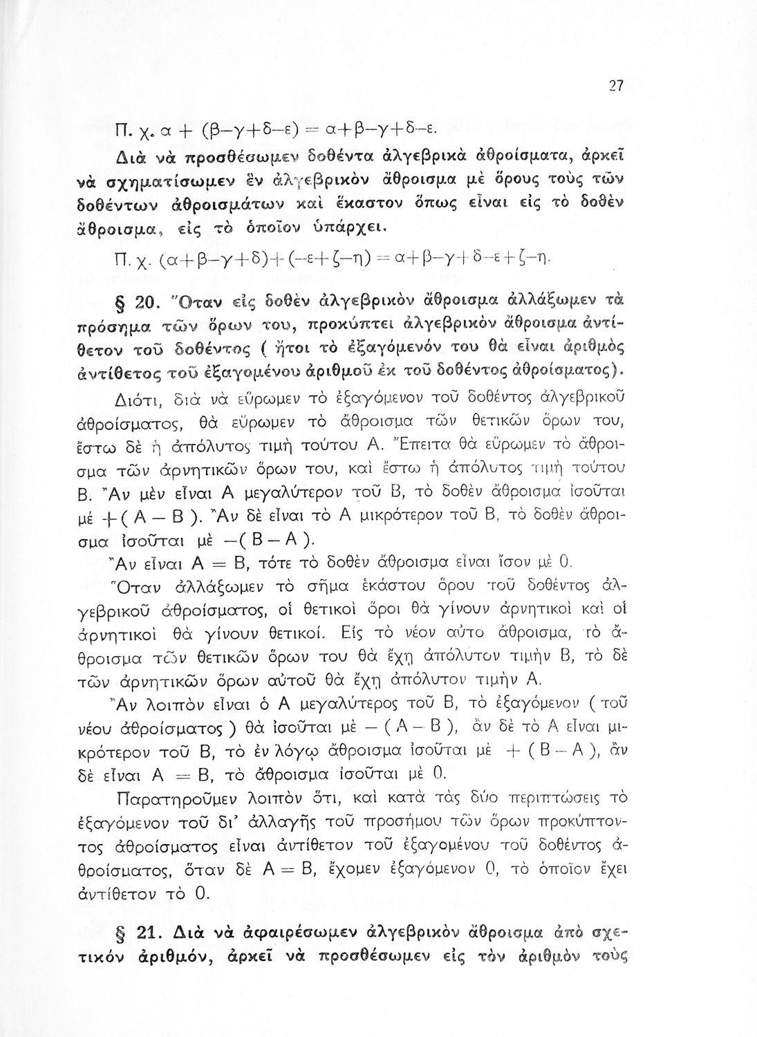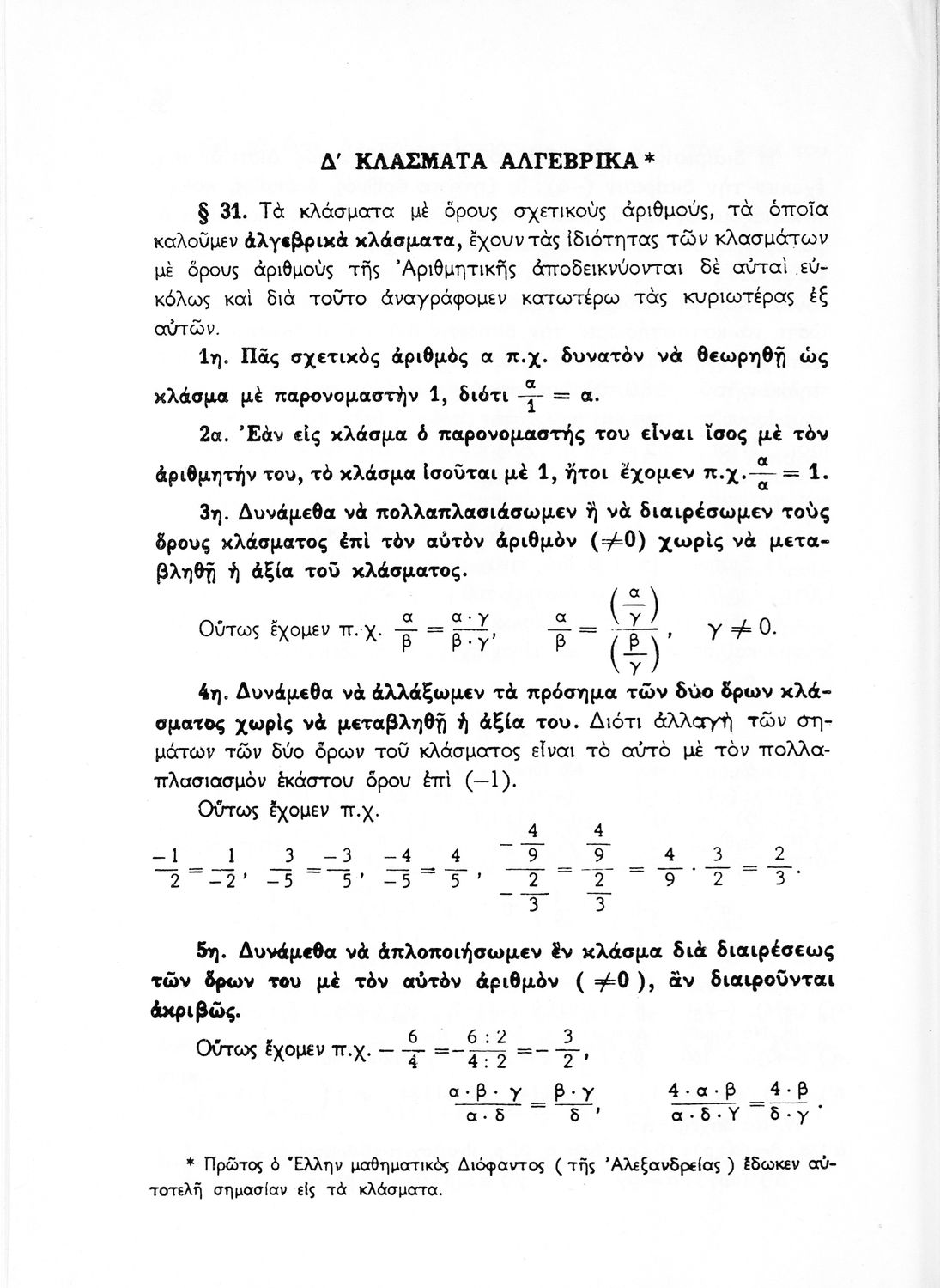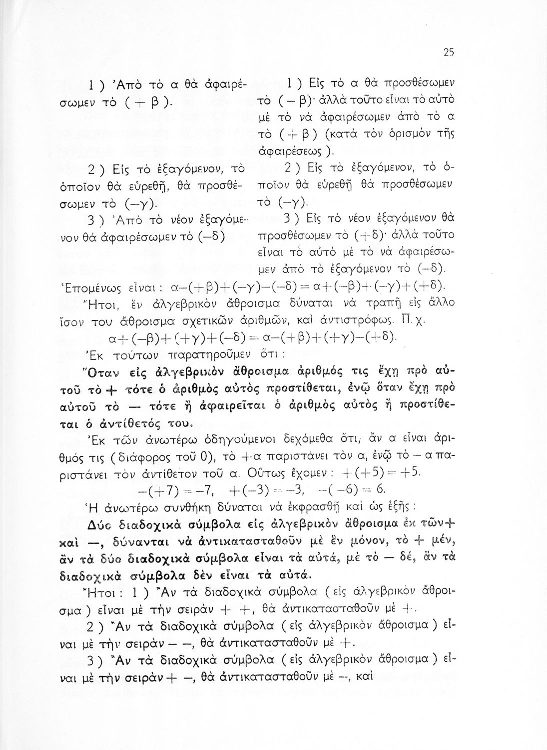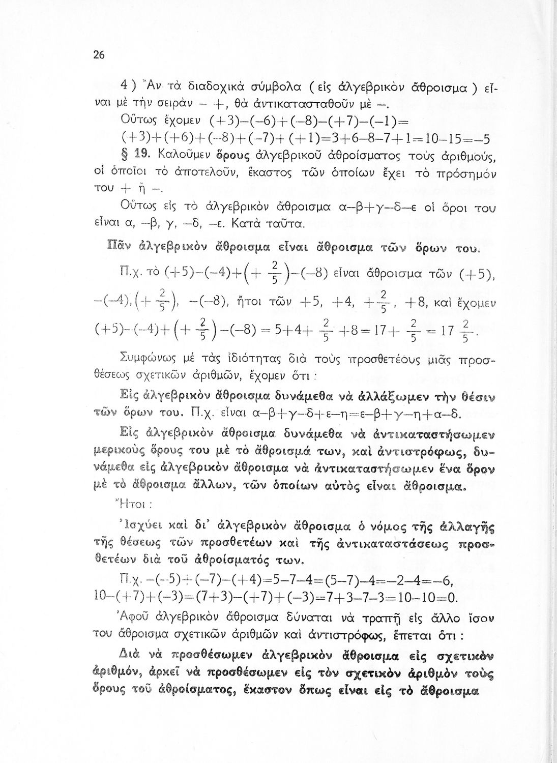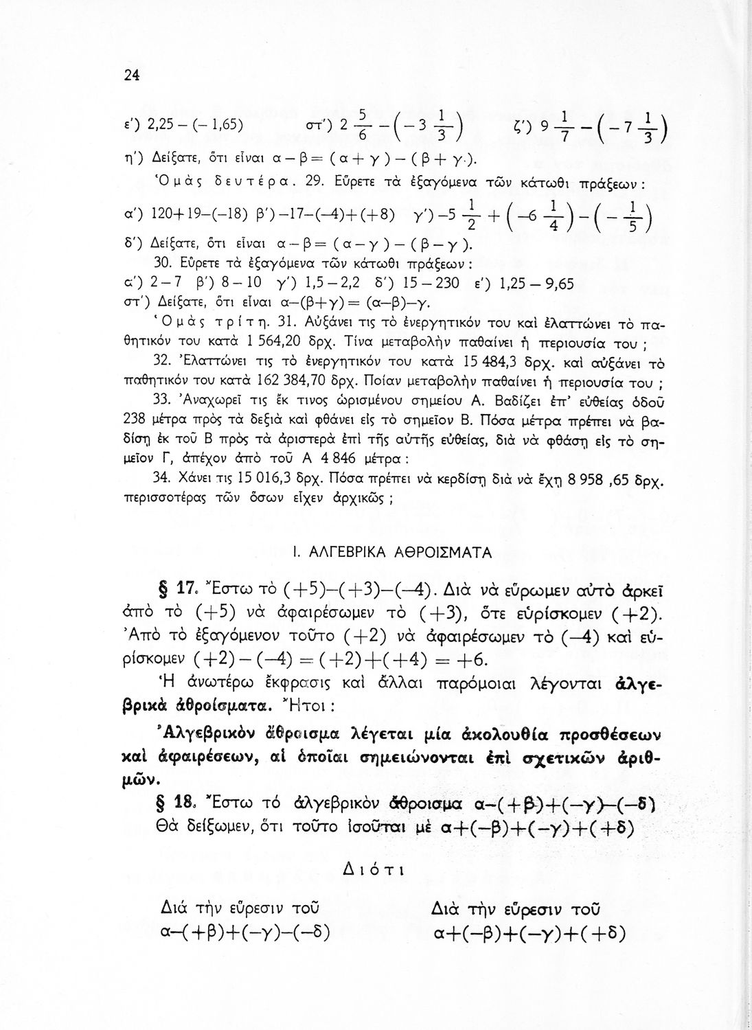 Βαθμίδα εκπαίδευσης: Δευτεροβάθμια Τάξη: Γυμνάσιο Μάθημα: Μαθηματικά Γλώσσα: Απλή καθαρεύουσα Παρουσίαση περιεχομένου: Σχολικό εγχειρίδιο Μαθηματικών Γυμνασίου που παρουσιάζει τις βασικές έννοιες της Άλγεβρας, εστιάζει τις ιδιότητες των αριθμών και περιέχει ασκήσεις εξισώσεων, λογαρίθμων και παραγώγων. |