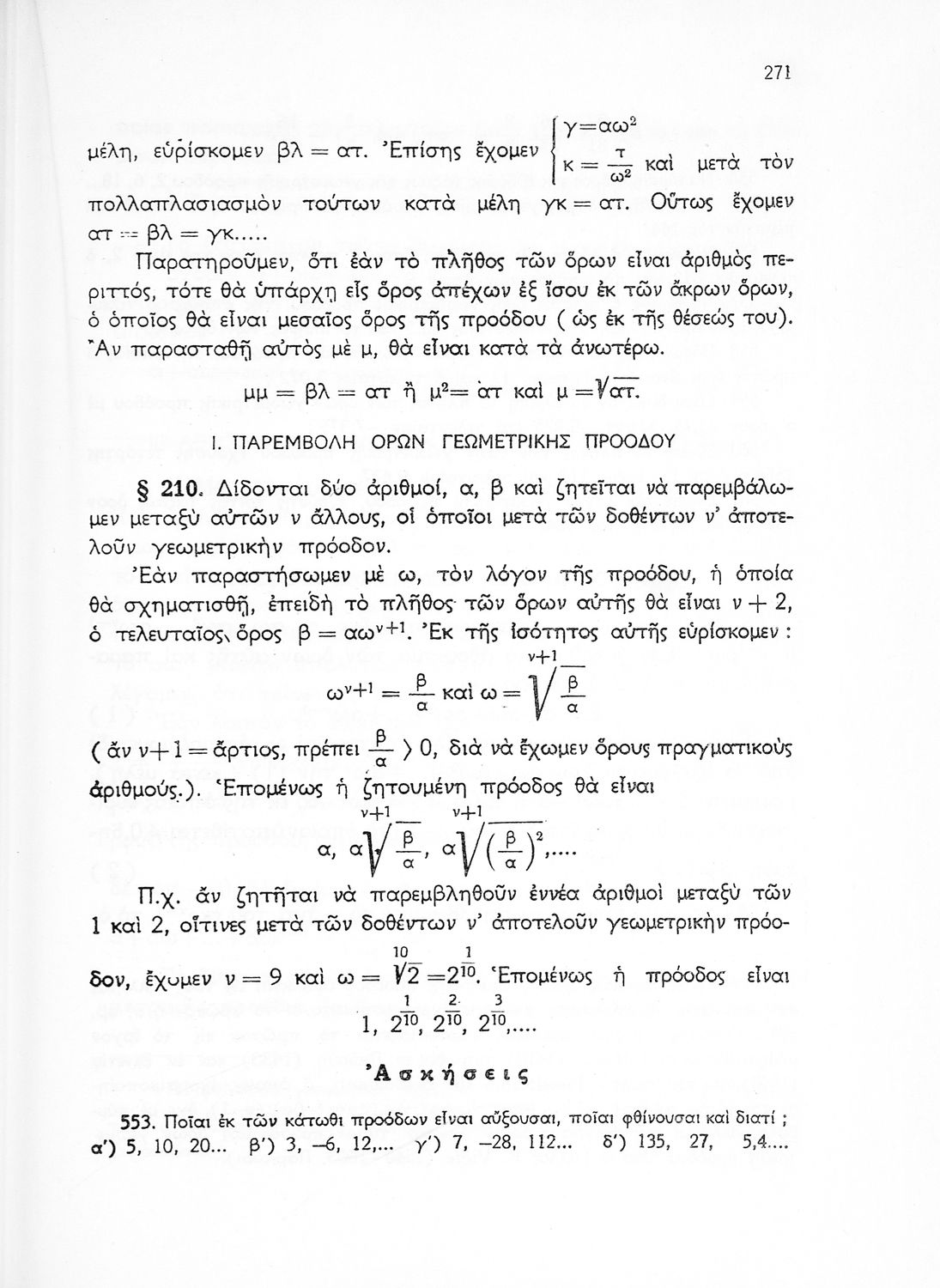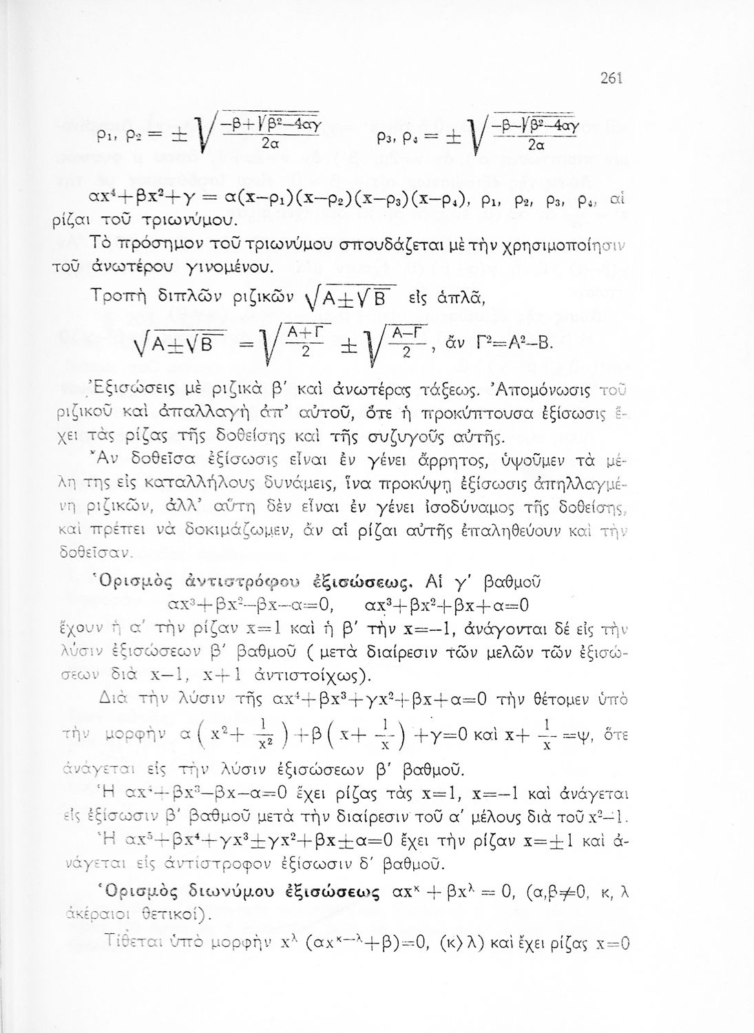 Άλγεβρα δια τας ανωτέρας τάξεις των Γυμνασίων