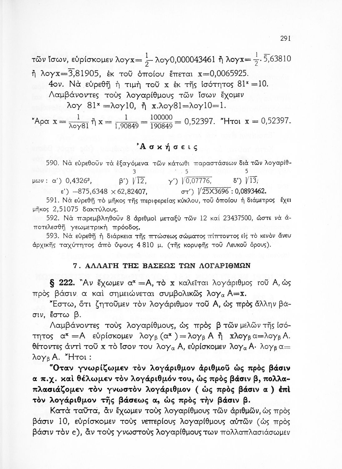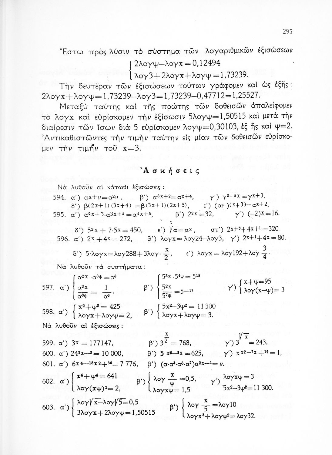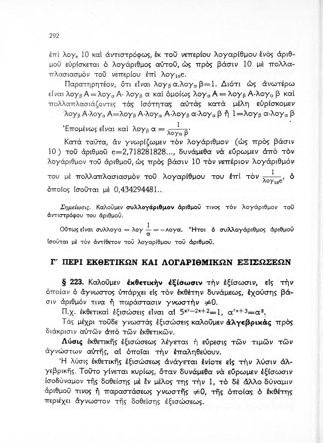 Άλγεβρα δια τας ανωτέρας τάξεις των Γυμνασίων