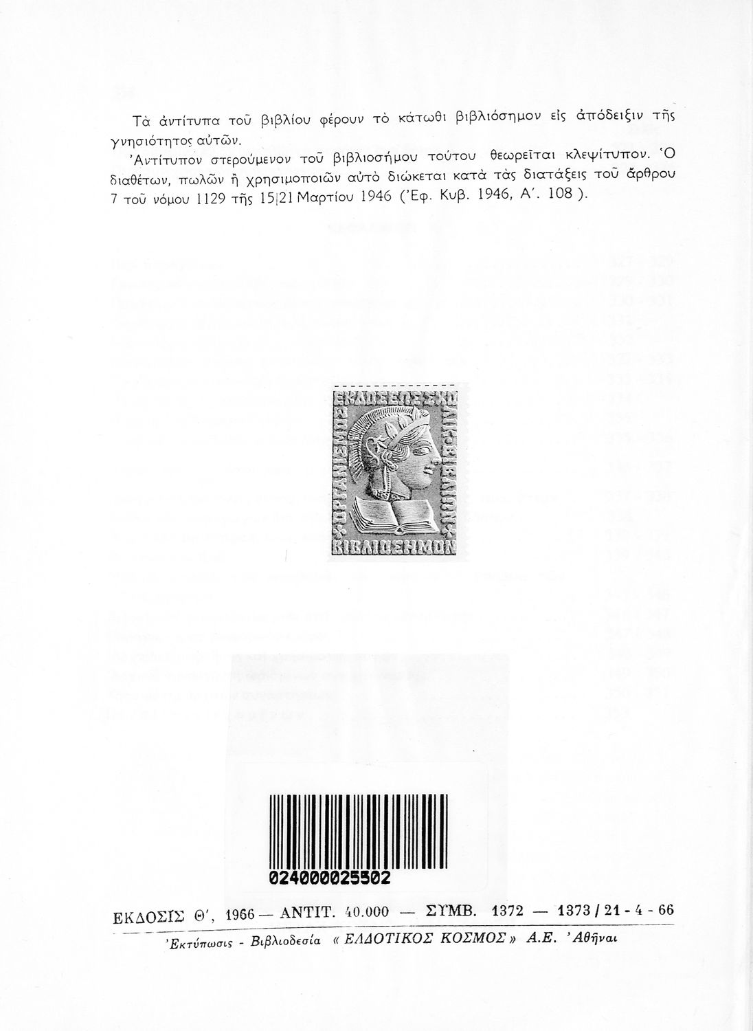 Εκδότης: Οργανισμός Εκδόσεως Διδακτικών Βιβλίων Έτος έκδοσης: 1966 Τόπος έκδοσης: Αθήνα Έκδοση: 9η Υπουργική απόφαση / Σύμβαση: 1372-1373/21-4-1966 Έτος έγκρισης: 1966 |