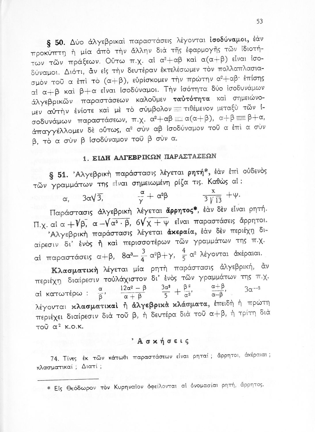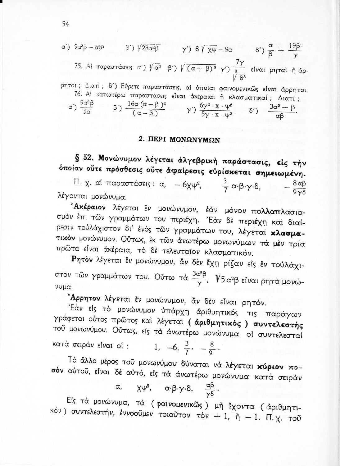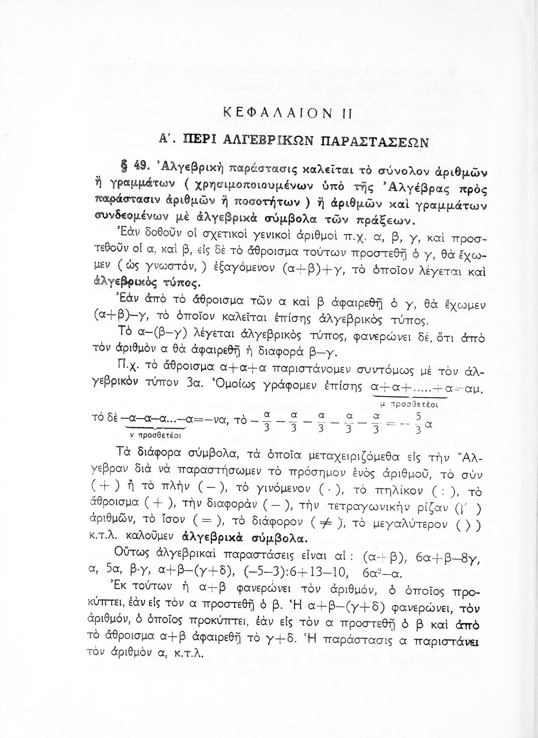 Άλγεβρα δια τας ανωτέρας τάξεις των Γυμνασίων