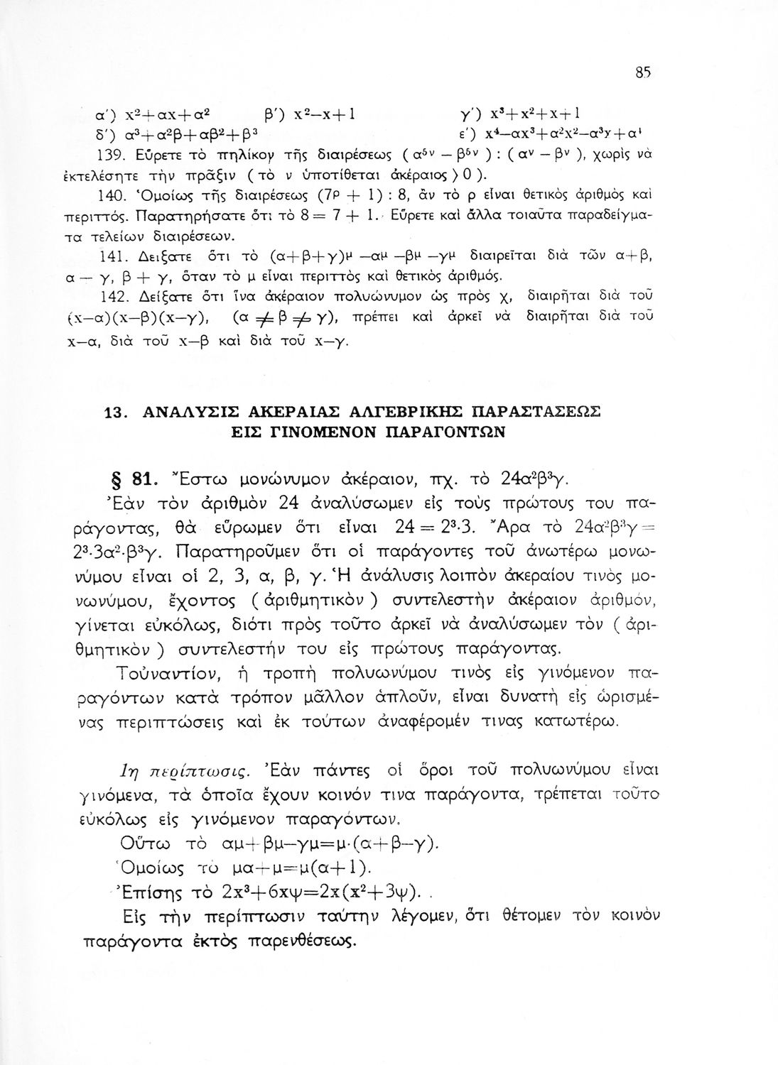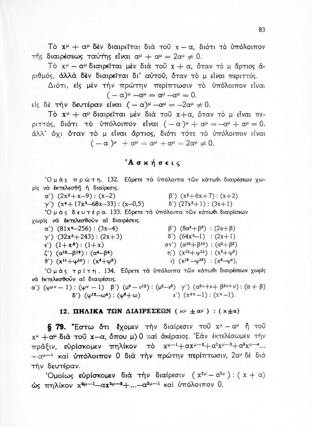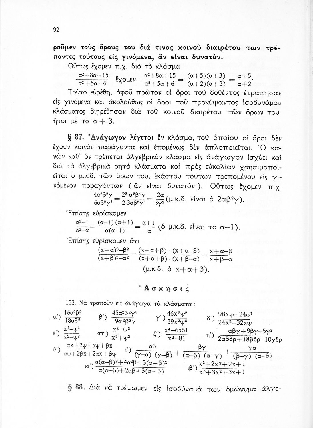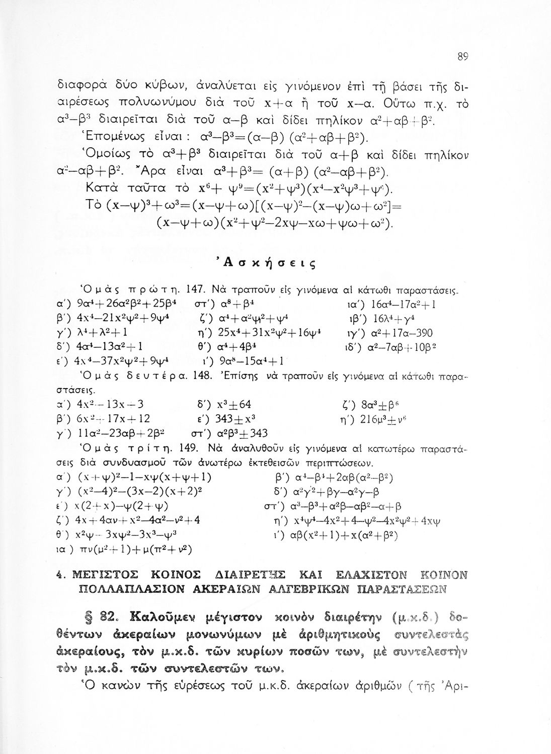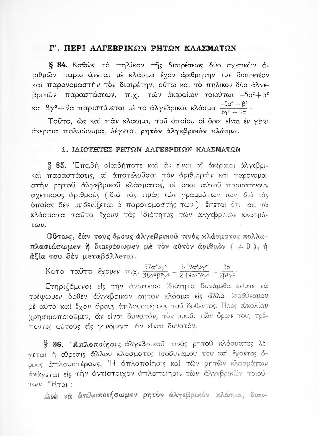 Άλγεβρα δια τας ανωτέρας τάξεις των Γυμνασίων